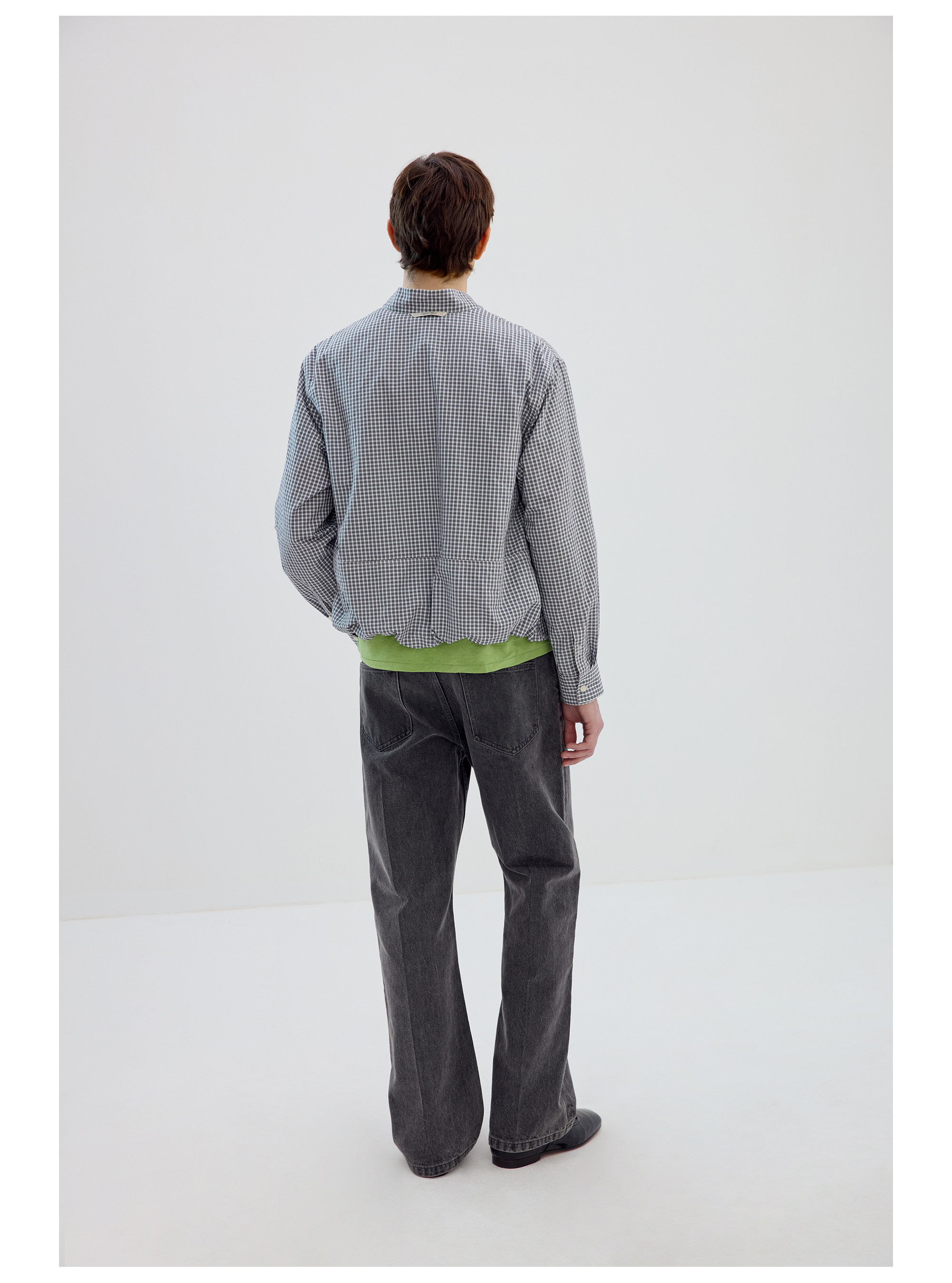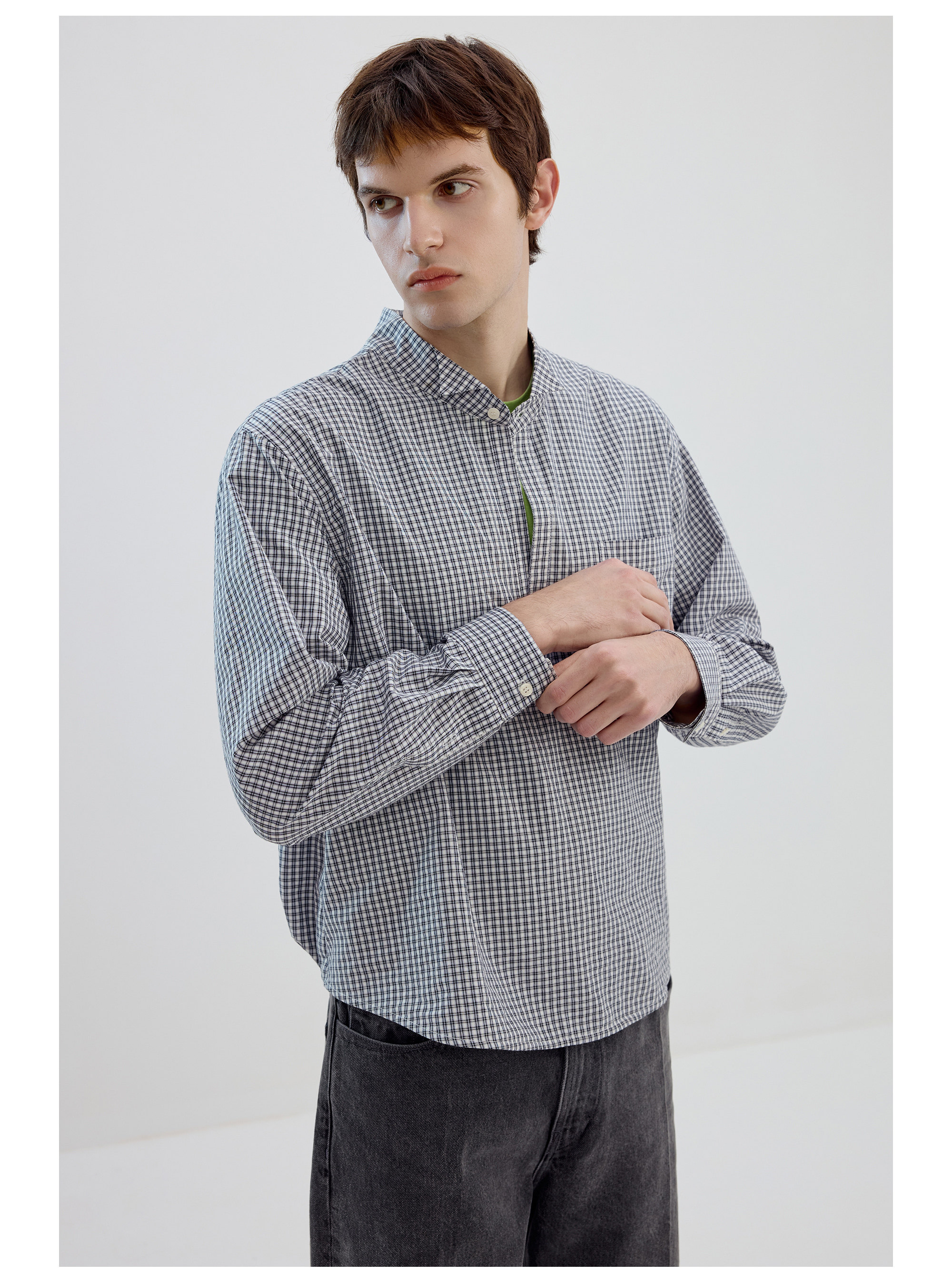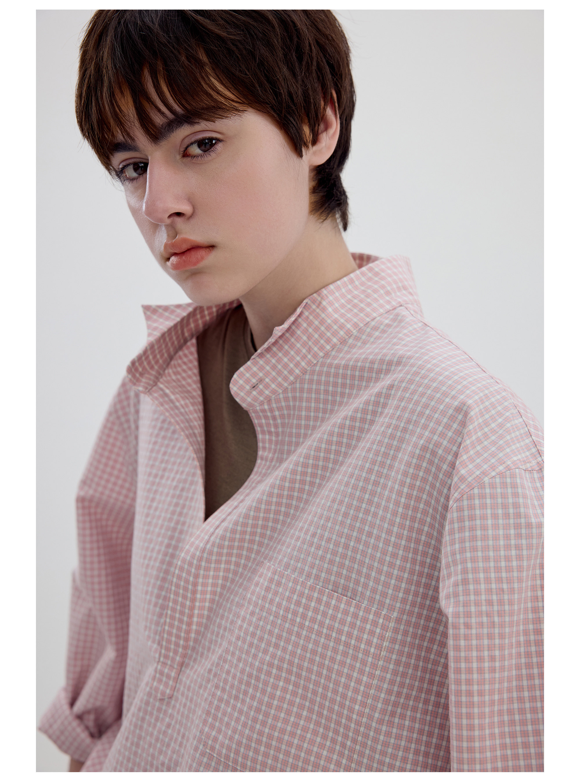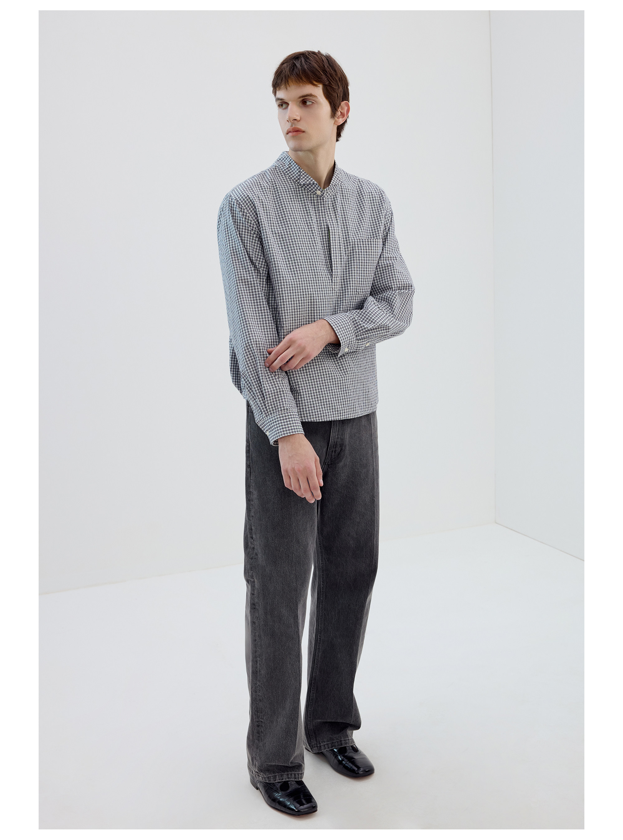 Simple Project/Y2634/气球版型半开襟小翼领格纹衬衫