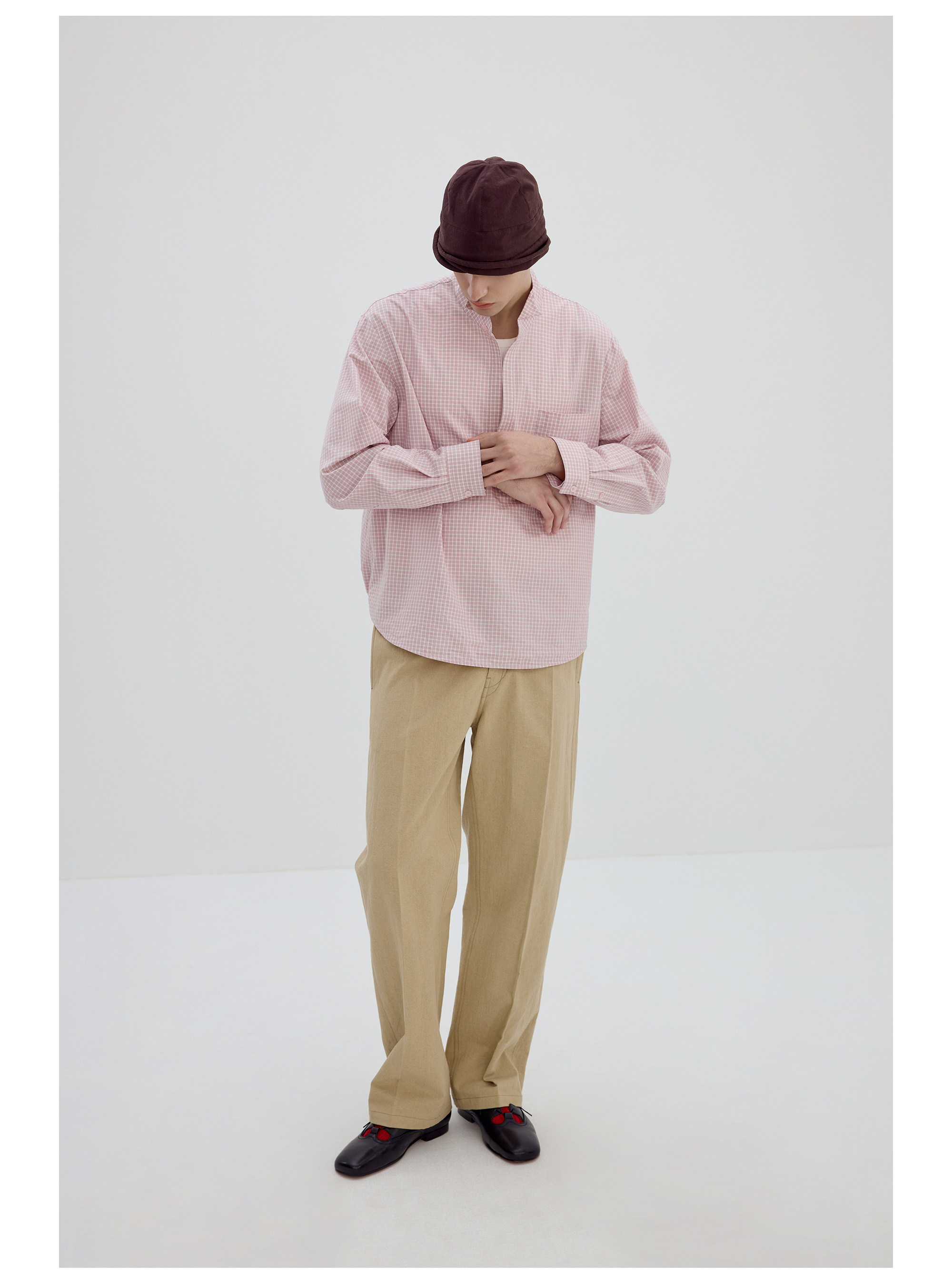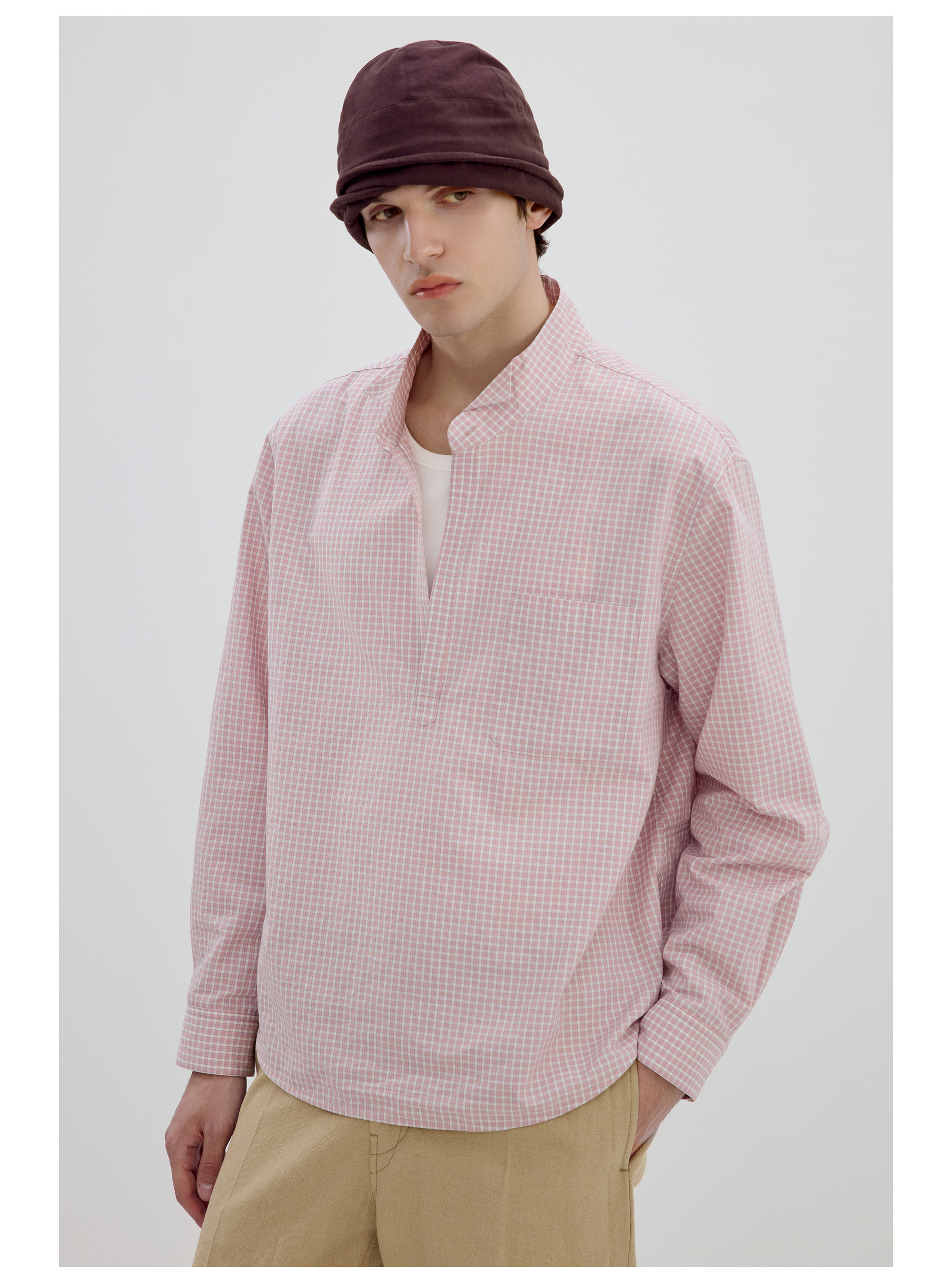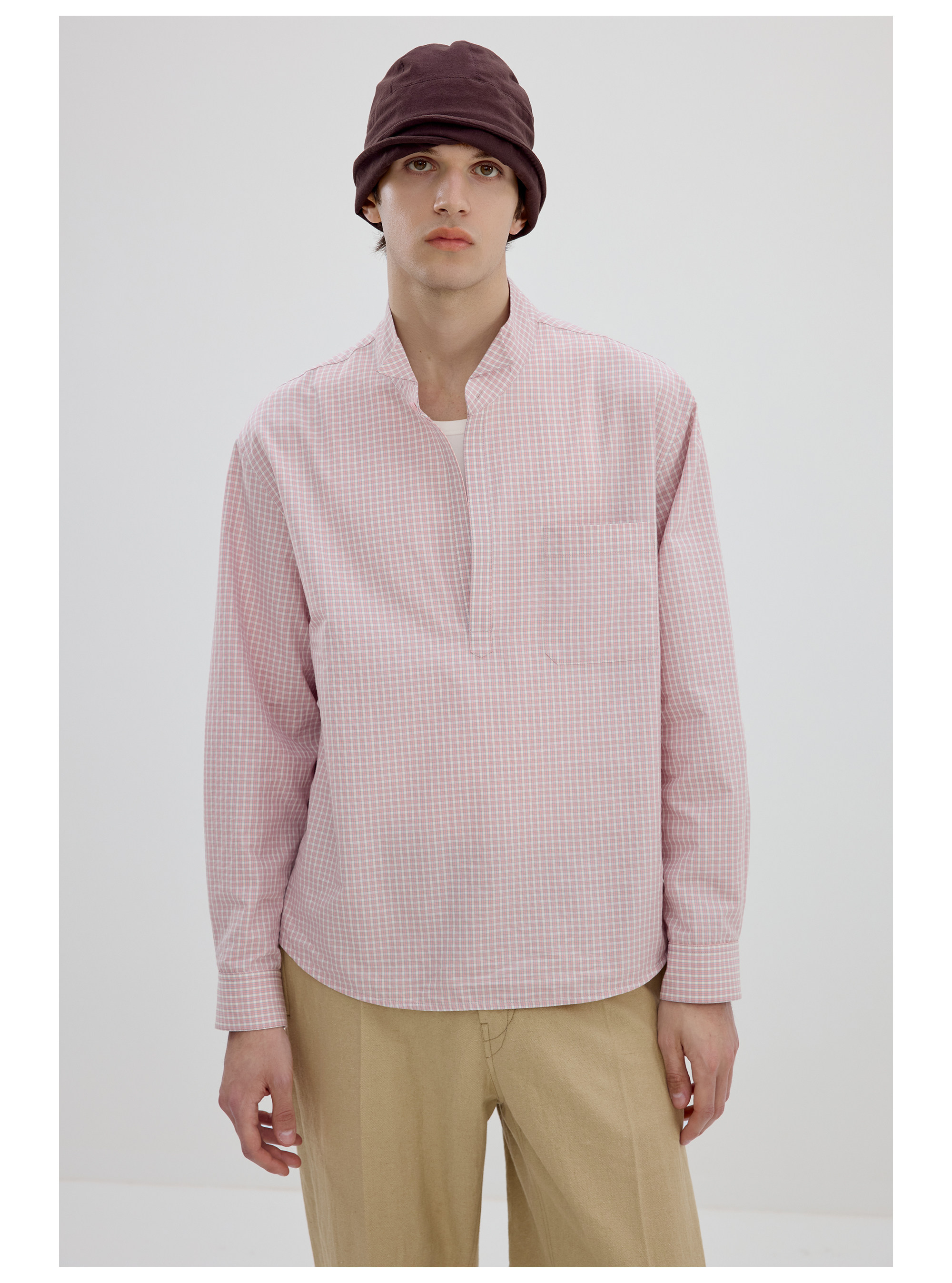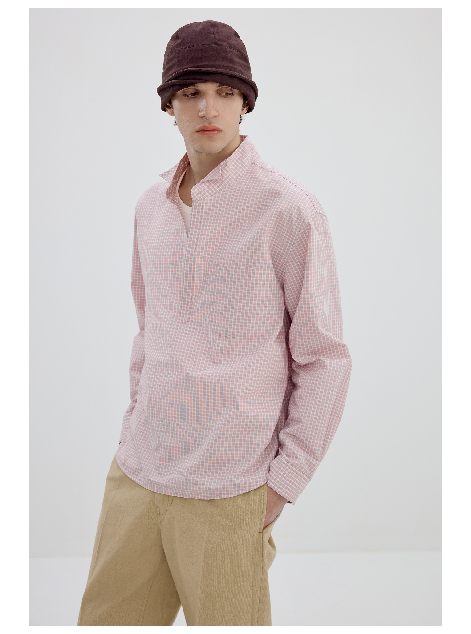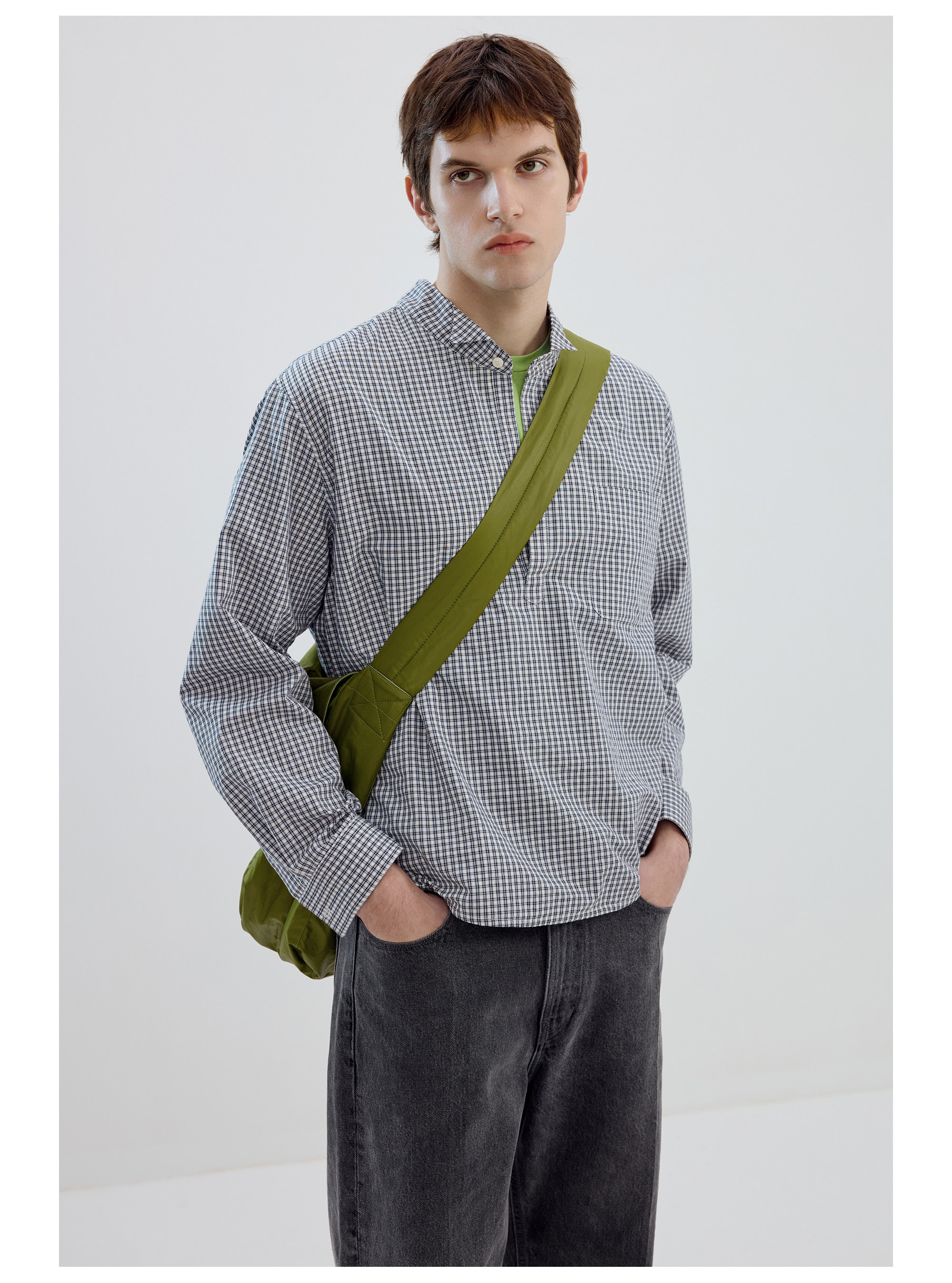Simple Project/Y2634/气球版型半开襟小翼领格纹衬衫