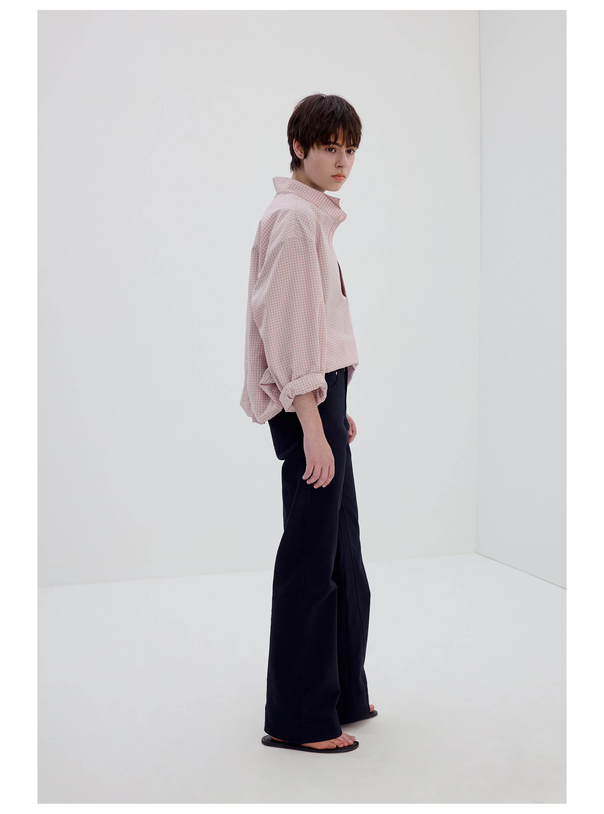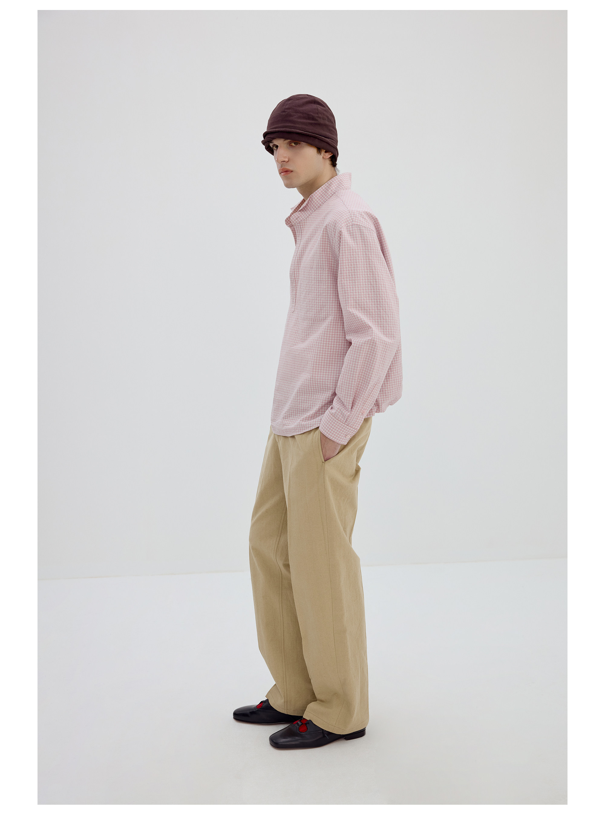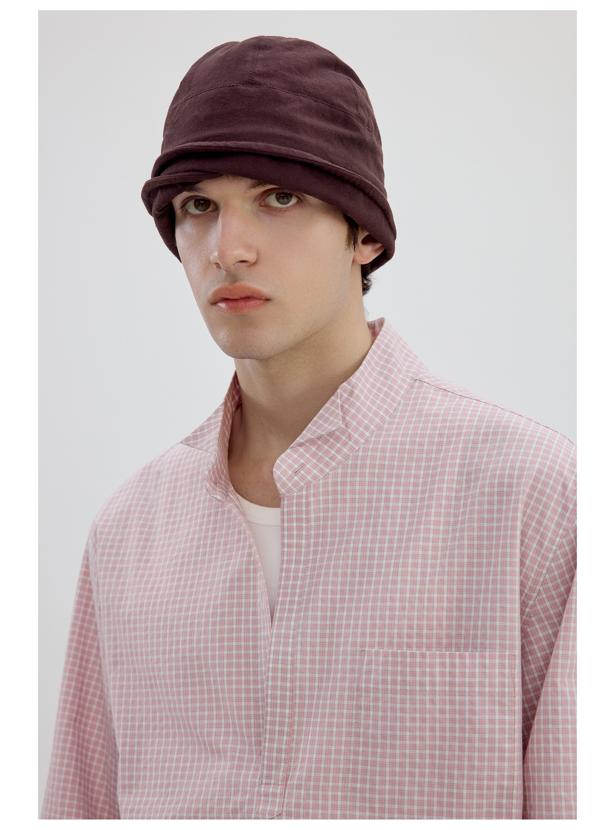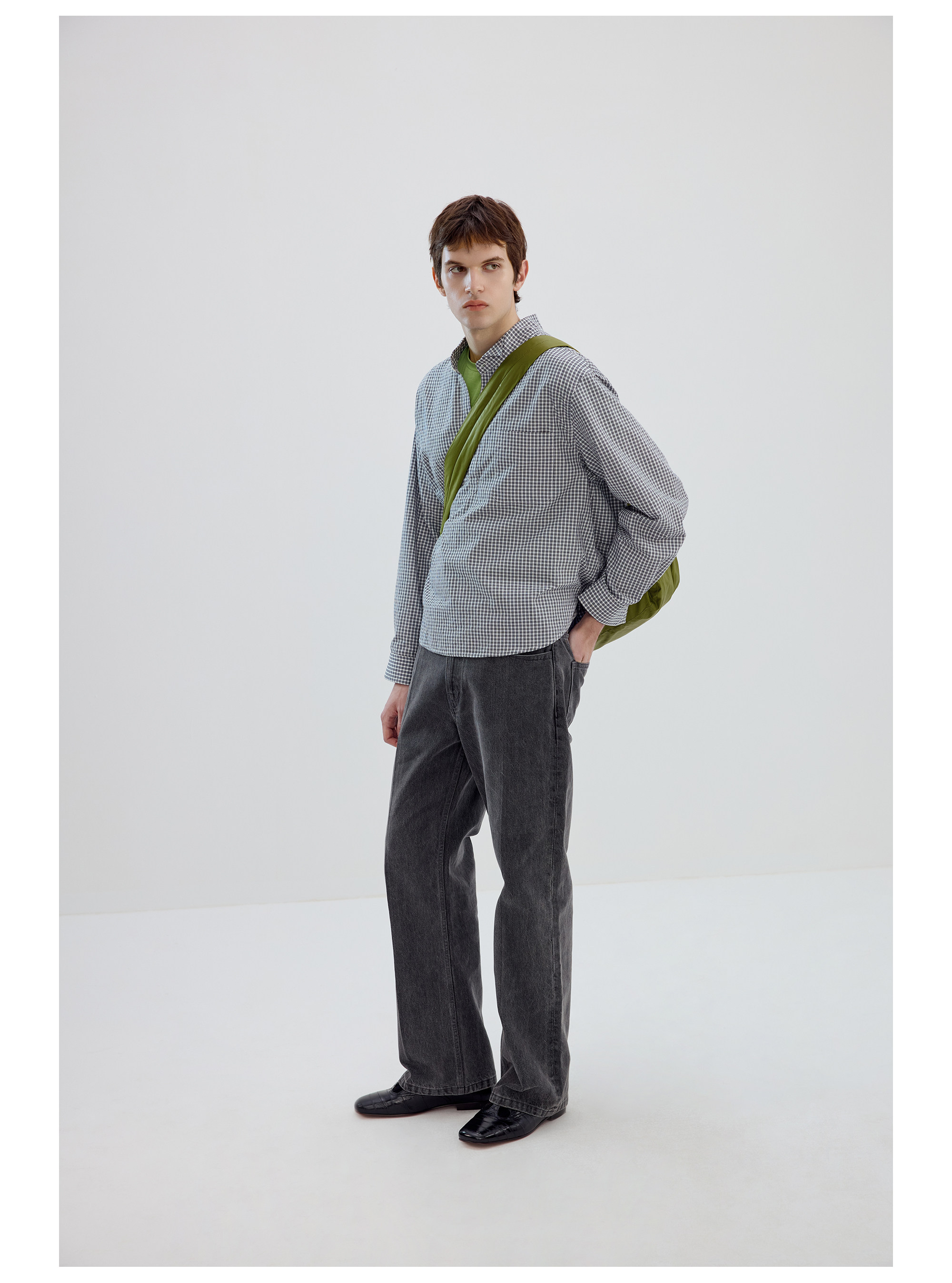 Simple Project/Y2634/气球版型半开襟小翼领格纹衬衫