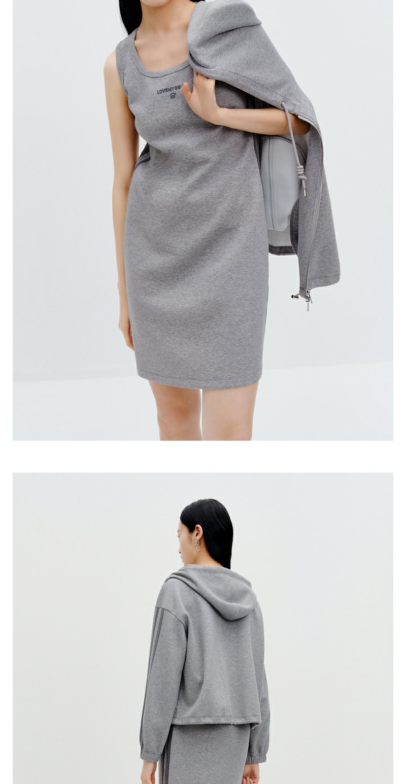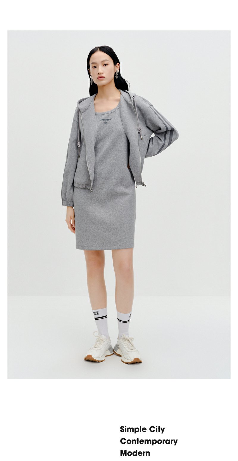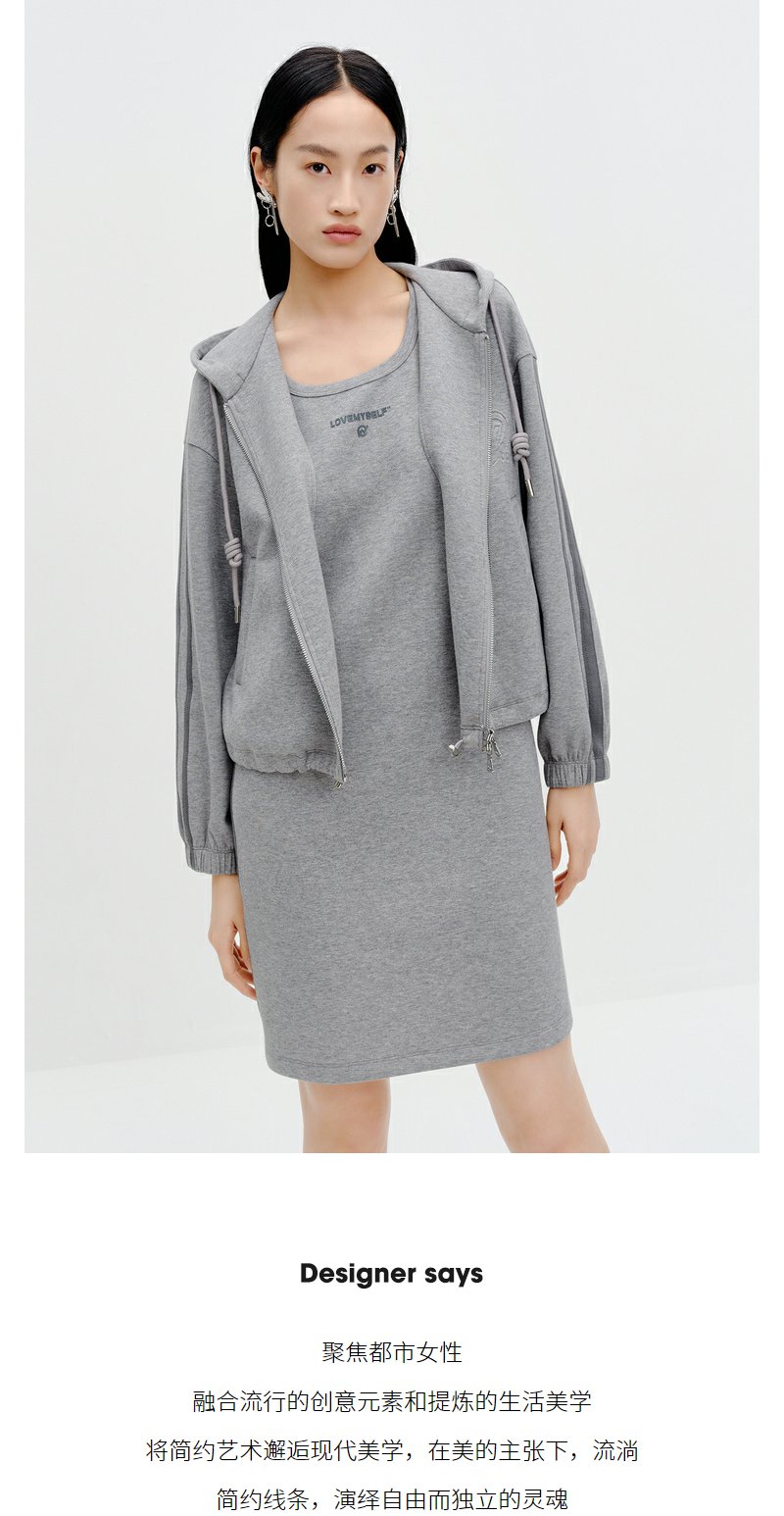 NEELLY纳俪商场同款时尚套装女休闲连帽外套新款灰色连衣裙两件套N23081Z01102