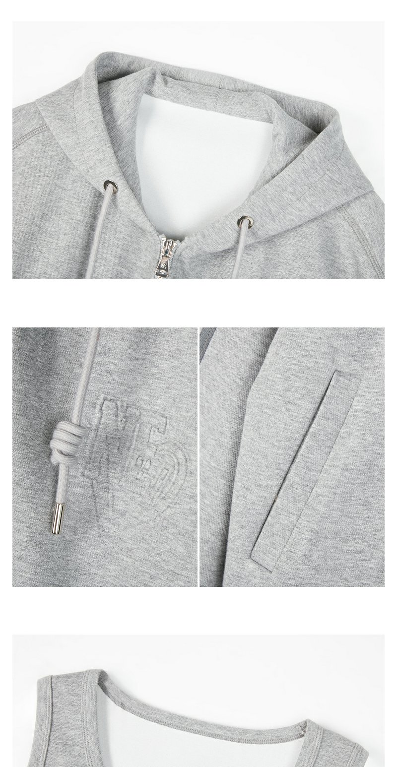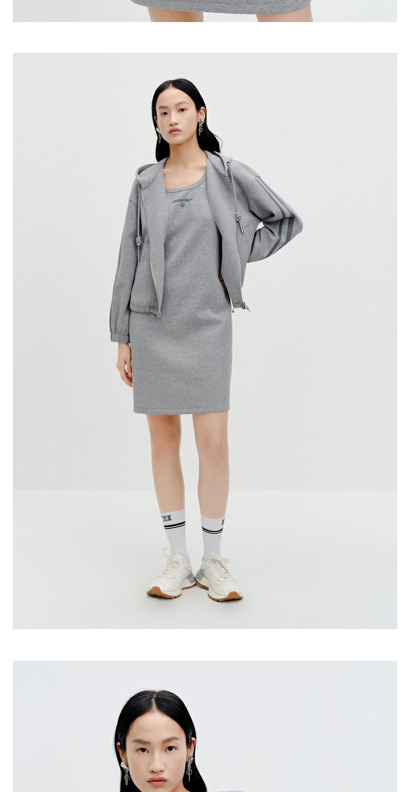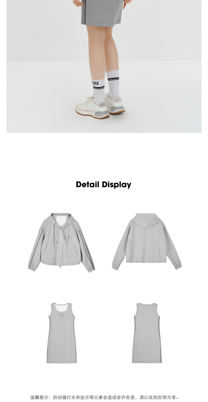 NEELLY纳俪商场同款时尚套装女休闲连帽外套新款灰色连衣裙两件套N23081Z01102