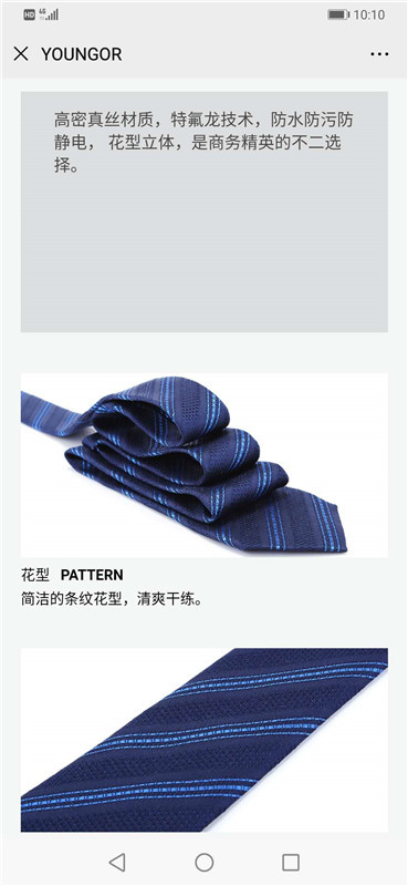 雅戈尔真丝条纹领带,高密真丝材质,特氟龙技术,防水防污防静电,花型立体,是商务精英的不二选择