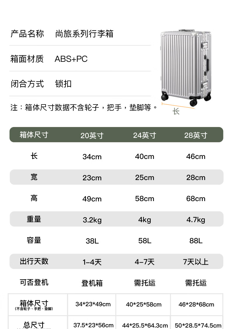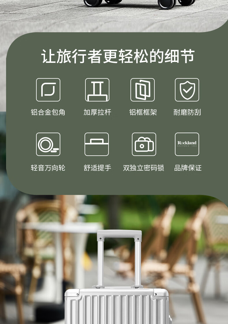 美国Rockland洛克兰尚旅系列铝框硬箱可坐行李箱男女万向轮拉杆箱CRX168