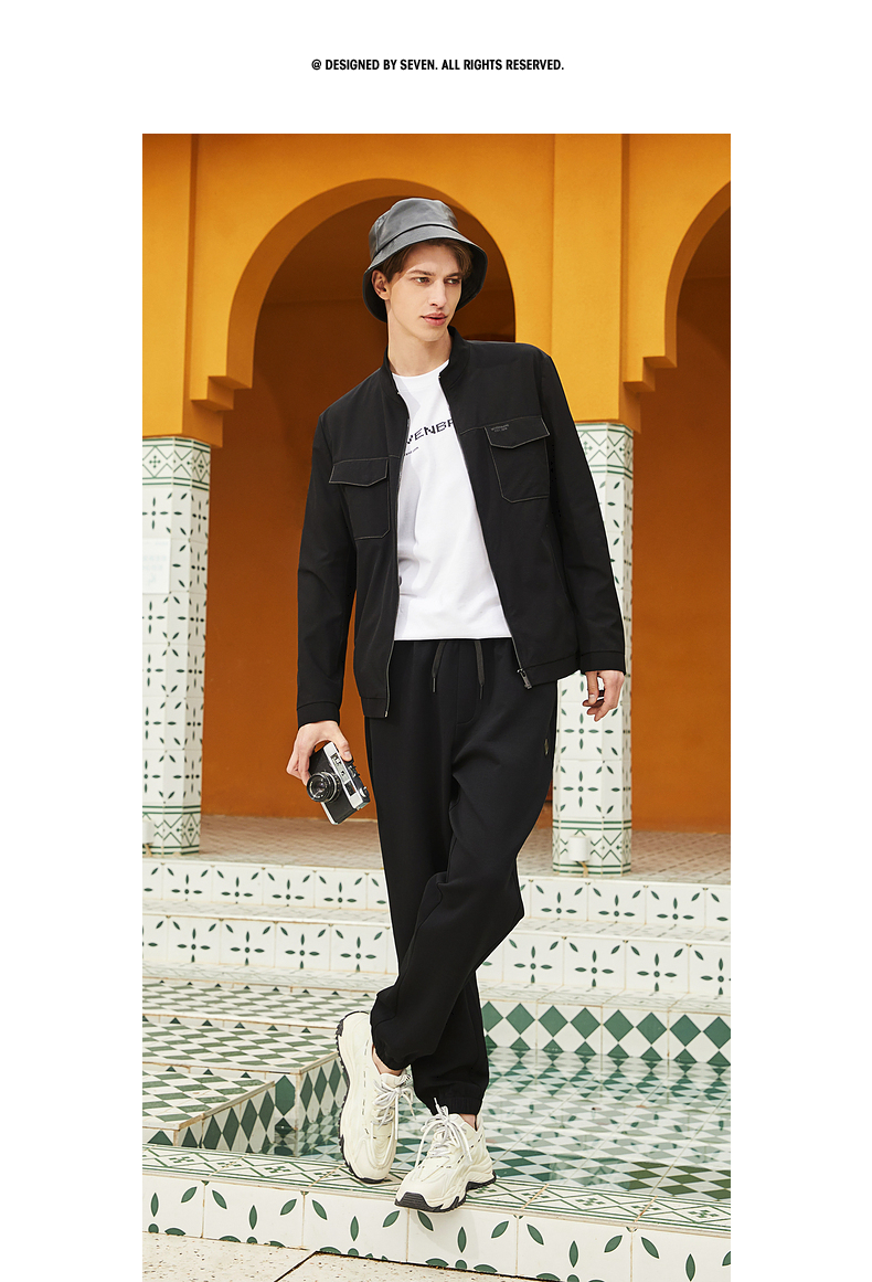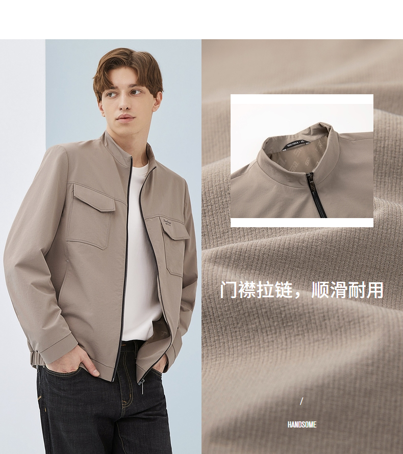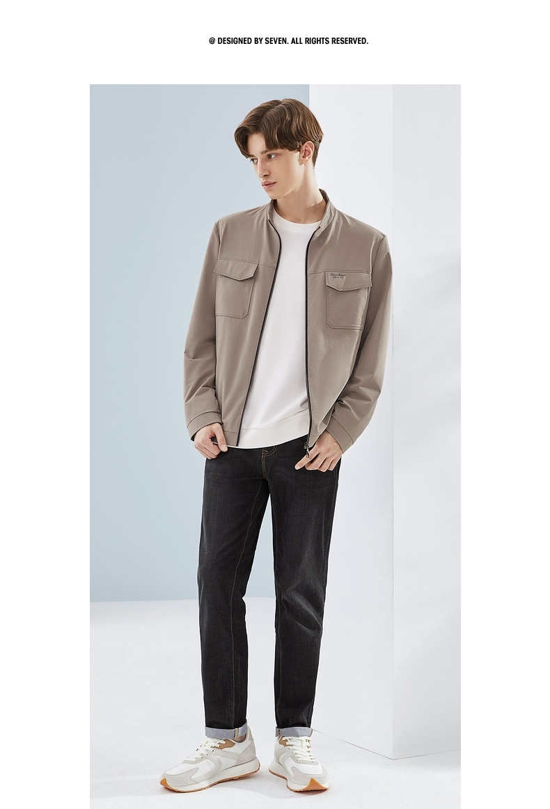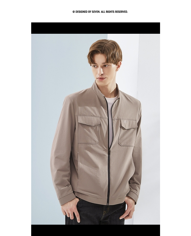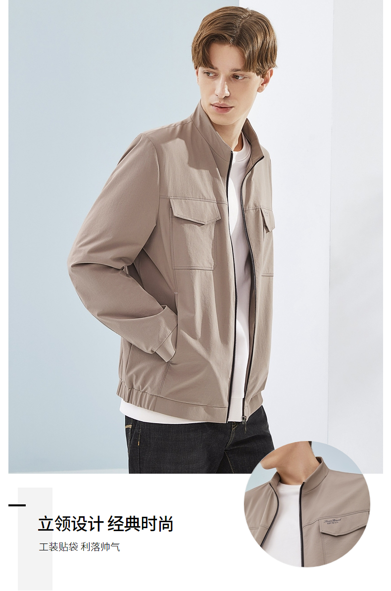 柒牌立领工装外套男春秋新款商务休闲舒适短款百搭男士夹克衫 124K70060