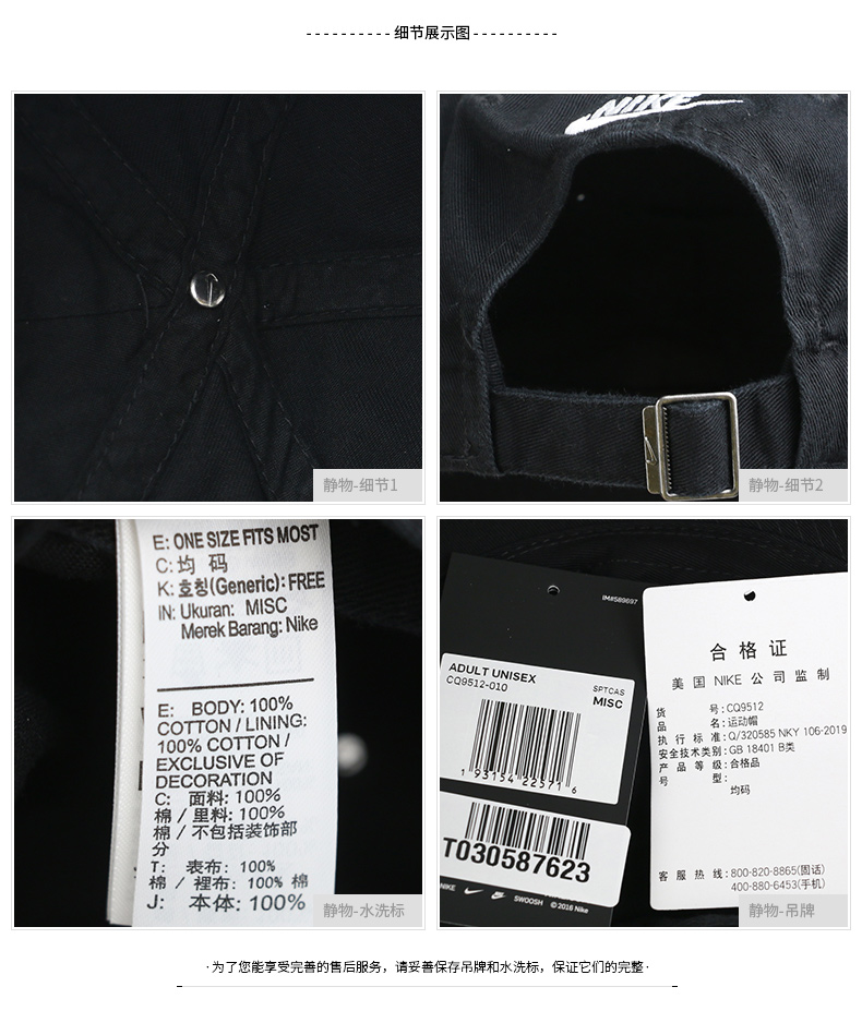 NIKE耐克男帽女帽Just Do It刺绣运动棒球棒休闲帽CQ9512-010