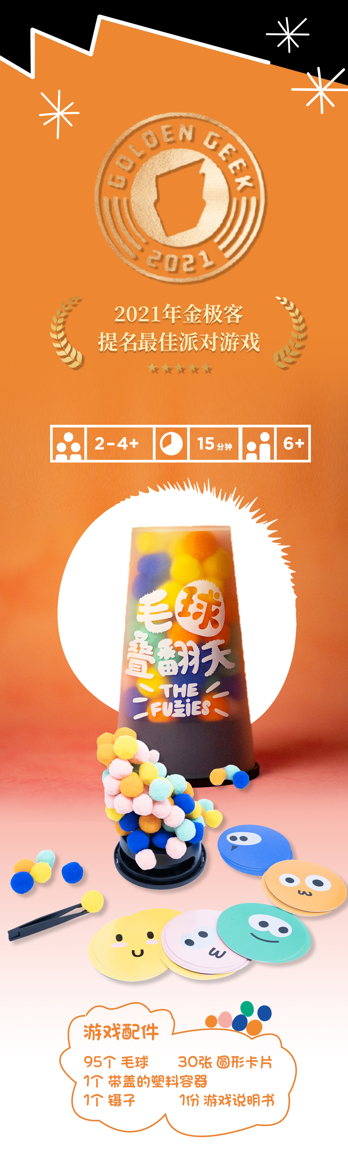 柏龙 BROADWAY 聚会游戏 《毛球叠翻天》 适玩年龄6岁+ 叠叠乐 趣味十足 BW0792BSGSCA