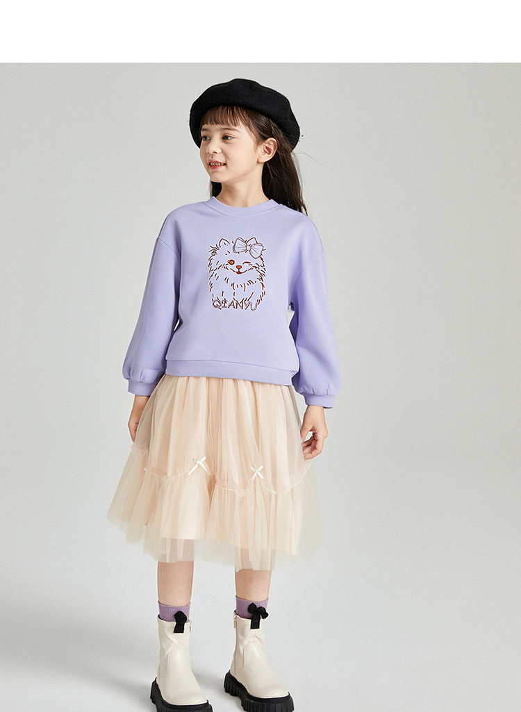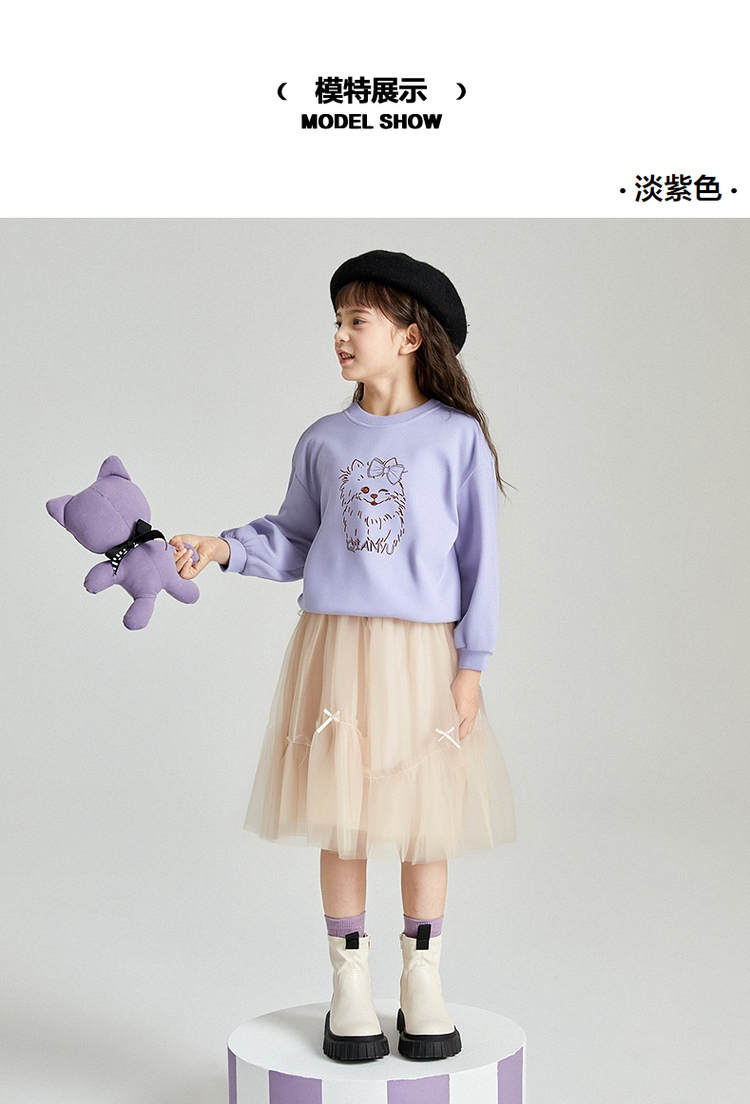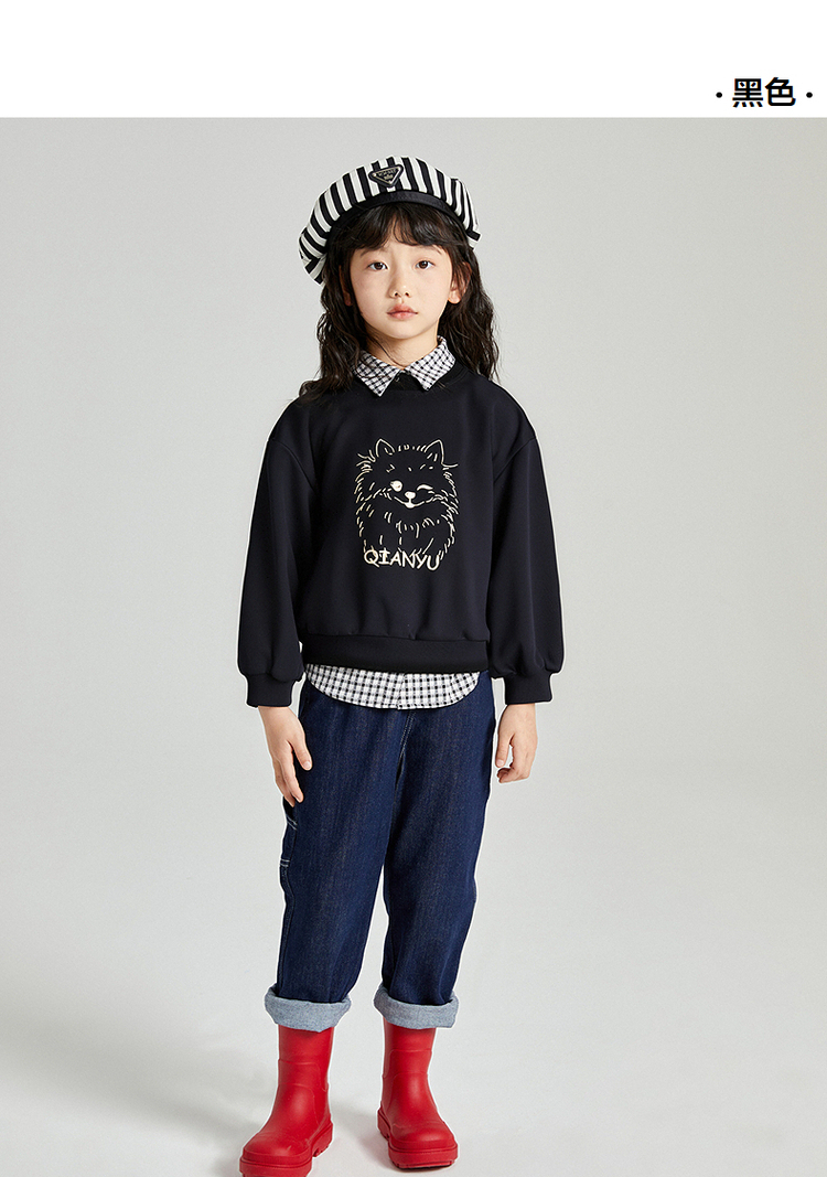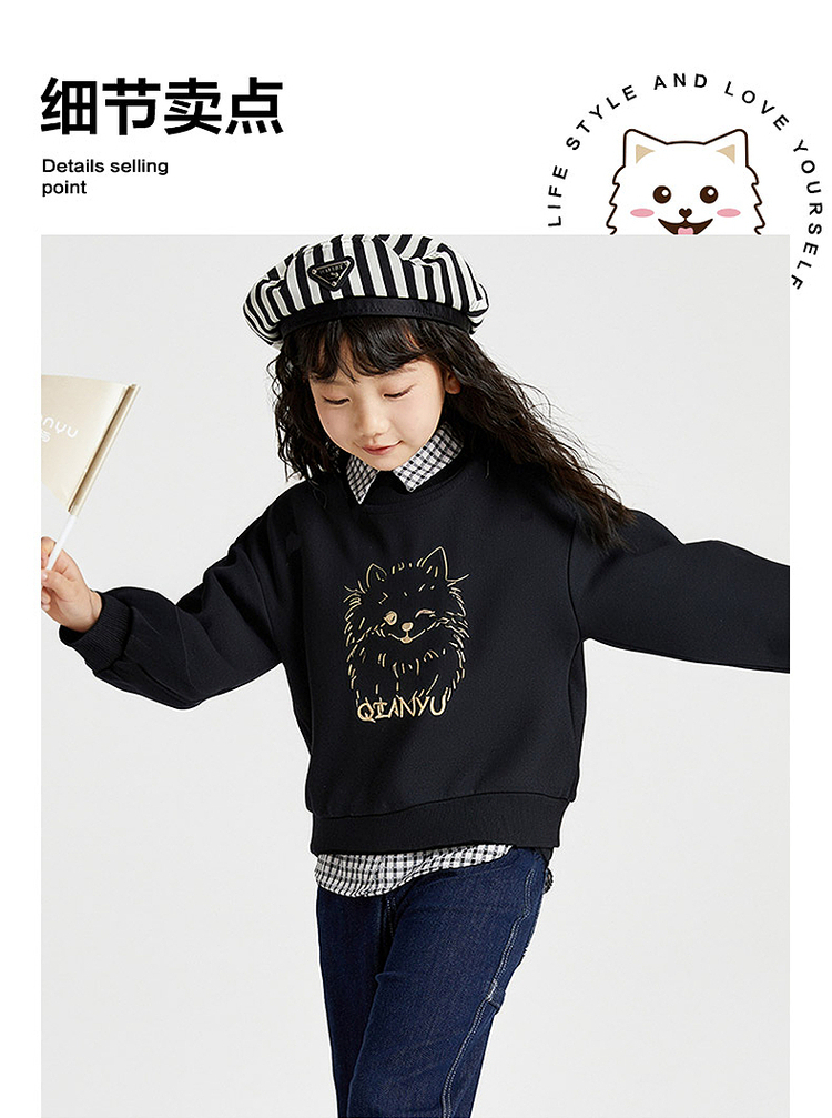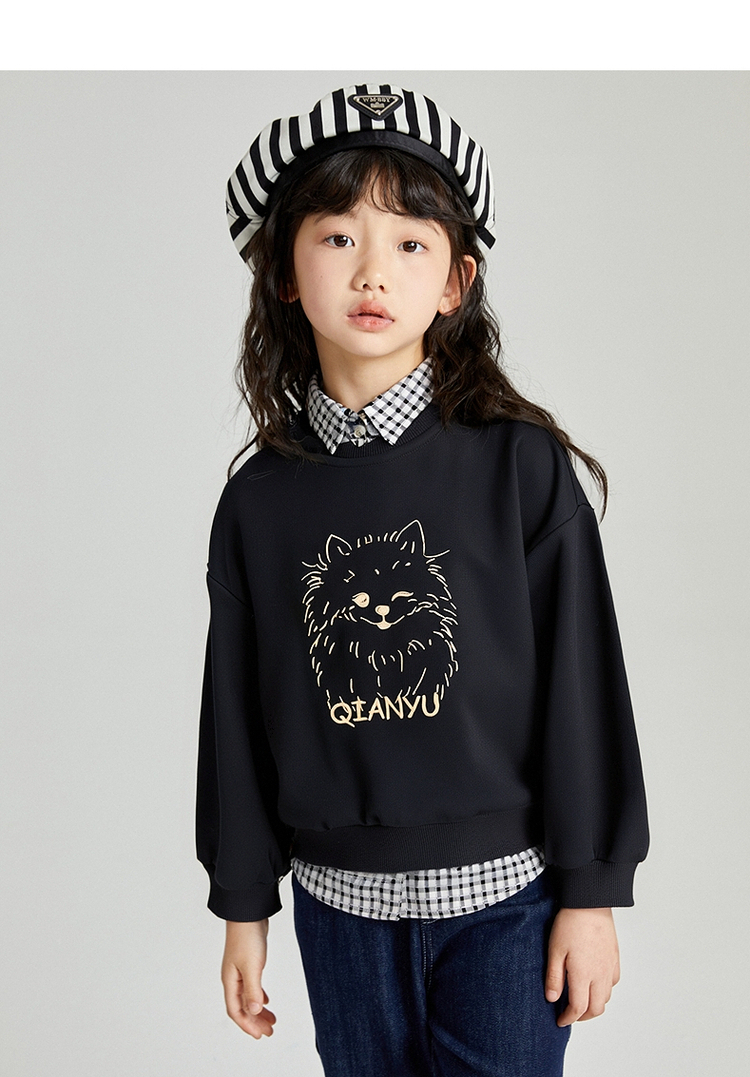 笛莎Deesha 2025秋季新款女童休闲时尚趣味绣花卫衣