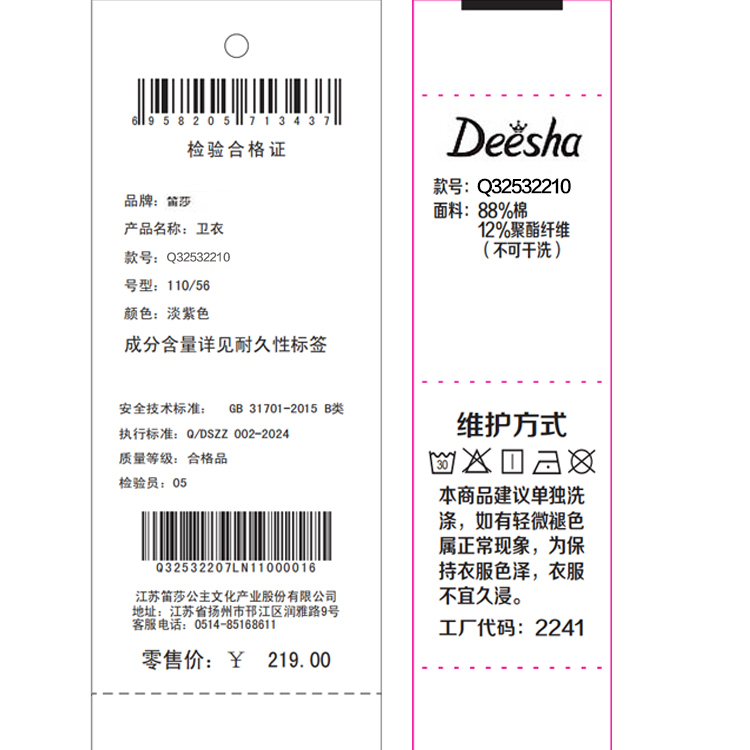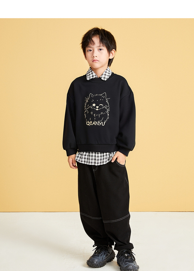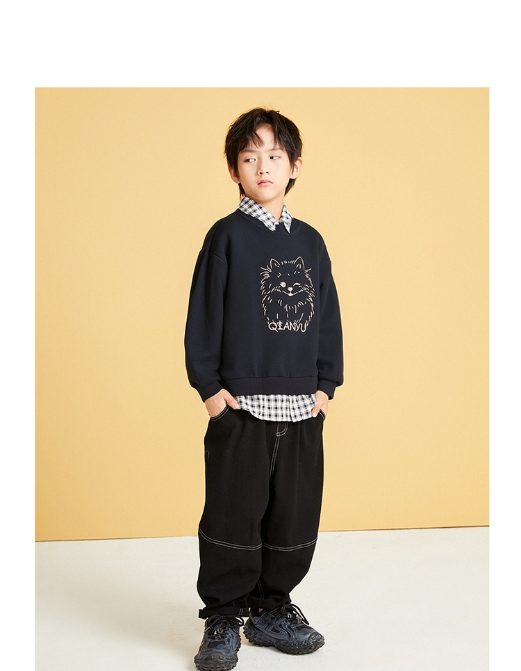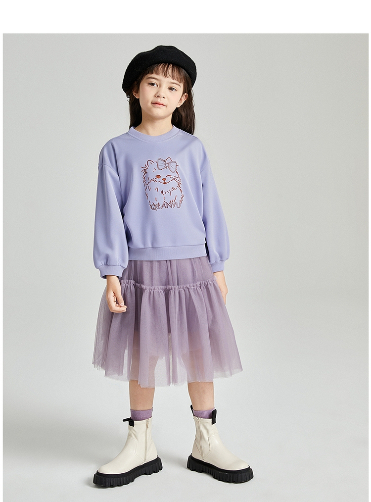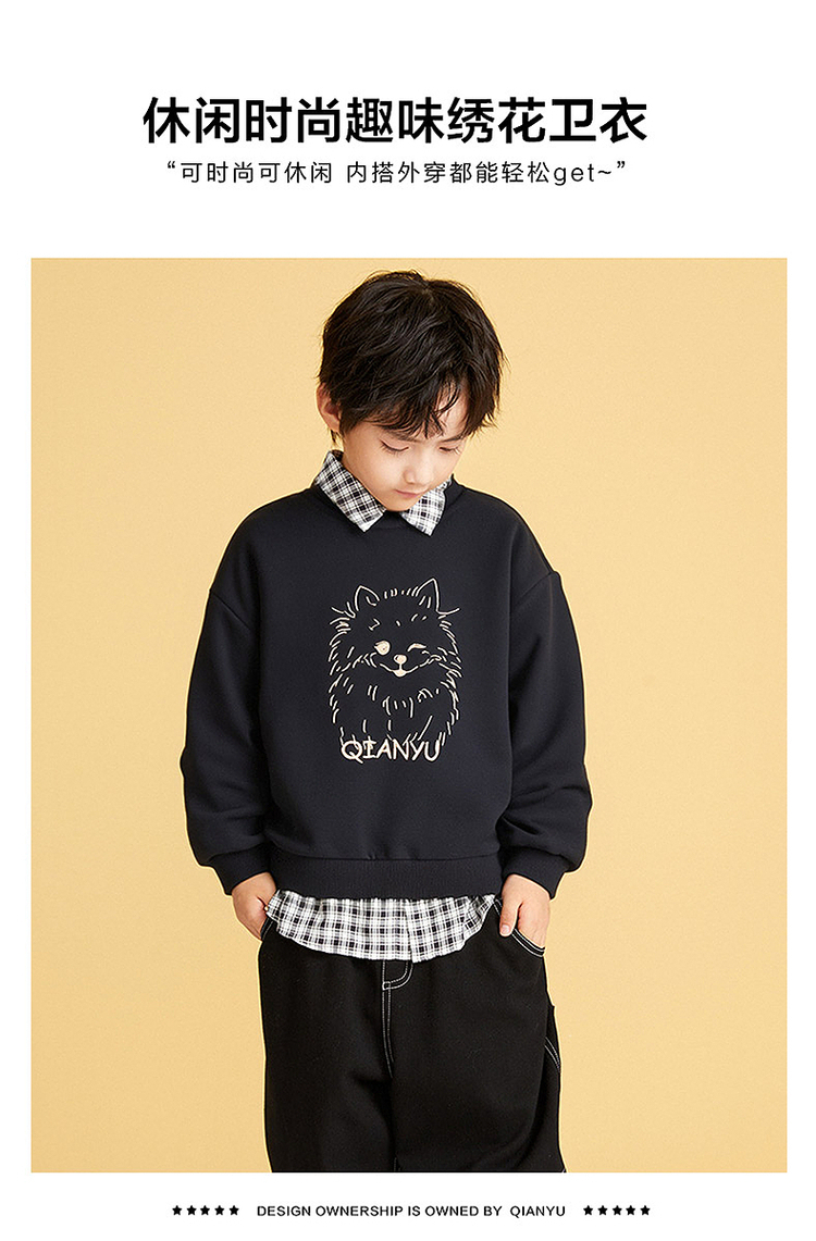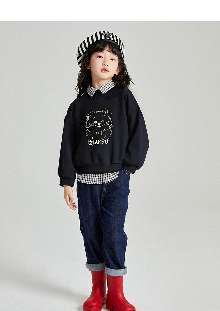 笛莎Deesha 2025秋季新款女童休闲时尚趣味绣花卫衣