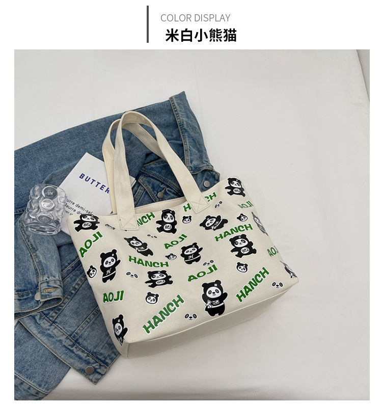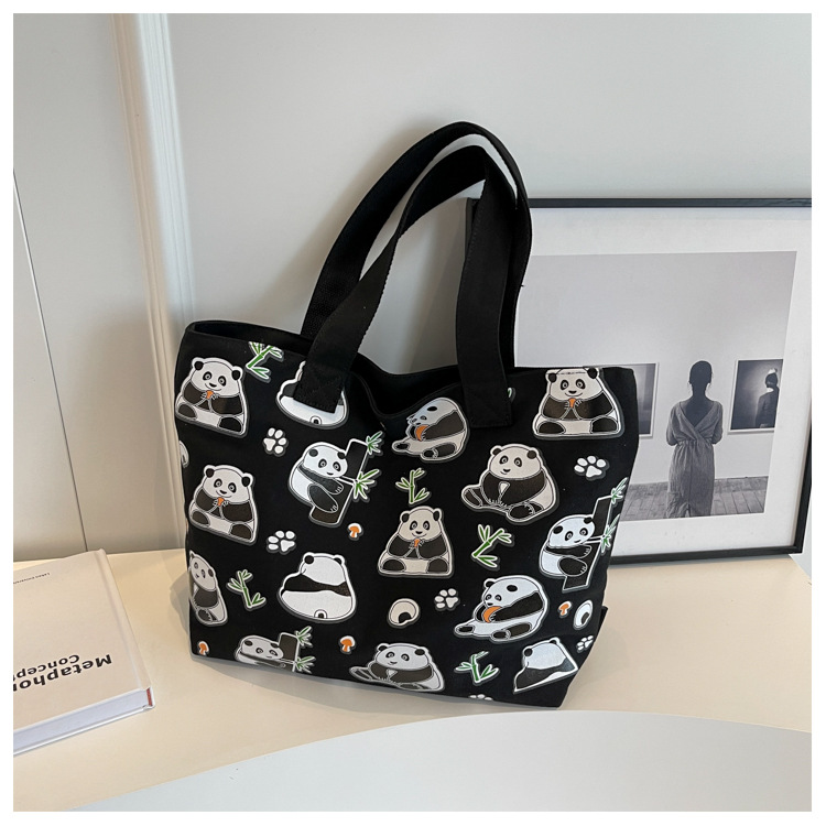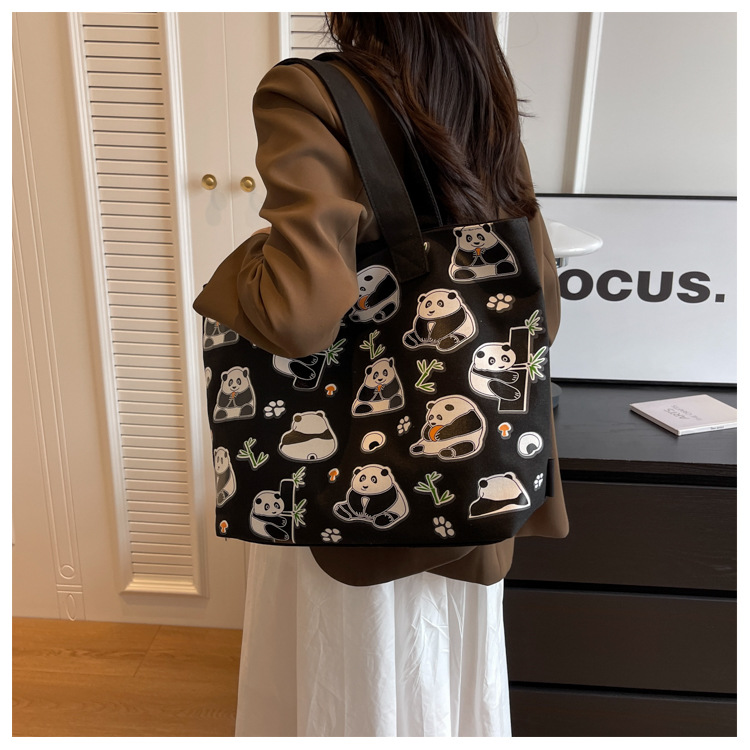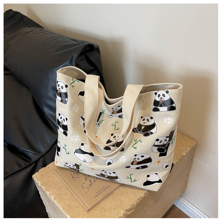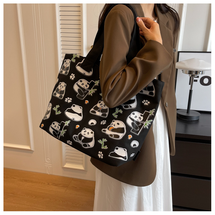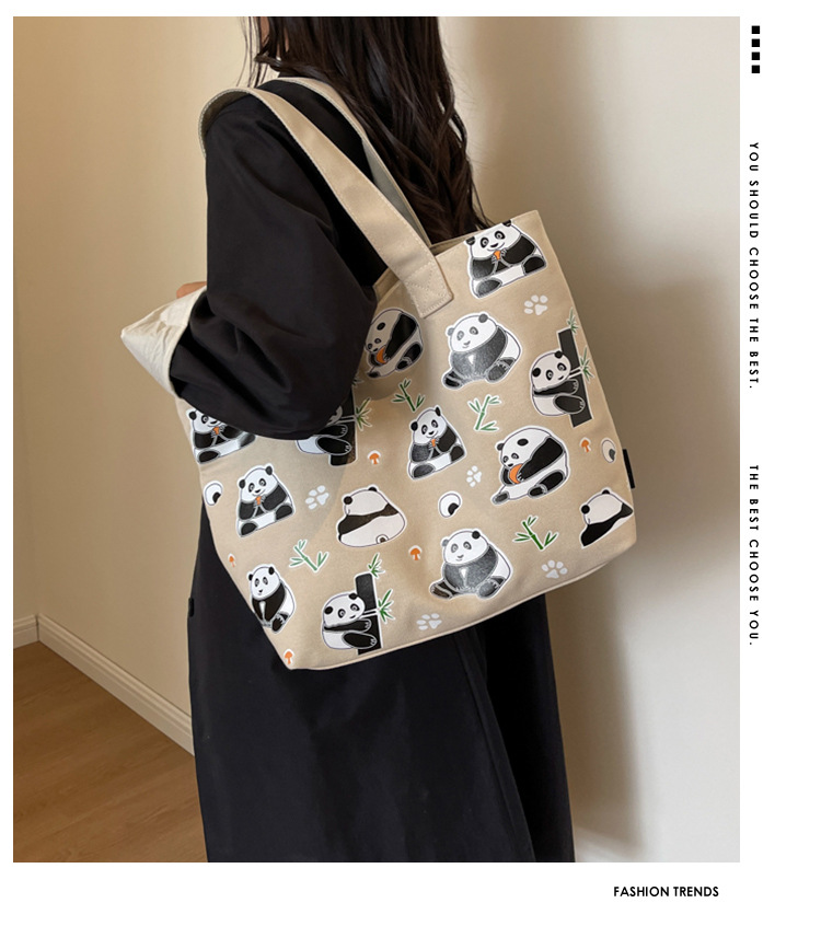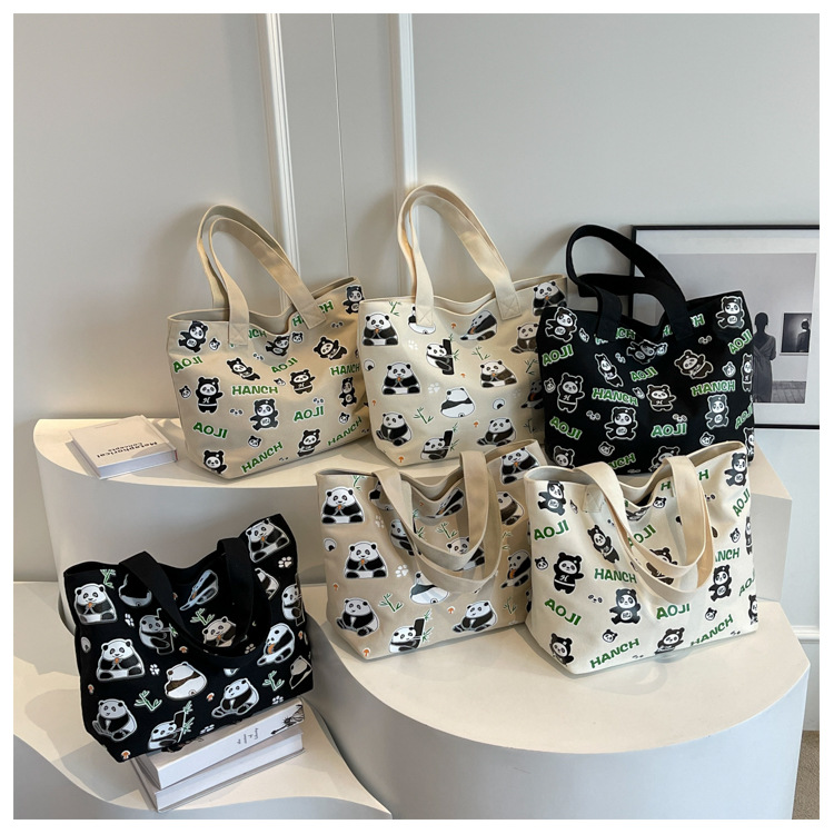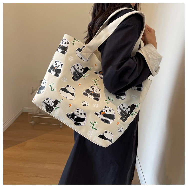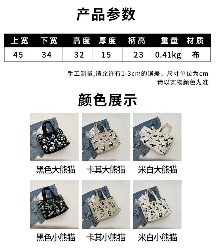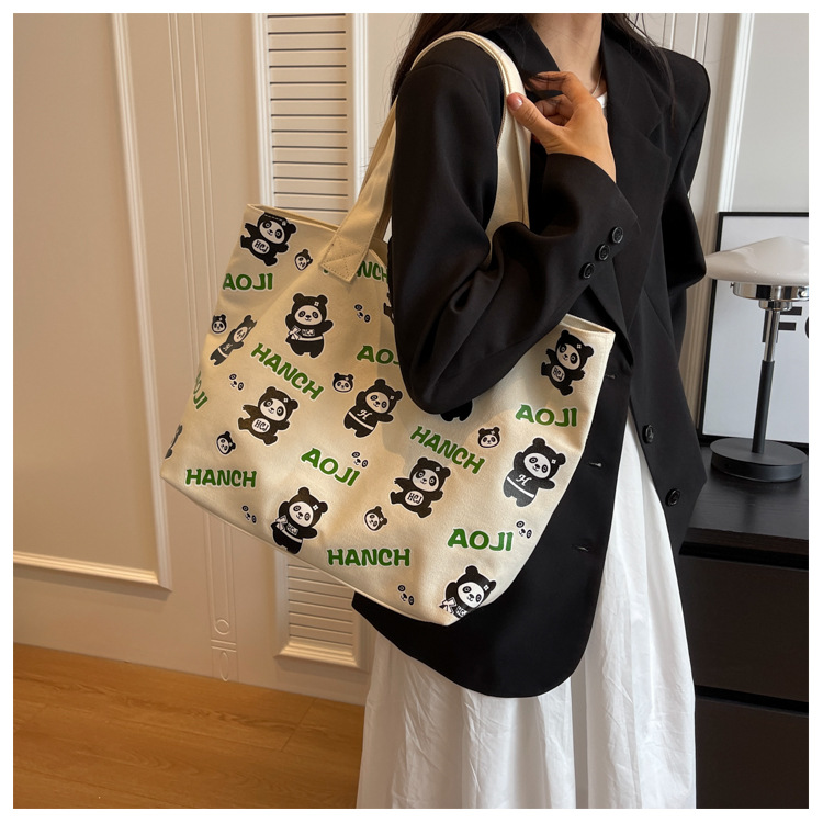 夏季【熊猫帆布包】大容量质感单肩包 斜挎托特购物袋 妈咪时尚休闲包 国庆出游户外