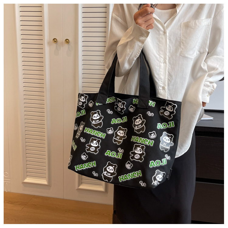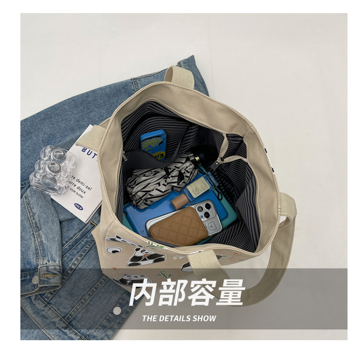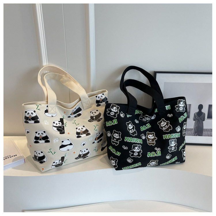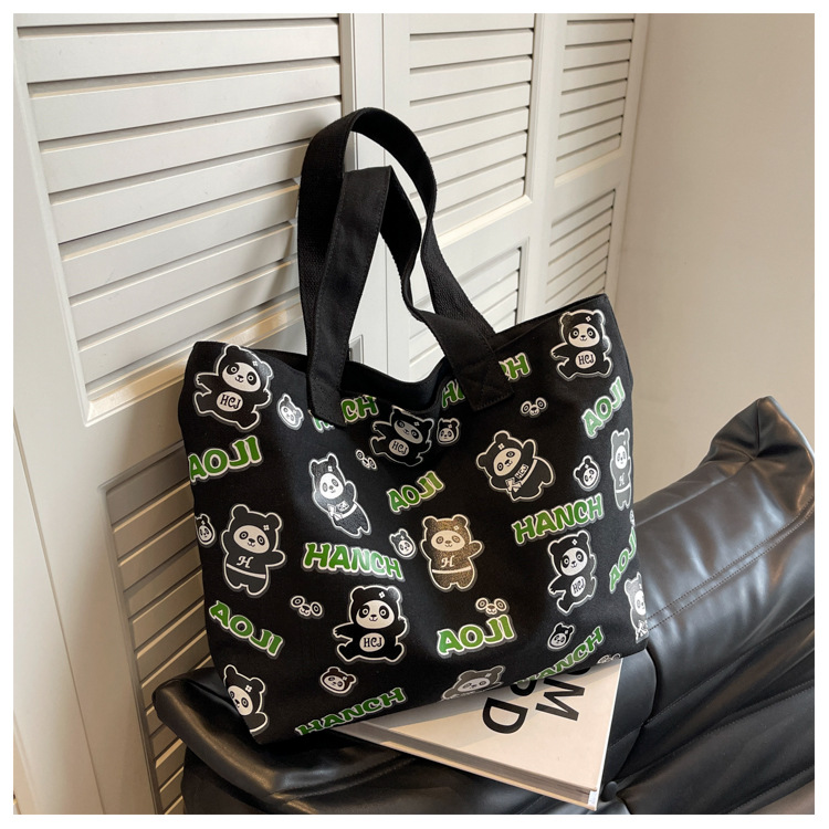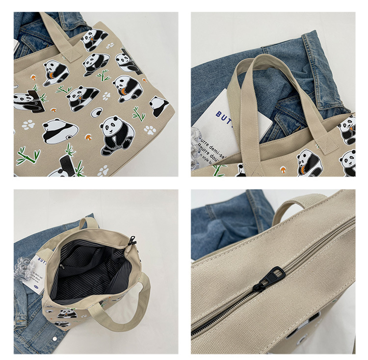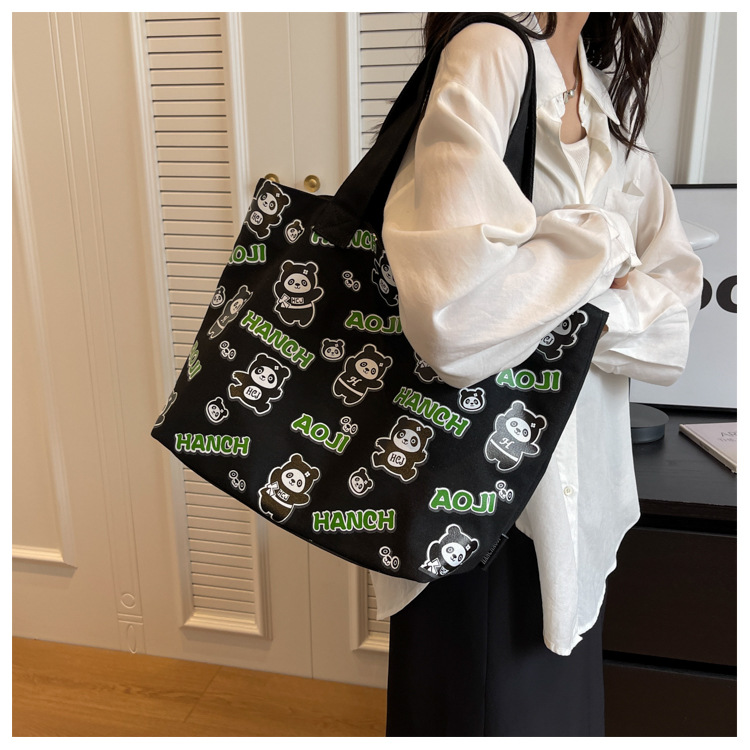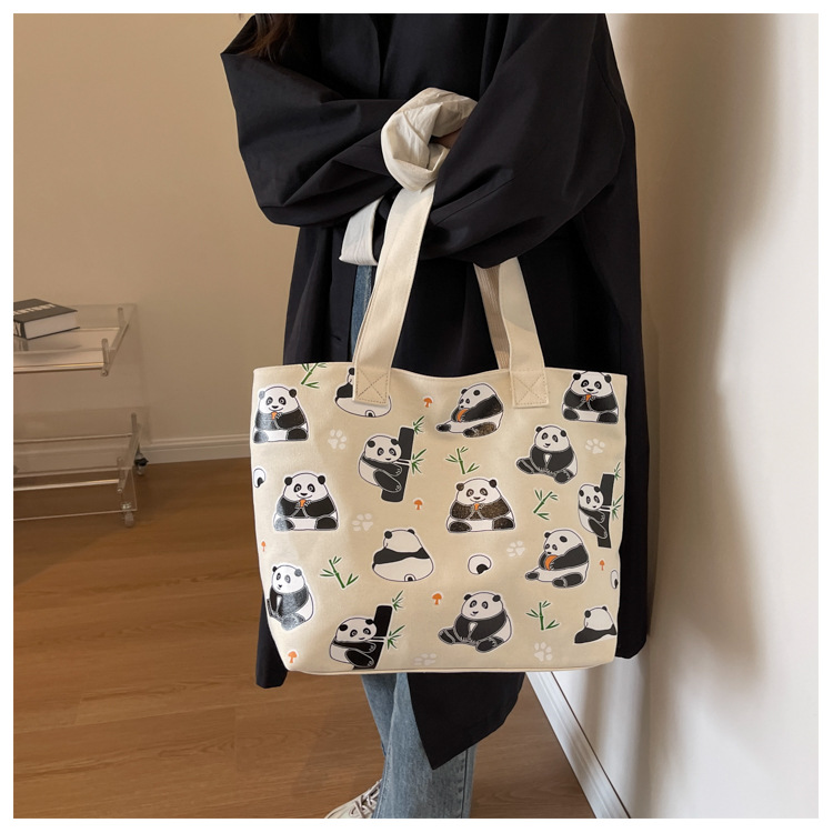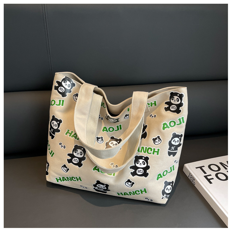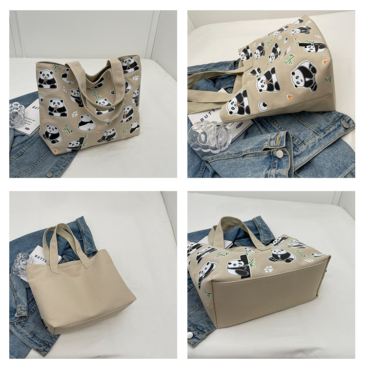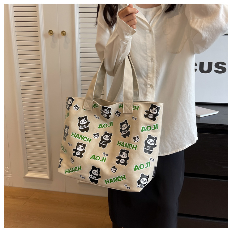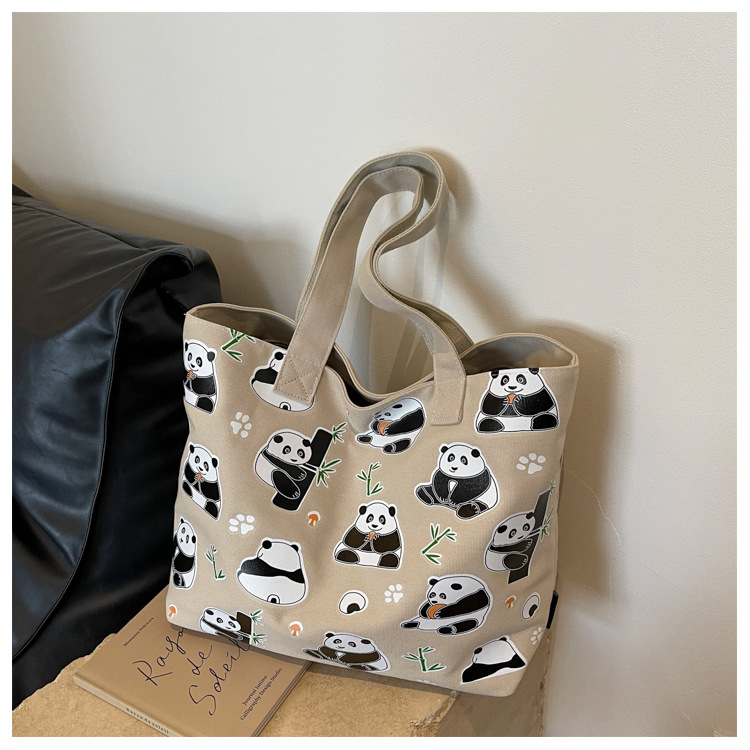 夏季【熊猫帆布包】大容量质感单肩包 斜挎托特购物袋 妈咪时尚休闲包 国庆出游户外