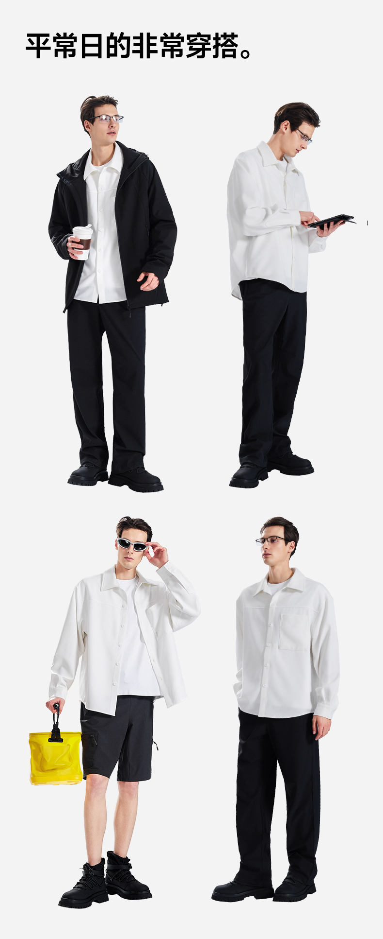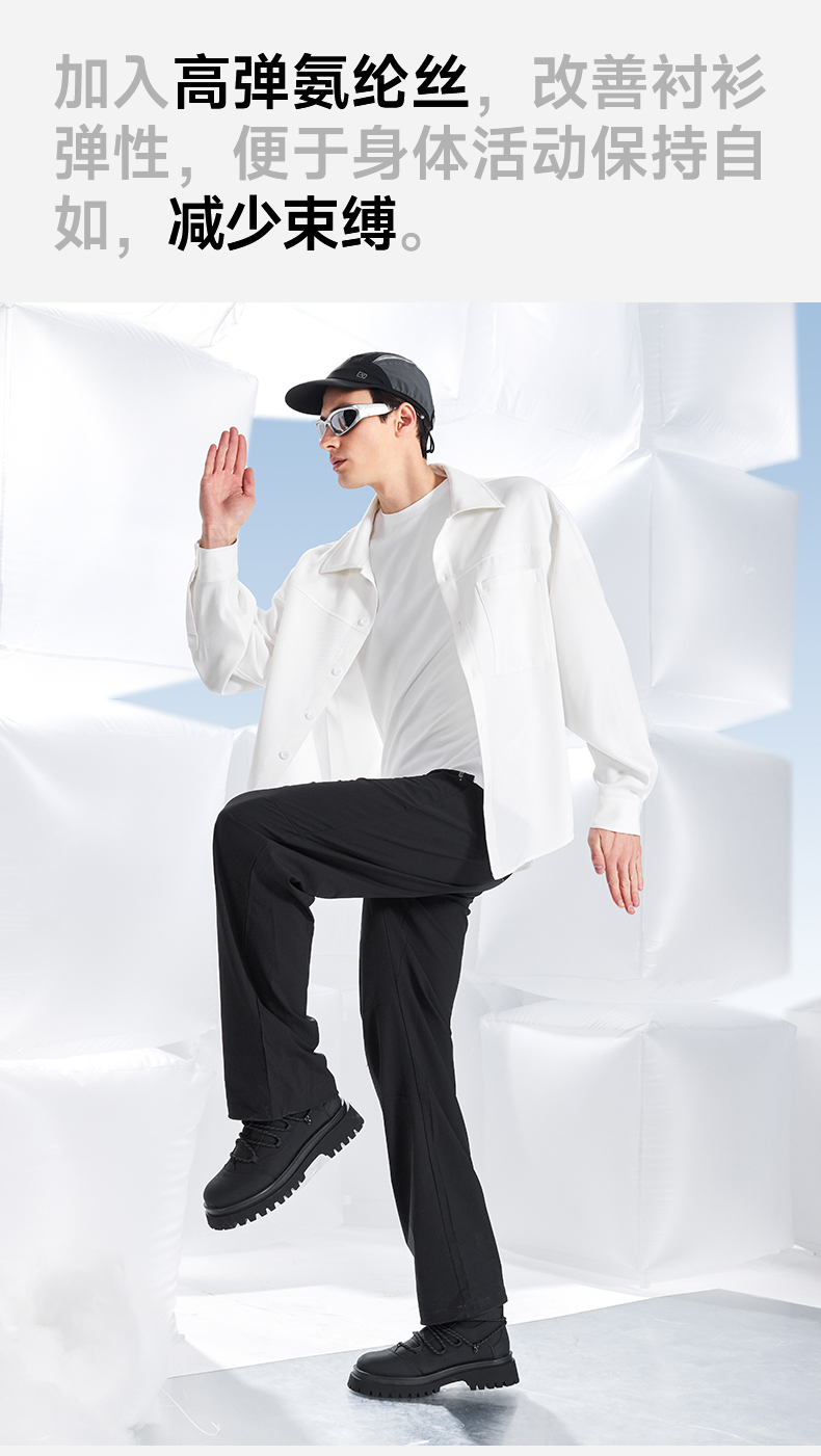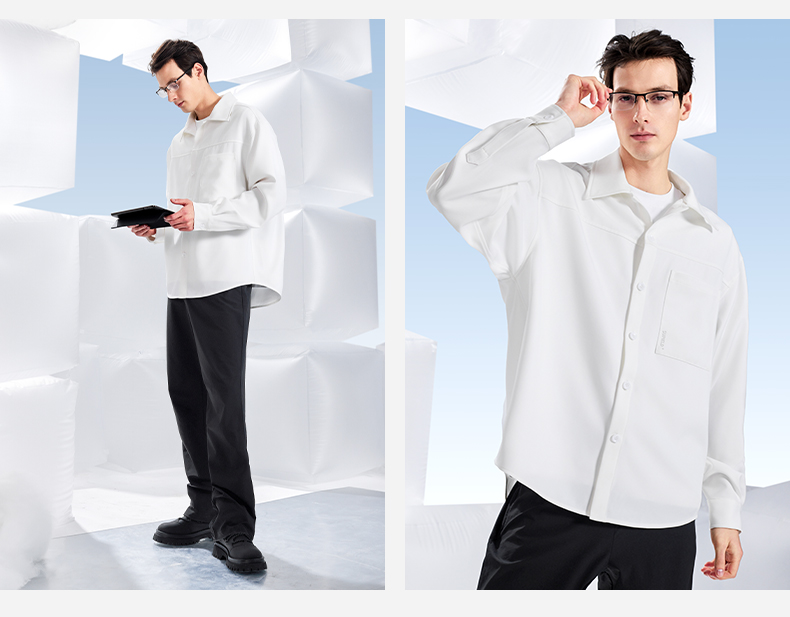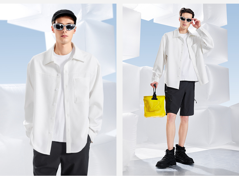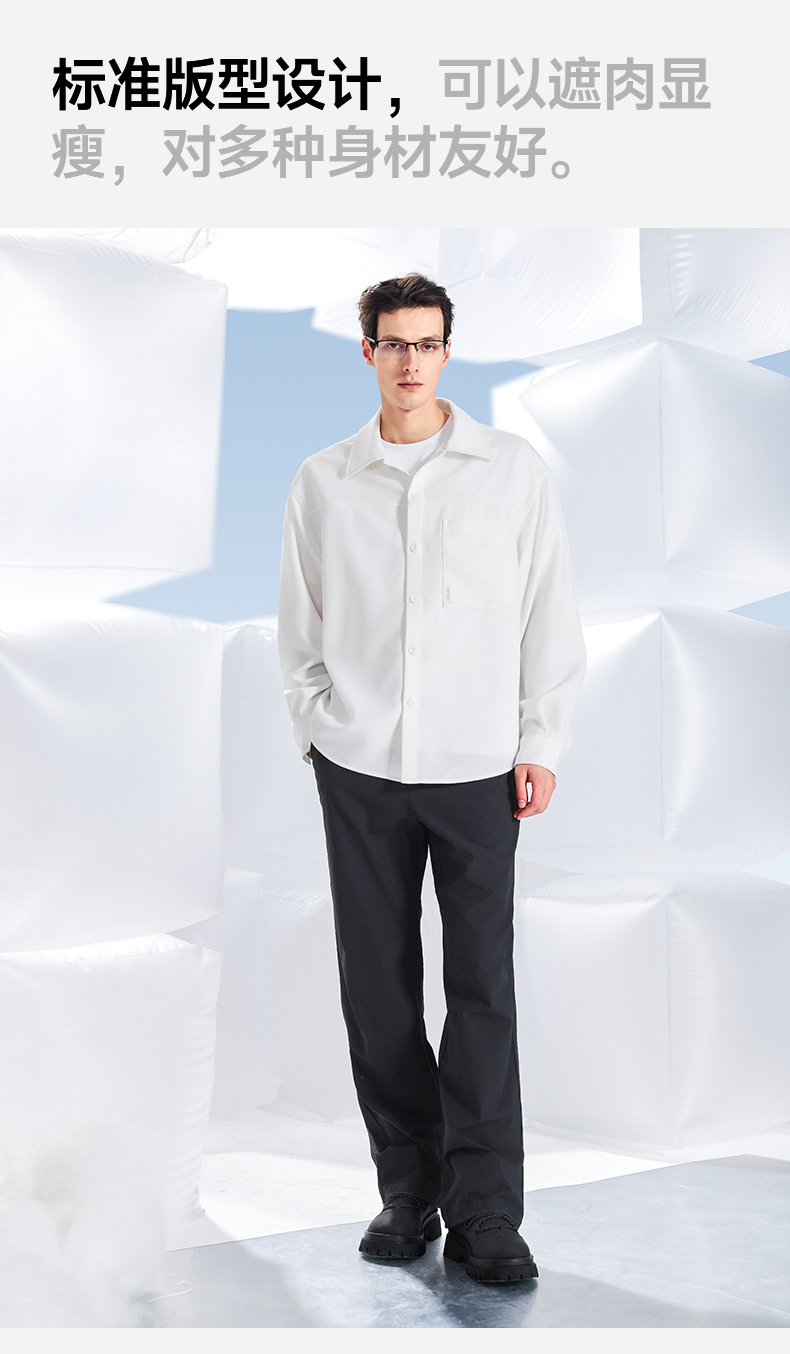 素湃Supield男士疏水衬衫外套外穿防水防污白衬衣休闲长袖衬衣男H3537