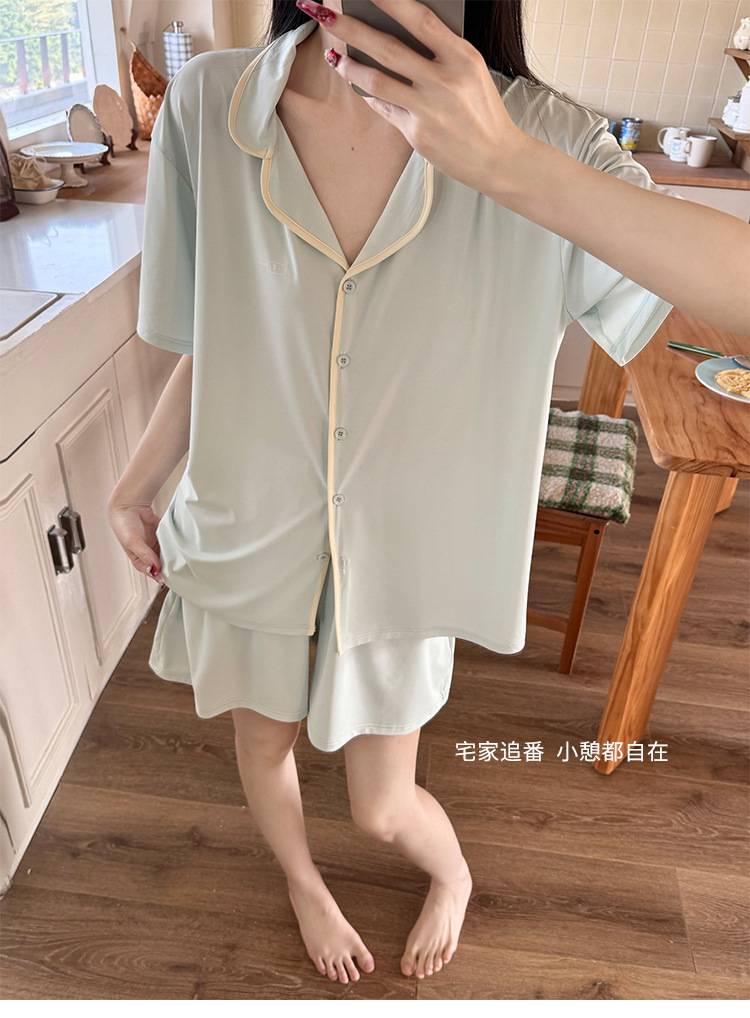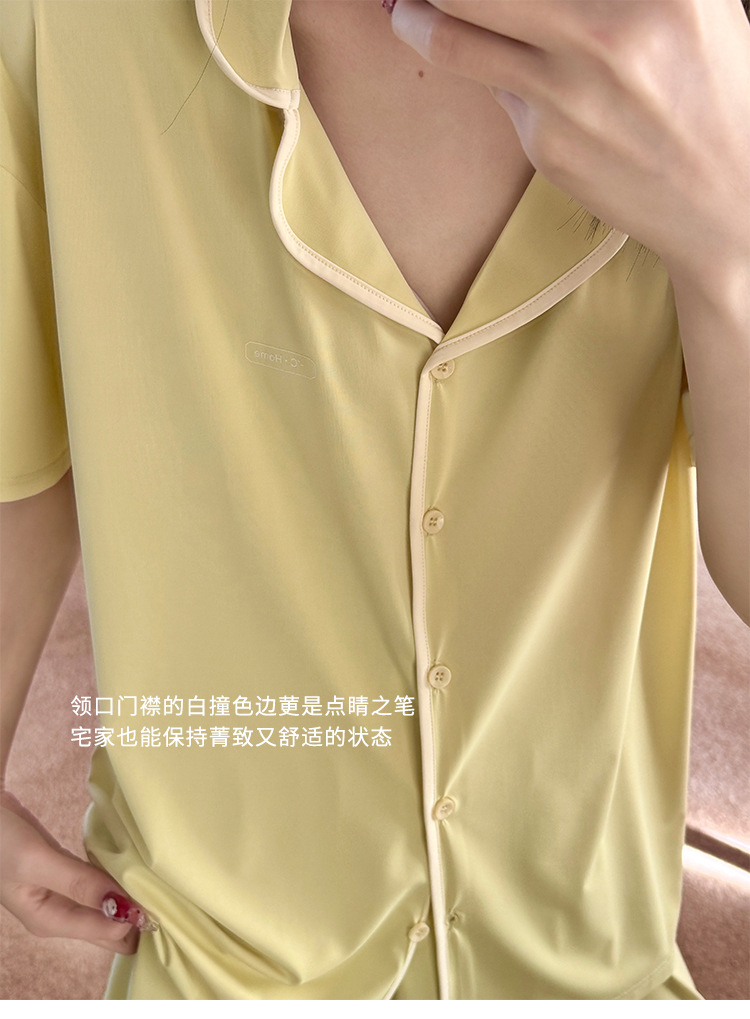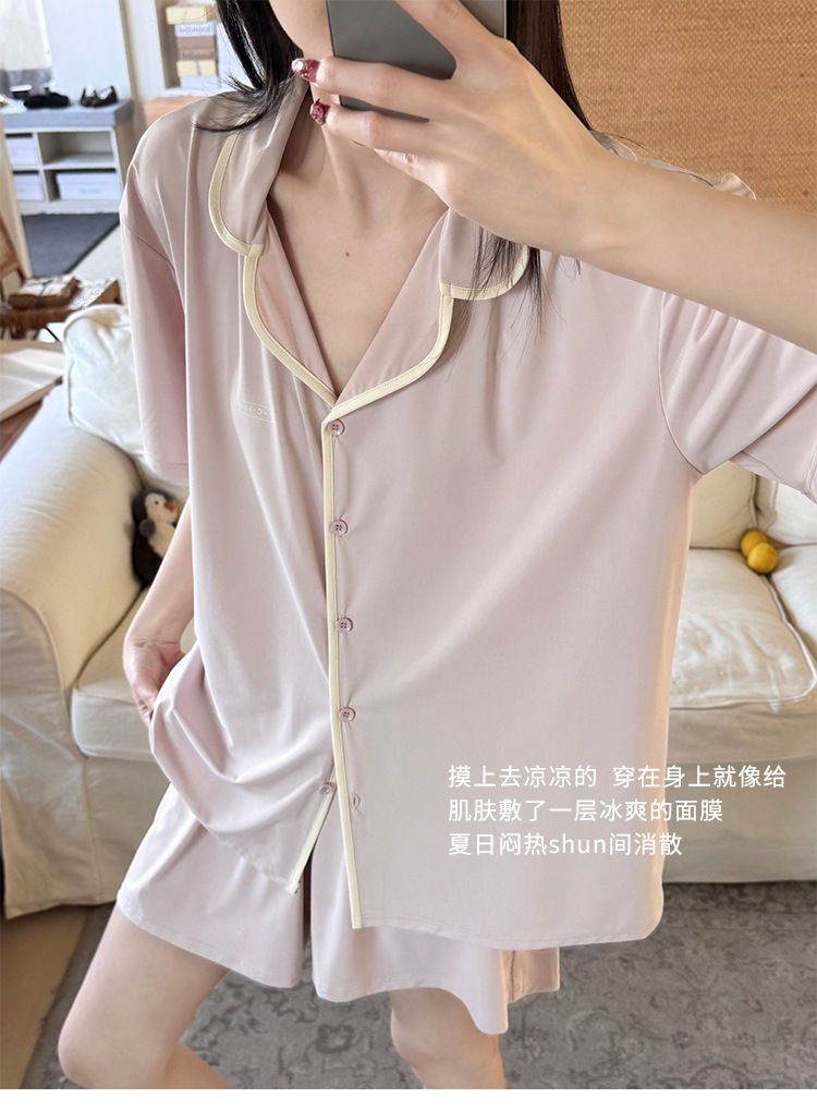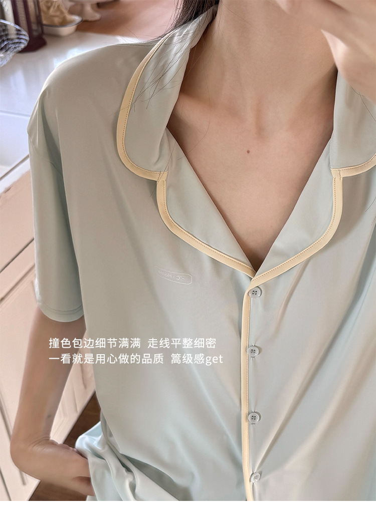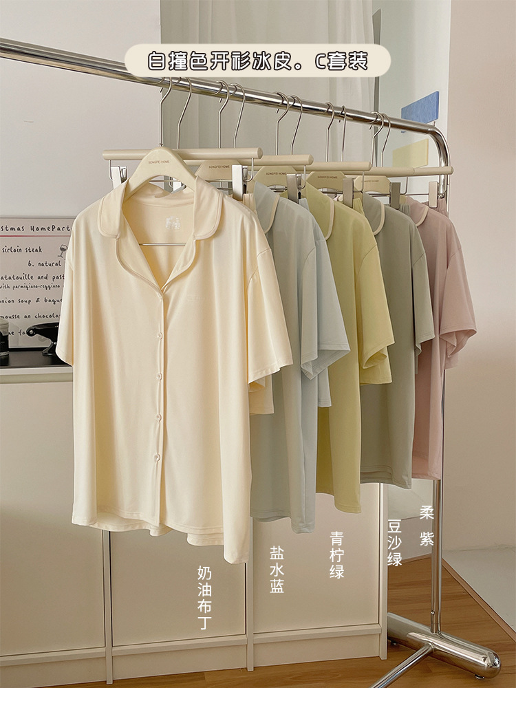 【冰皮睡衣套装】夏季凉感柔滑家居服 带兜翻领睡衣