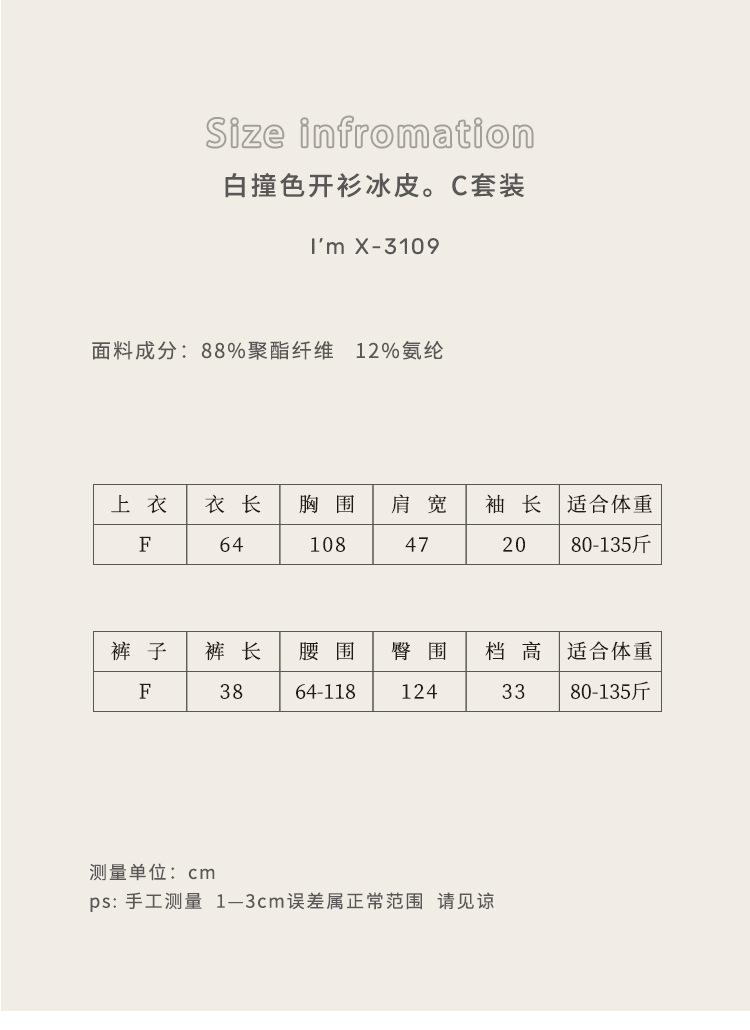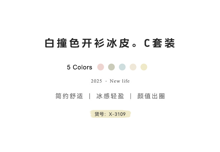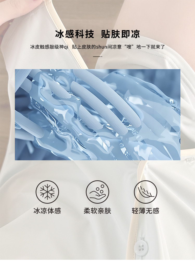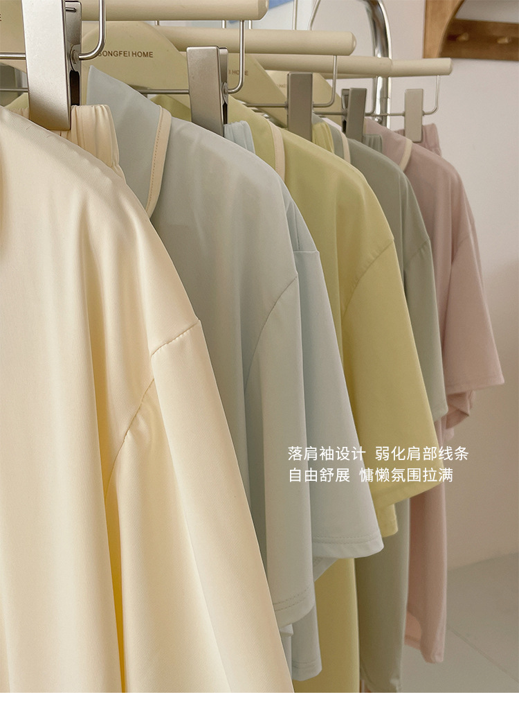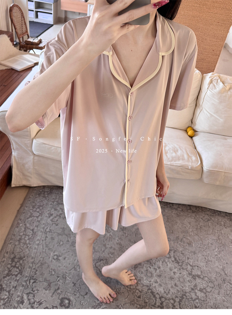 【冰皮睡衣套装】夏季凉感柔滑家居服 带兜翻领睡衣