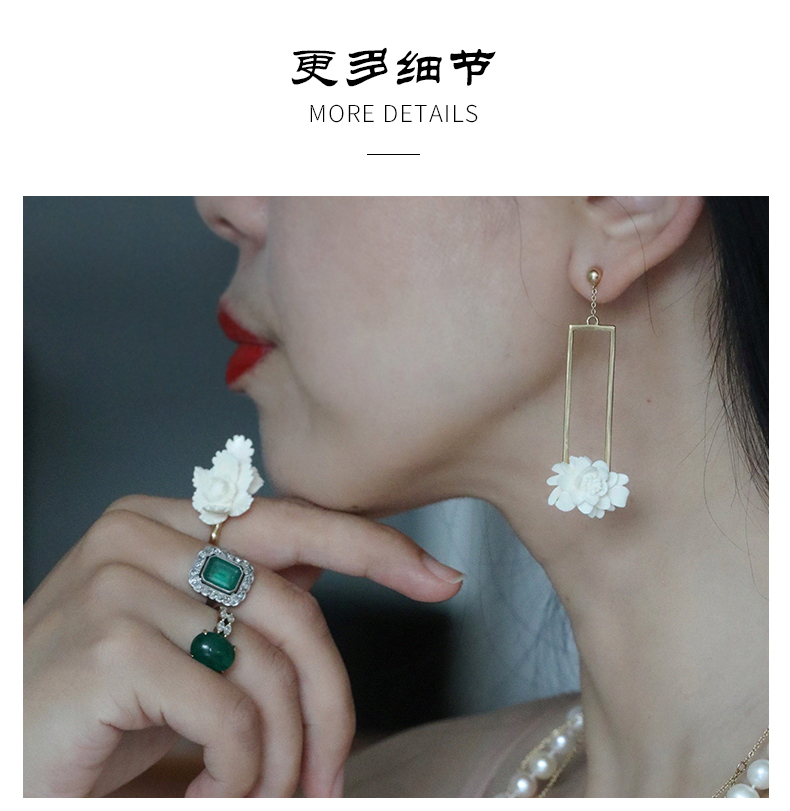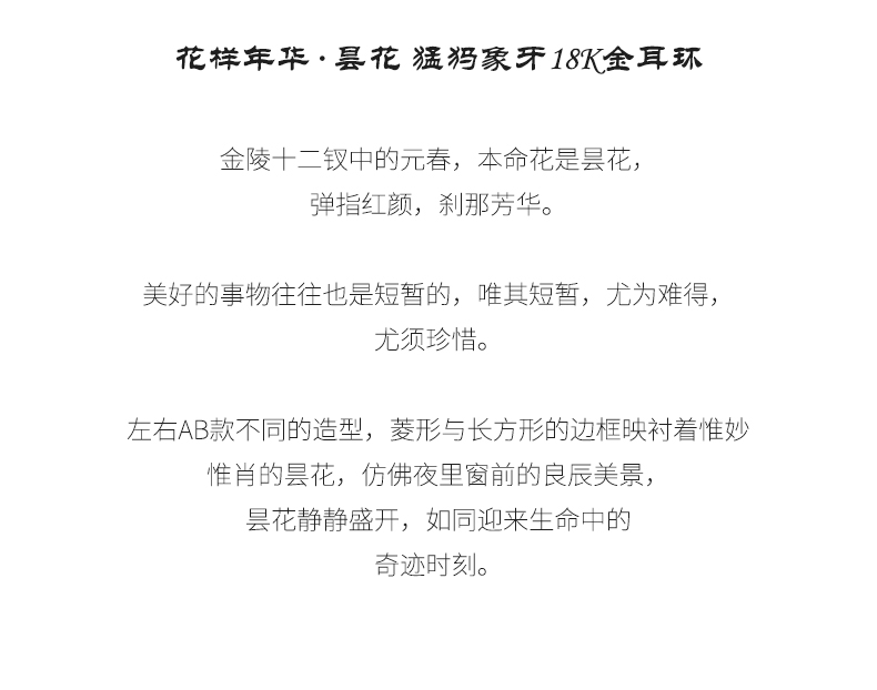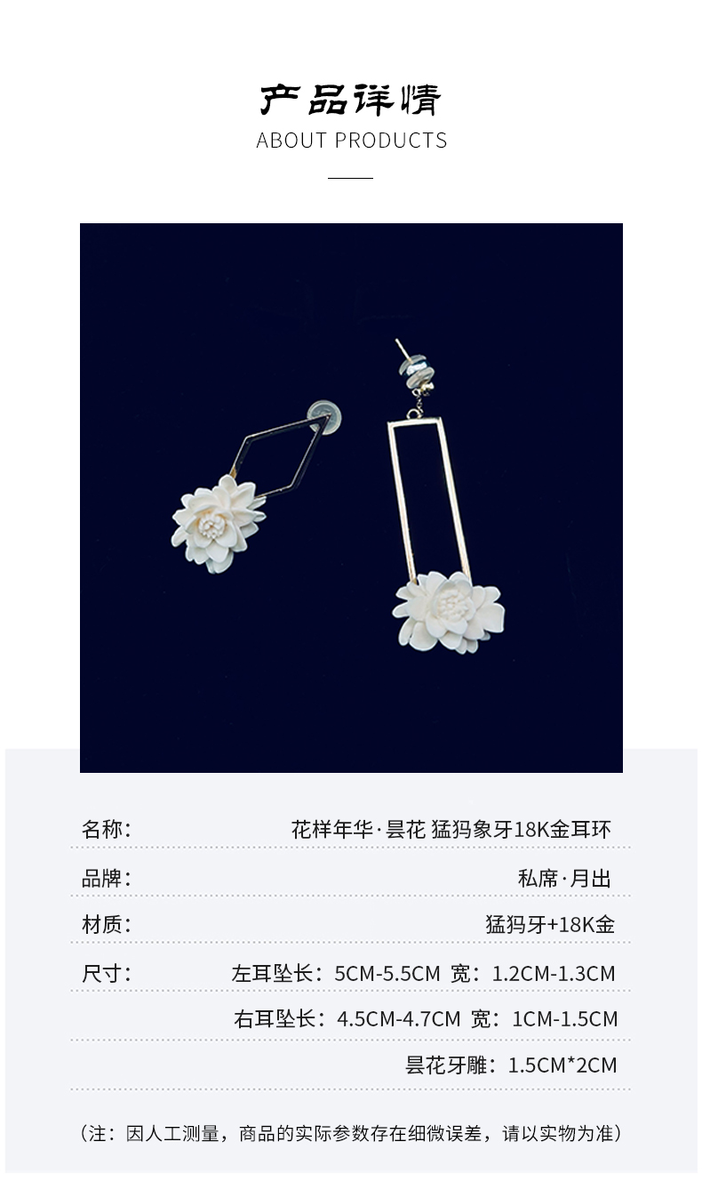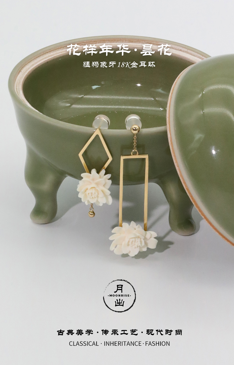【月出】猛犸牙雕国粹·手工制作·昙花18K金耳环yc