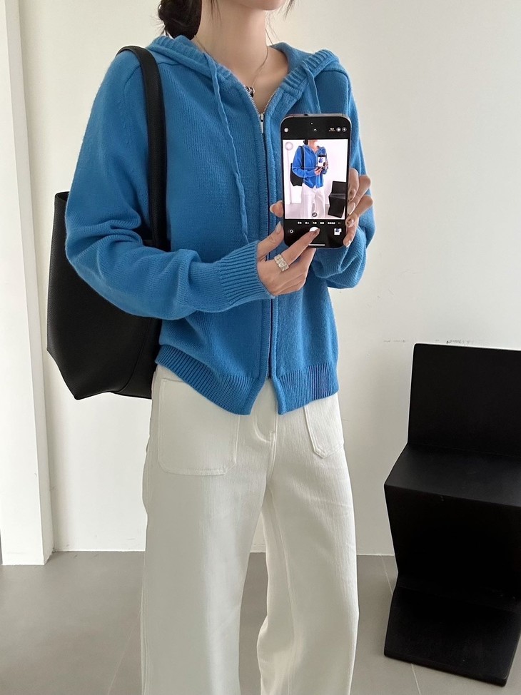 订染的克莱因蓝色系,显白不挑人 软软糯糯,贴身穿太舒服了,自留推荐哈~ ⚠️15%羊毛,软糯细腻,蓬松有绒感 贴身穿合适,保暖性好 肩袖一体贴合身形,显瘦百搭 单穿或叠穿都合适,穿脱方便,实穿度高 拉链+连帽设计,简洁不累赘,舒服自在 配各种毛呢外套,羽绒马甲,风衣,羽绒服都好看 精纺工艺,抗皱性,抗起球相对较好 不易掉毛,色牢度高 日常搭配各种深浅色高腰裤,裙裤,阔腿裤都合适
