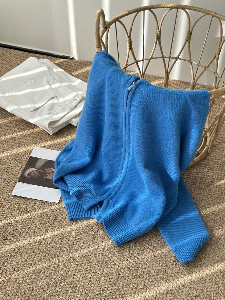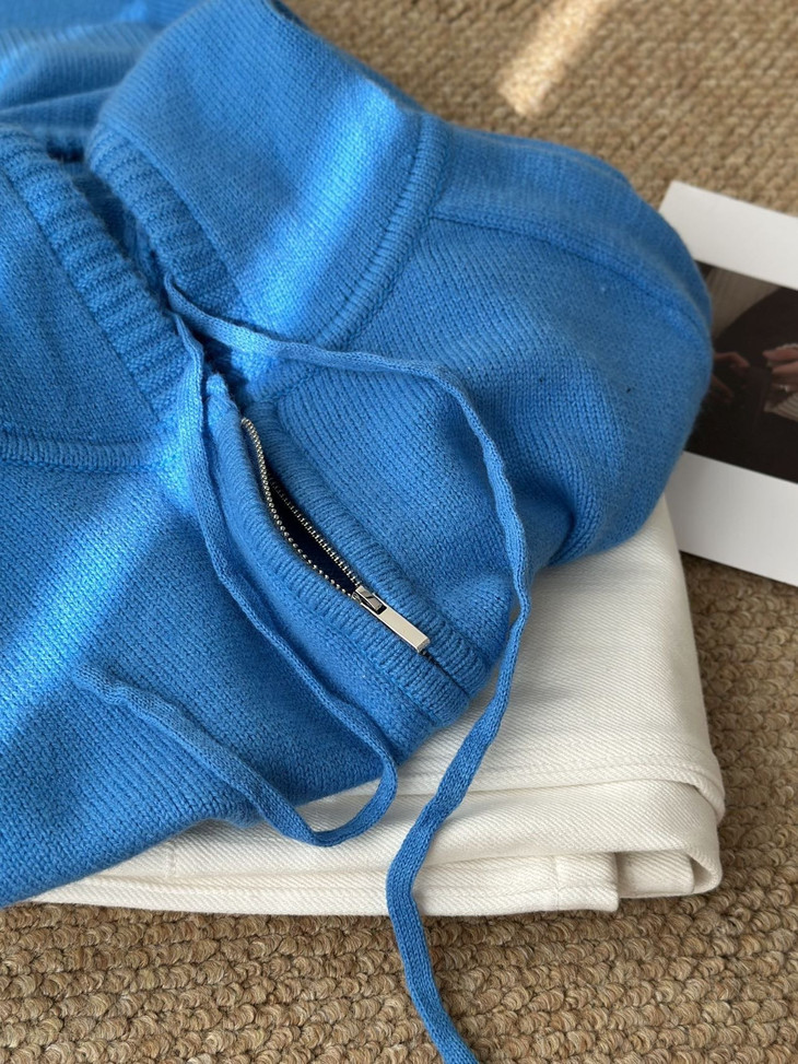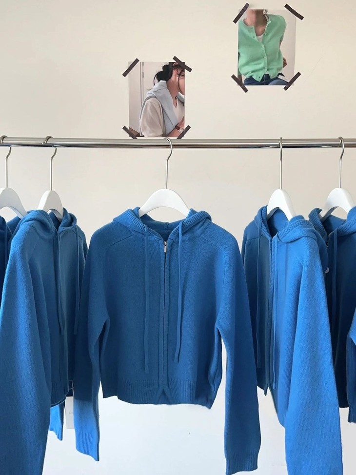 ❗️真的爱惨了😎这个【自带滤镜】克莱因蓝拉链连帽针织开衫💙太显白了吧❗️实物颜色超正的 ✅含15%羊毛,软糯细腻,蓬松有绒感 ✅配各种毛呢外套,💜羽绒马甲,风衣,羽绒服都好看