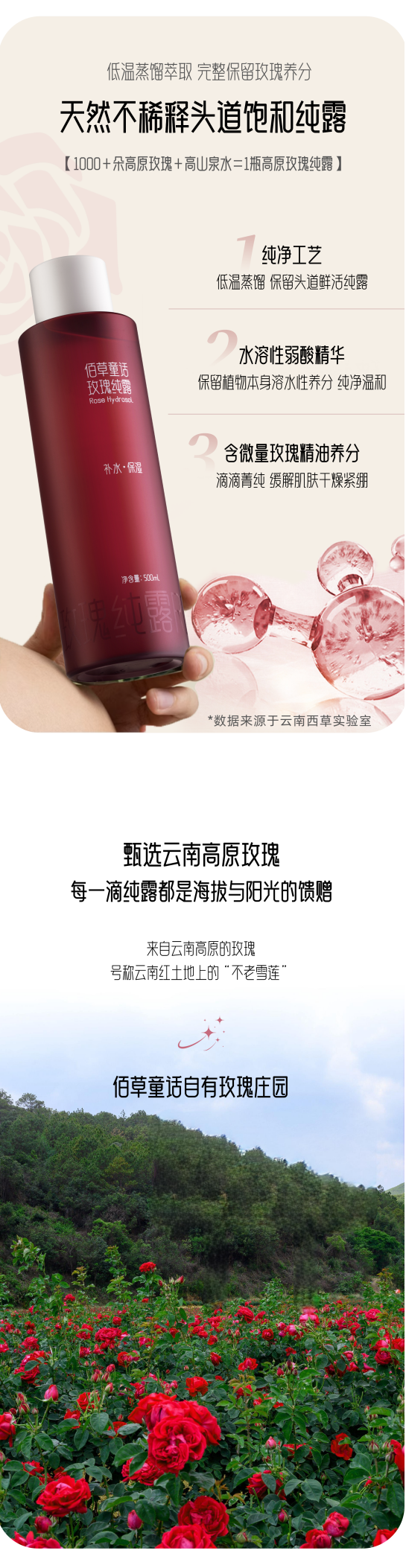 【云南西草✖佰草童话玫瑰纯露】0水配方!🌺1000朵玫瑰1瓶精华!spa级芳疗护肤!0酒精/0防腐剂/0致敏源SGS三重0添加认证,活萃黑科技,一瓶=补水+抗氧+修护+控油,三大高原玫瑰黄金产区