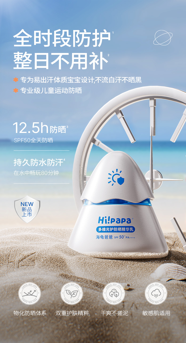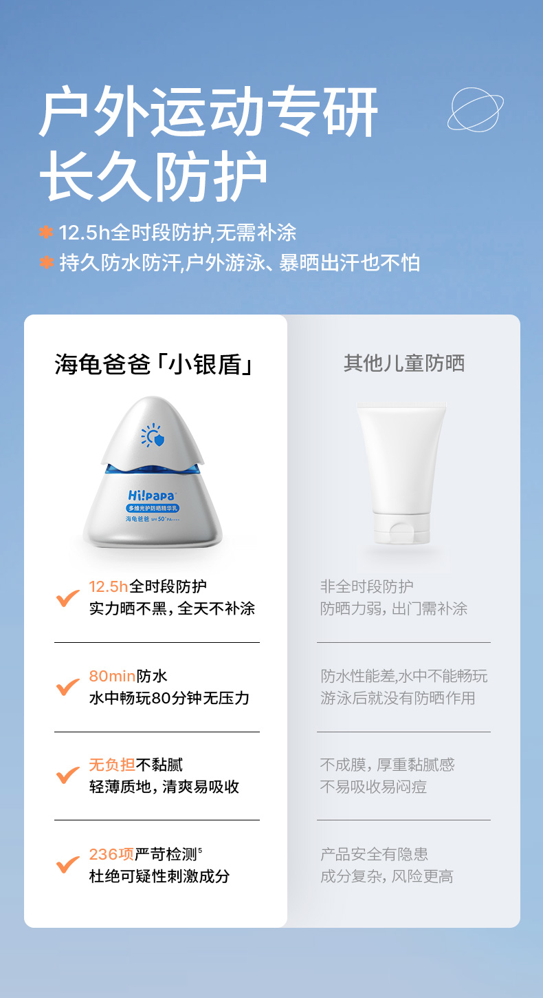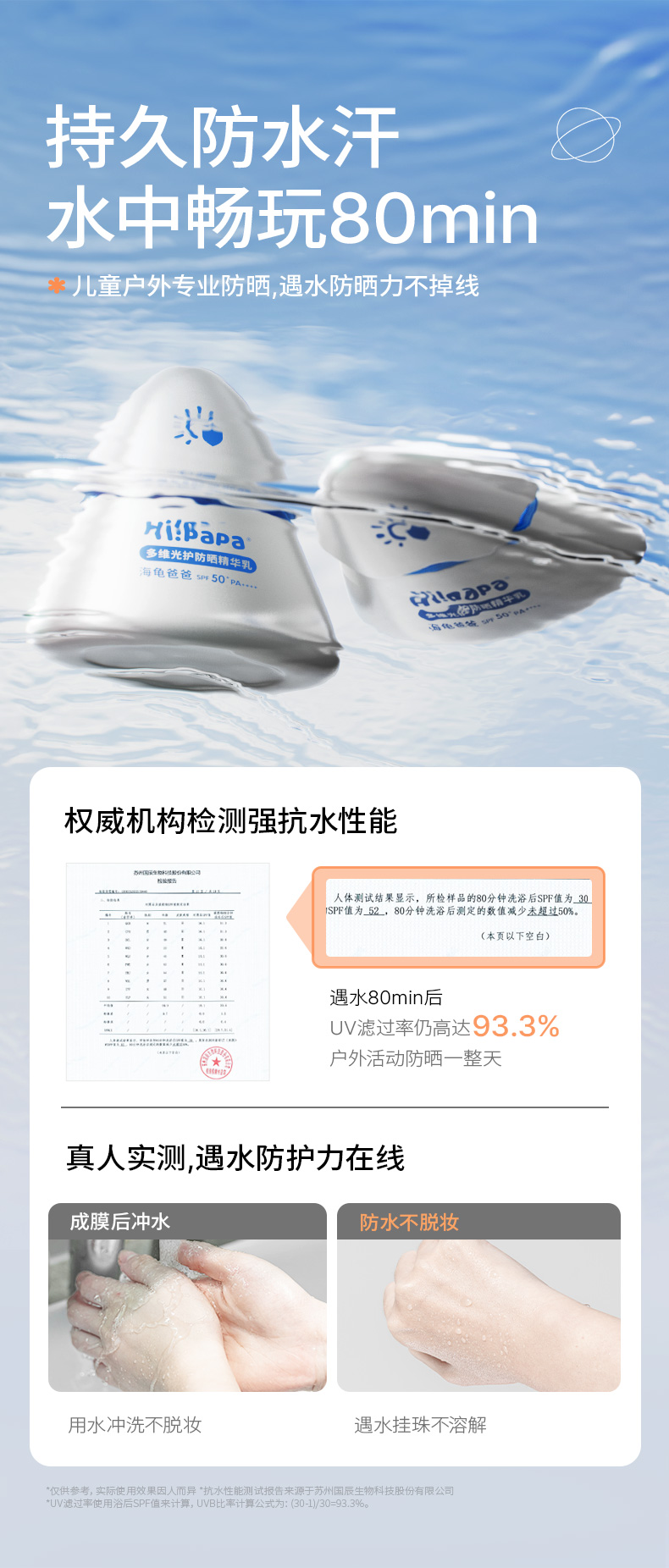 ⁶【清仓79元2个】儿童运动防晒 高倍抗水汗【小银盾防晒霜】多维光护防晒精华乳 spf50+PA+++ 适3岁+【海龟爸爸】CRMM-HGBB