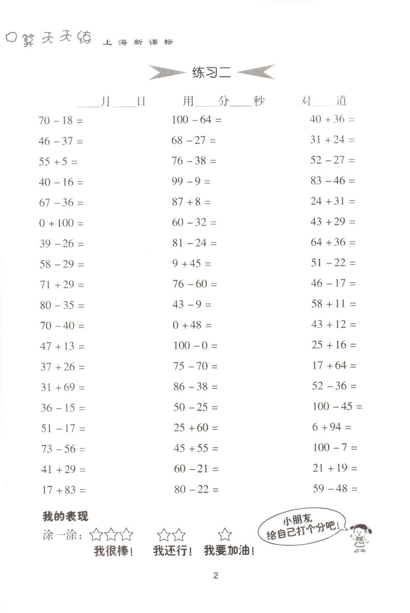 钟书金牌教辅 小学生口算天天练 2年级上/二年级上 全新修订版 数学 第一学期 上好大学出版社