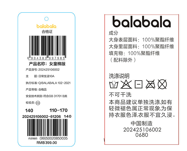 【商场同款】巴拉巴拉女童棉服儿童毛绒外套新款童装2025秋冬保暖
