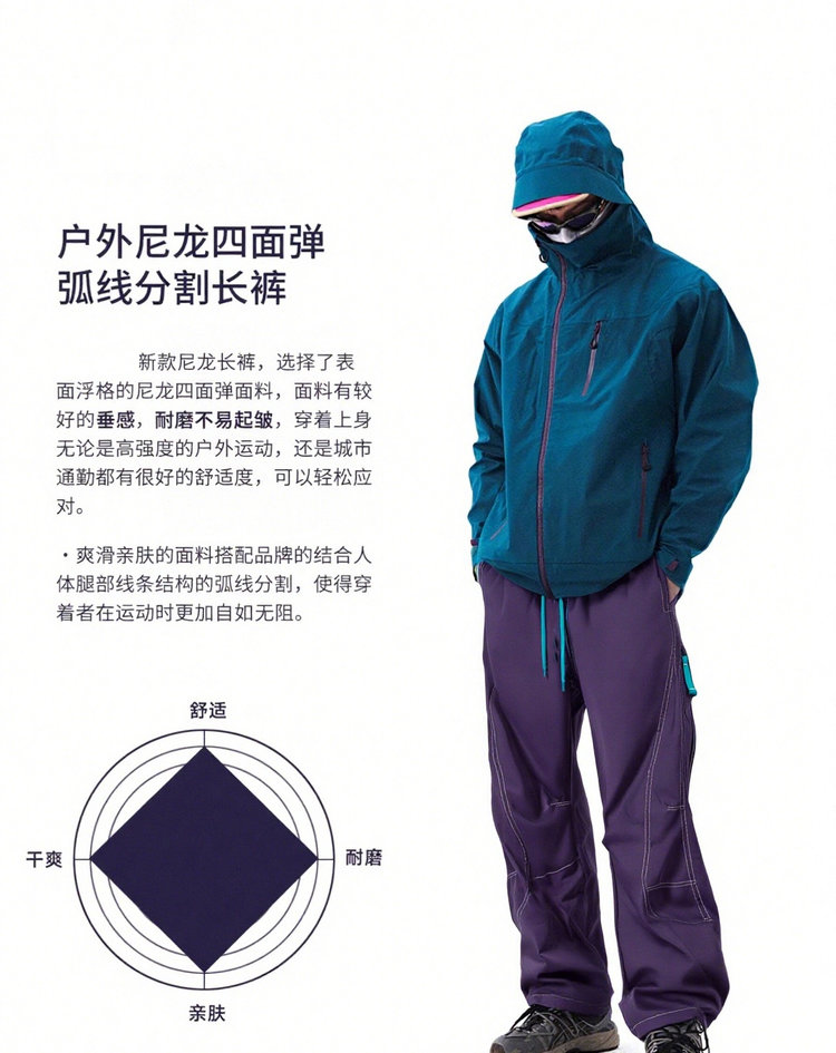 产品名称:Schenvega情侣七防轻量弧线工装裤
