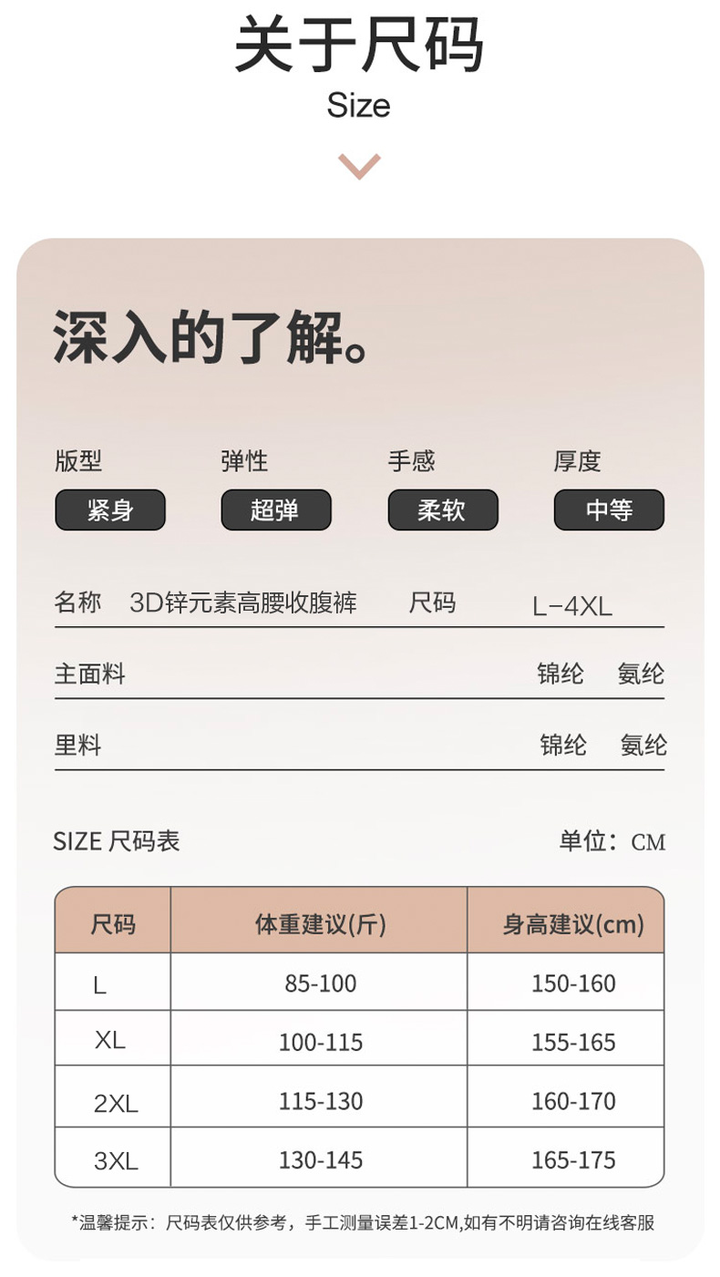 3D锌元素高腰收腹裤 锌元素面料 抗菌抑菌 提臀防走光暖宫收腹裤 立挺裤
