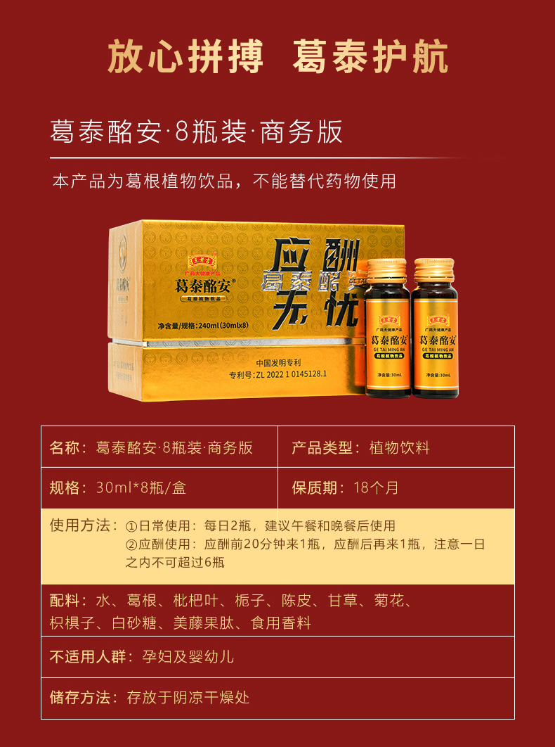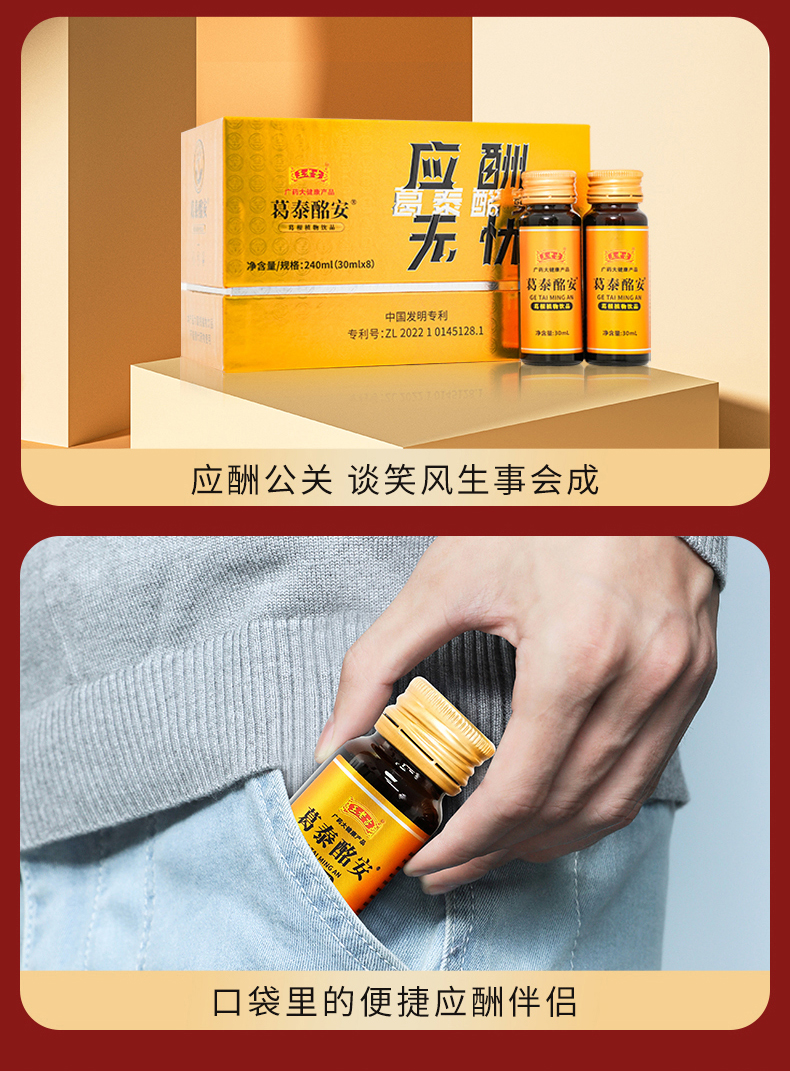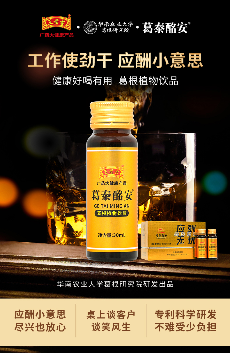 王老吉葛泰酩安葛根枳椇子饮品药房药店商超线下同款应酬打底饮料30ml*8支