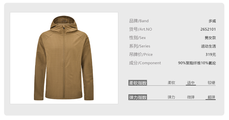 多威外套男新款连帽外套女运动上衣2652101