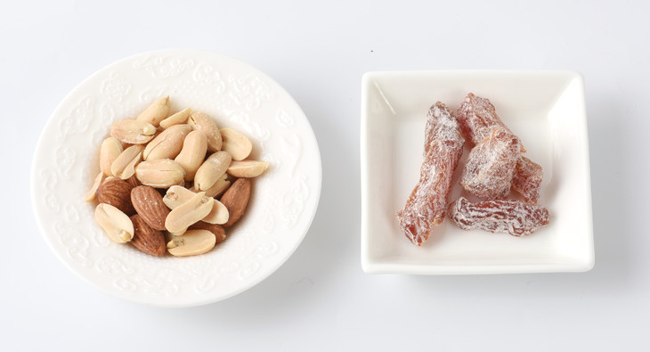什锦果仁包含花生和杏仁,其中花生富含烟酸和多不饱和脂肪酸,能有效促进生长,延缓衰老,并有止血造血的功效。杏仁富含维生素E,不饱和脂肪酸及多种矿物质,具有止咳润肺,降低胆固醇和抗肿瘤的效果。