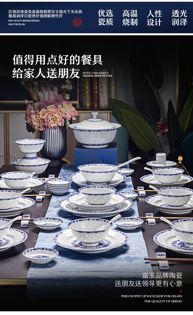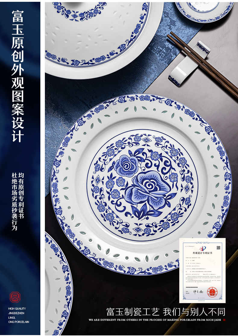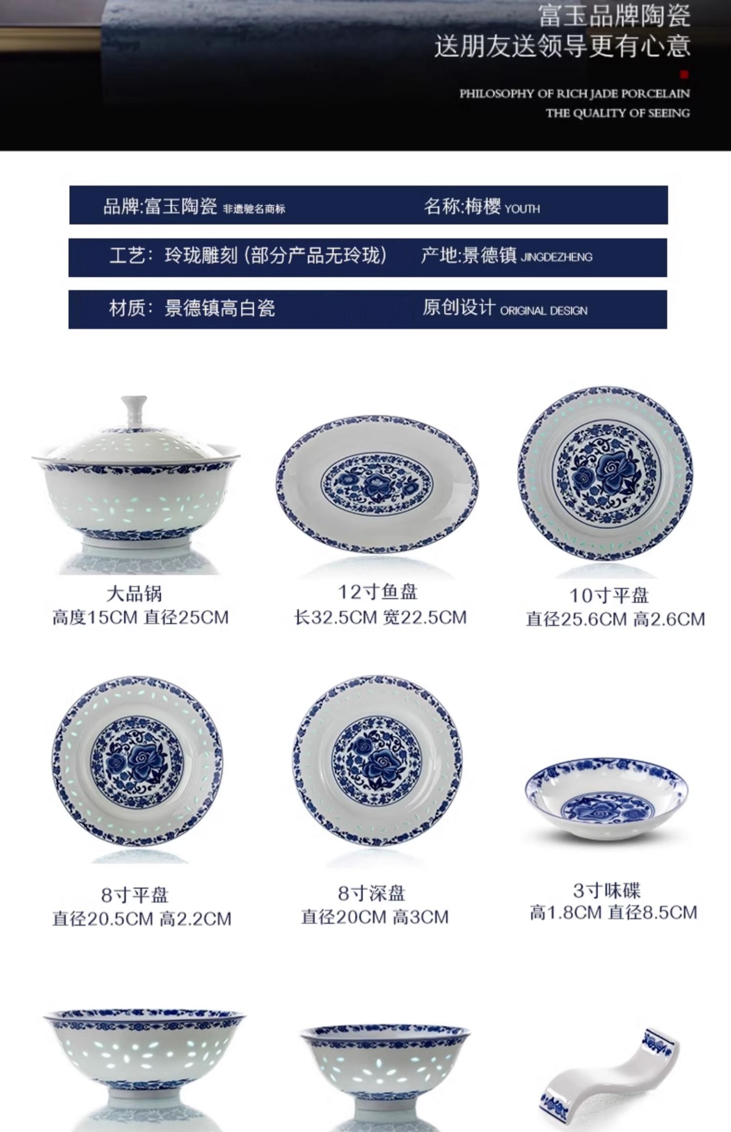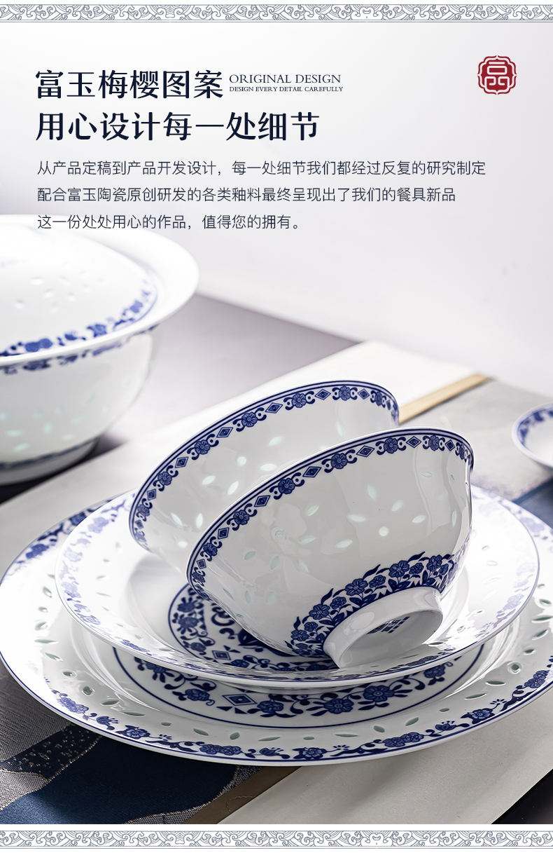 畅销经典 饮食伴侣 | 富玉陶瓷 青花玲珑瓷 梅樱系列餐具釉中彩