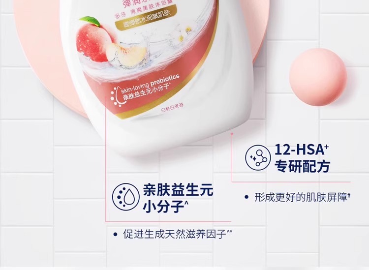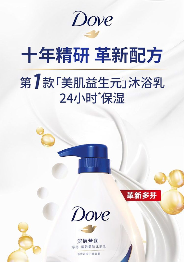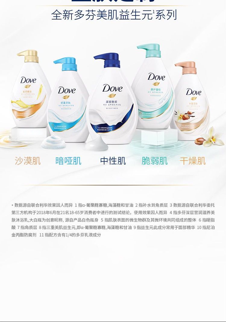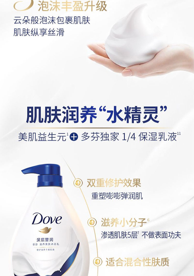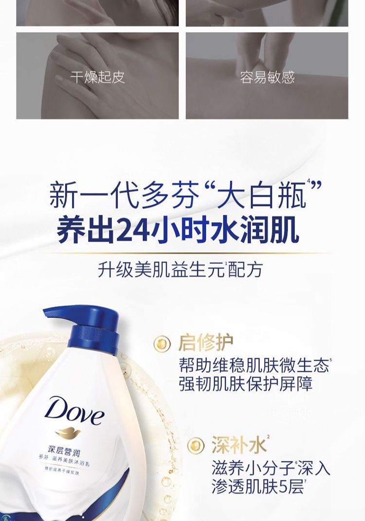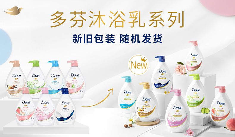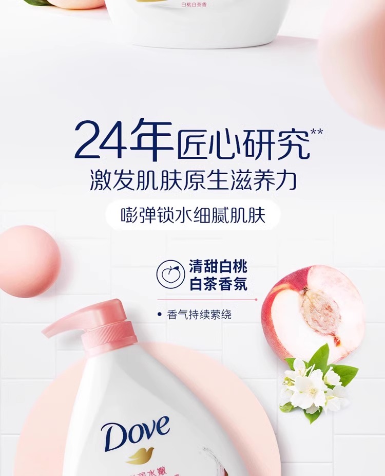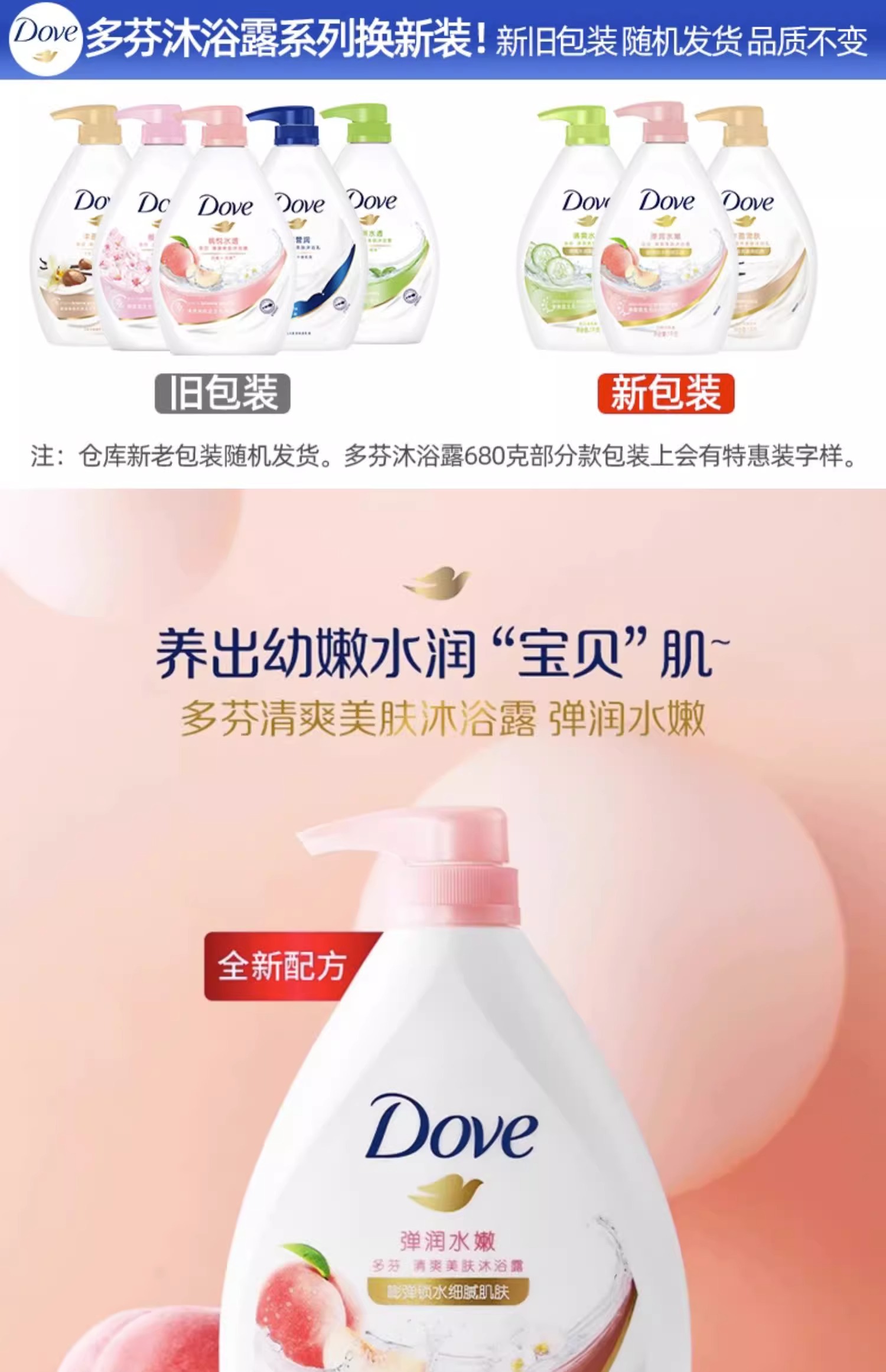 多芬沐浴露白桃弹润水嫩持久留香特香女学生沐浴露组合家庭装1000g+300g(随机)