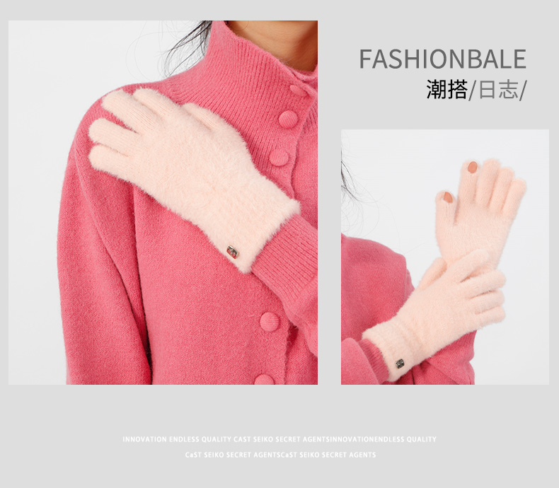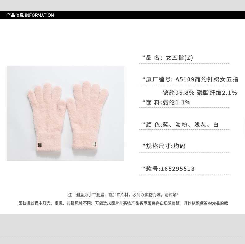 小清新简约针织女五指手套-纪念日百货门店同款165295513