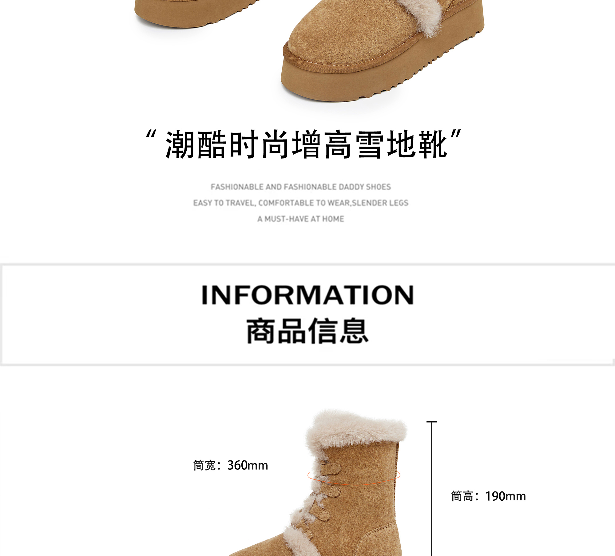 星期六时髦两穿厚绒中筒雪地靴SS34119E23