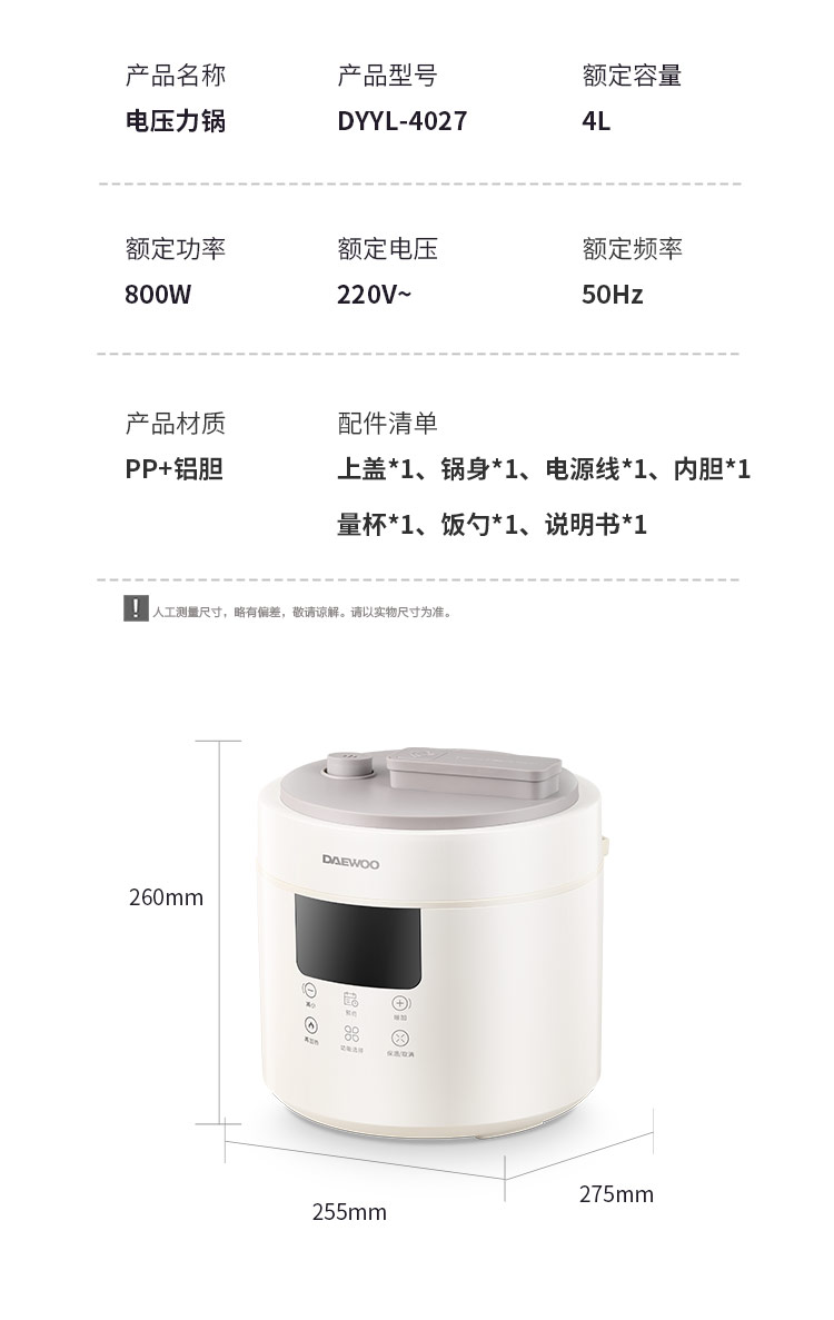 大宇电压力锅DYYL-4027 星云白【分仓直发,72小时发货,周末节假日不发货】