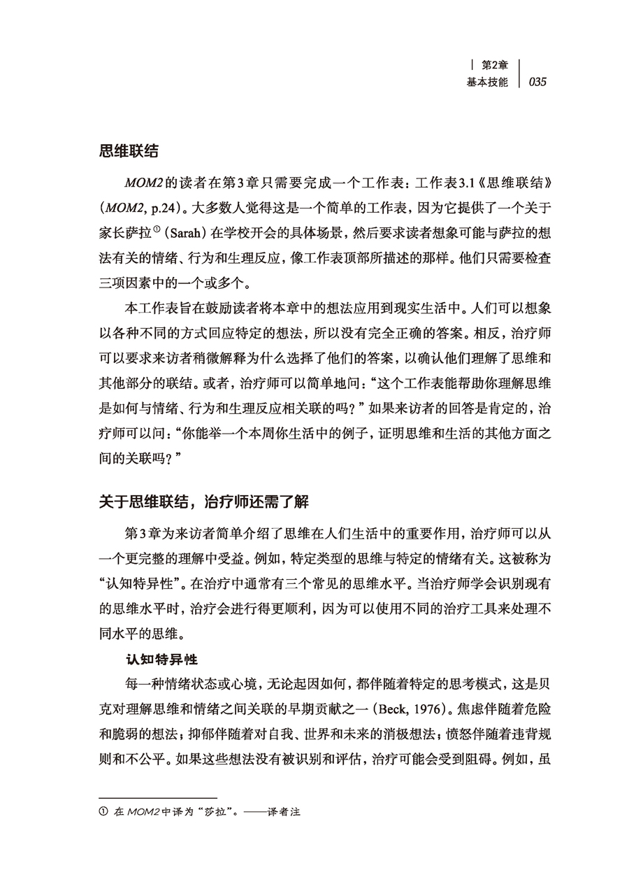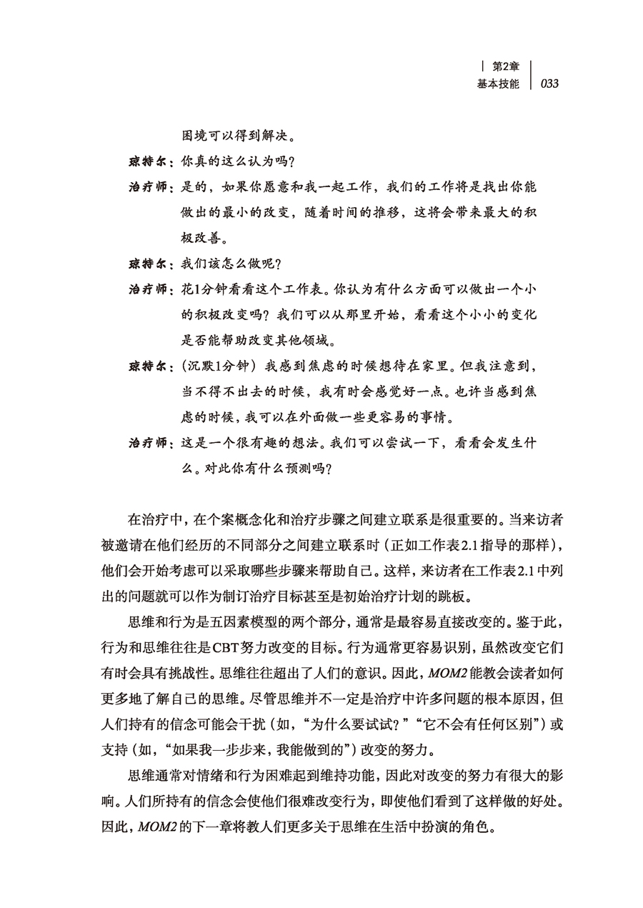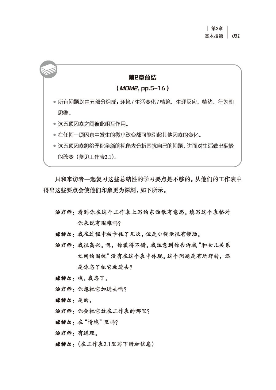 这两本书互为搭配、彼此补充,提供了关于CBT核心方法和实践过程的详细指南。同时,每章的“疑难解答指南”提出了常见的潜在治疗难题以及解决策略,充分凝结了作者多年来的实践经验,值得反复跟练、品味。