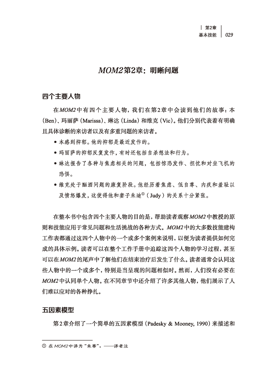 作者基于认知行为疗法近年来的发展,结合自身的临床和教学经验阐述了如何将MOM2融入治疗全程,还呈现了许多实践认知行为治疗的个性化方法,并在最后一章中介绍了如何将MOM2应用于团体场景。此外,书中穿插了丰富的会谈片段,生动再现真实治疗过程中的微妙互动和专业技巧。本书是认知行为取向咨询师和治疗师的必备参考,同时也适用于需要处理来访者情绪议题的广大临床工作者以及心理健康领域的相关从业者。