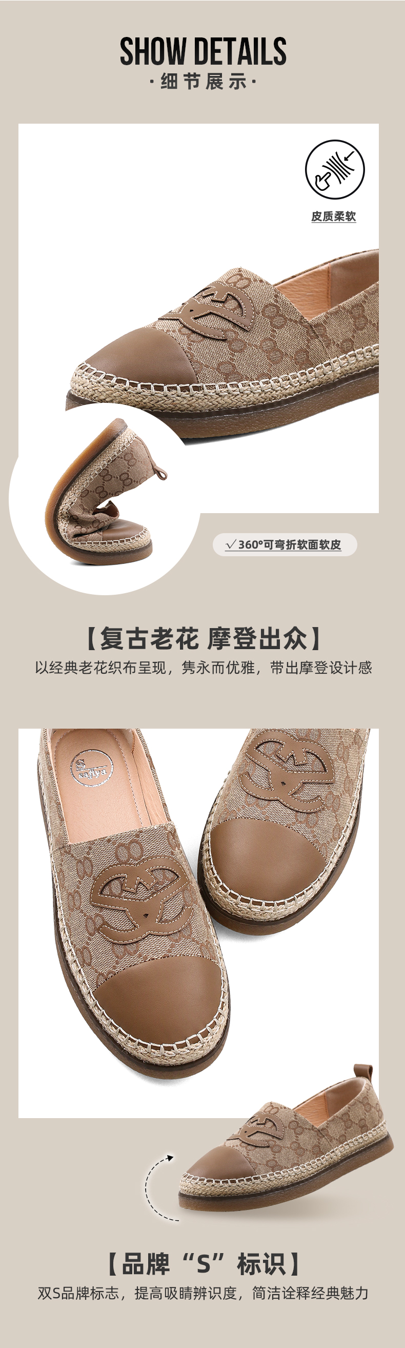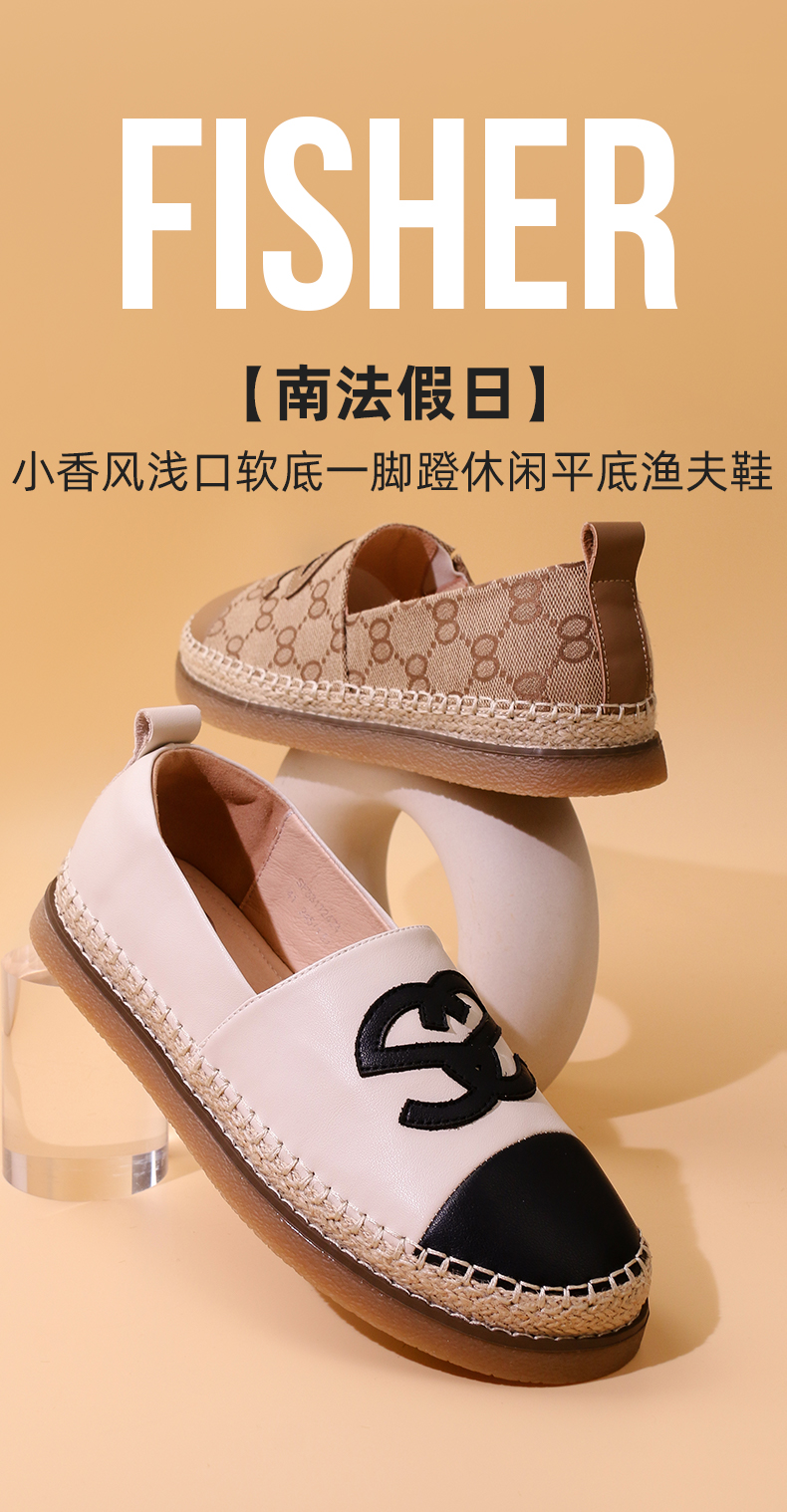 Safiya/索菲娅 2023秋季新品小香风浅口软底一脚蹬休闲平底渔夫鞋 SF33112424