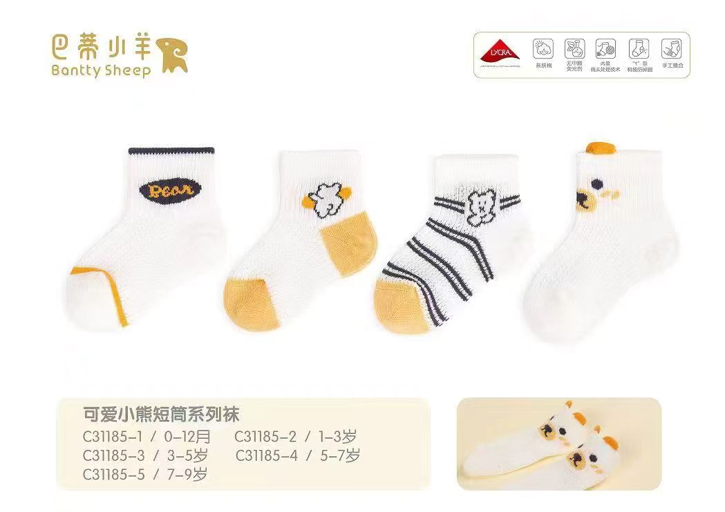巴蒂小羊2-25配饰可爱小熊短筒系列袜1-3岁BDX-C31185-2
