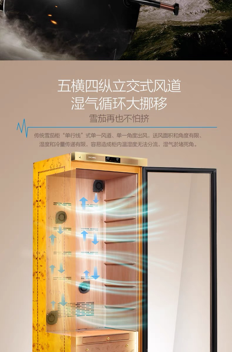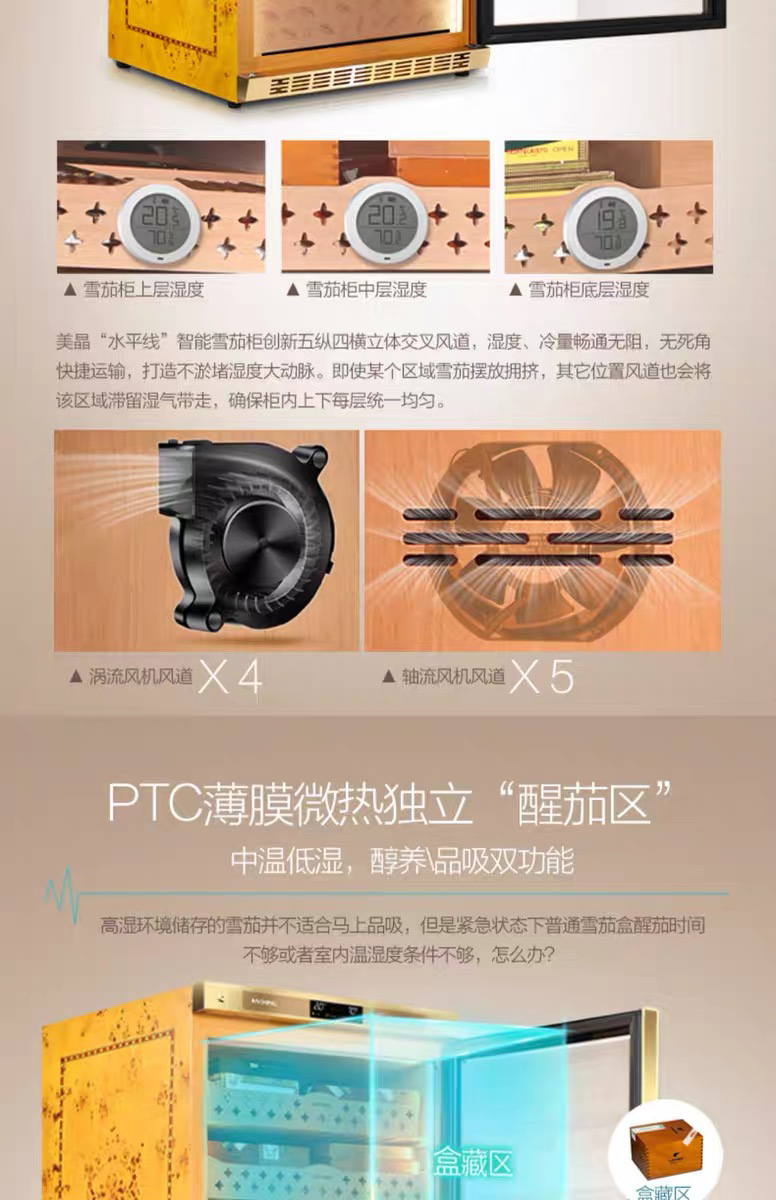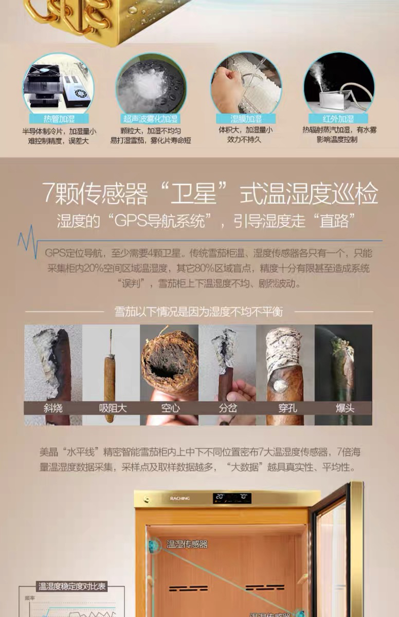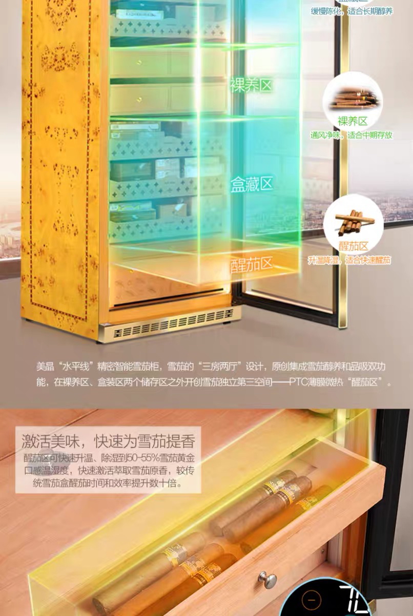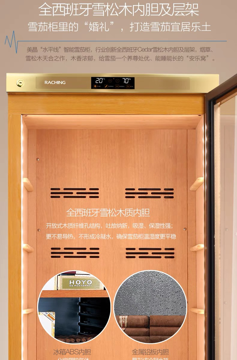 raching/美晶雪茄柜MON5800A智能水平线实木恒温恒湿雪茄保湿烟柜