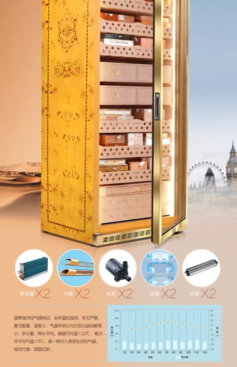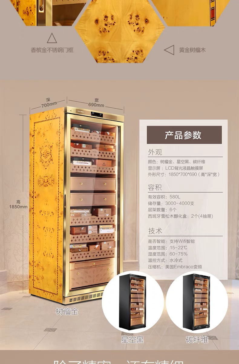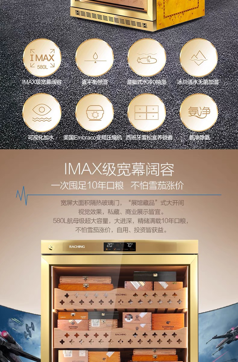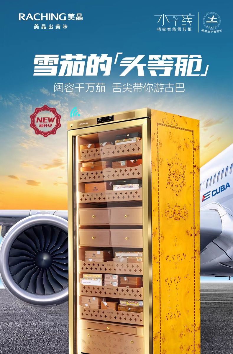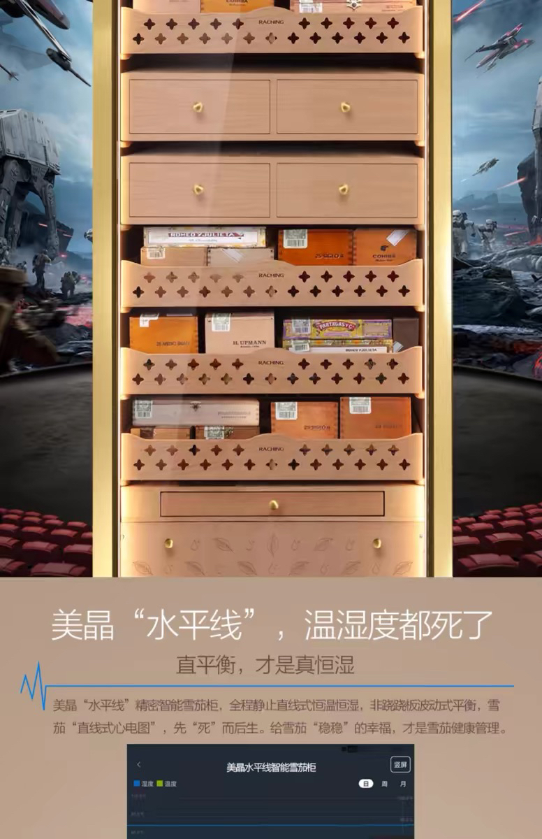 raching/美晶雪茄柜MON5800A智能水平线实木恒温恒湿雪茄保湿烟柜