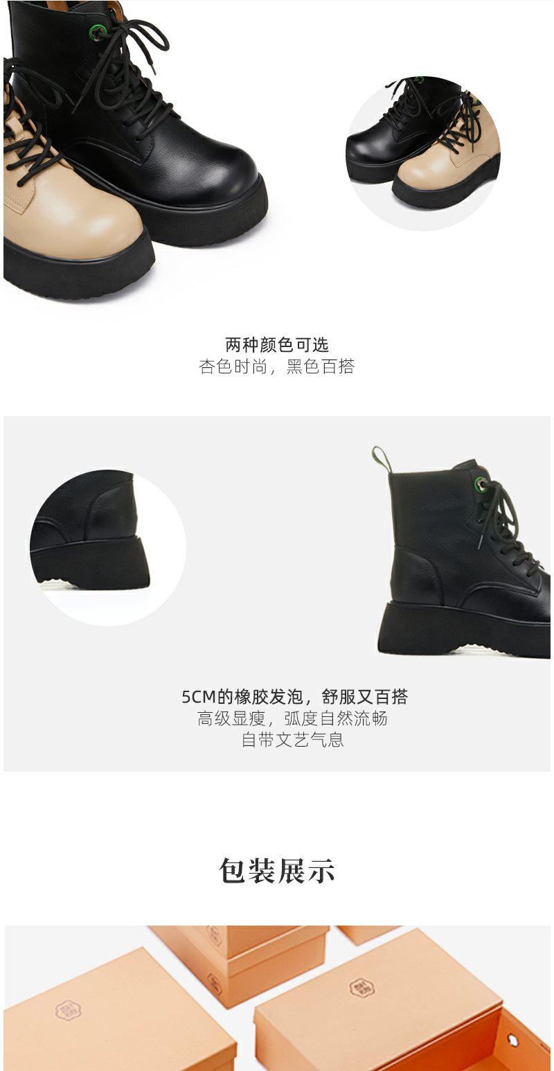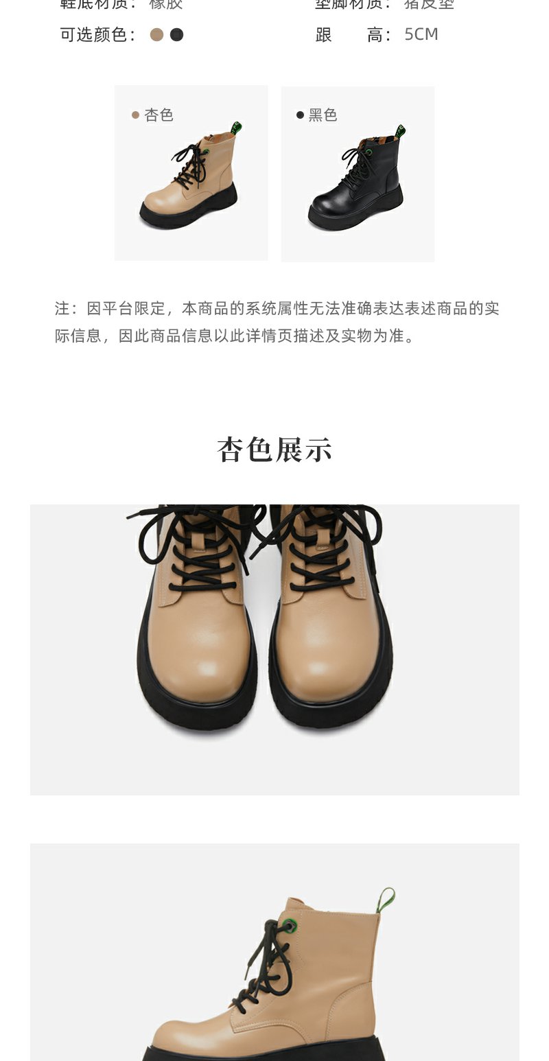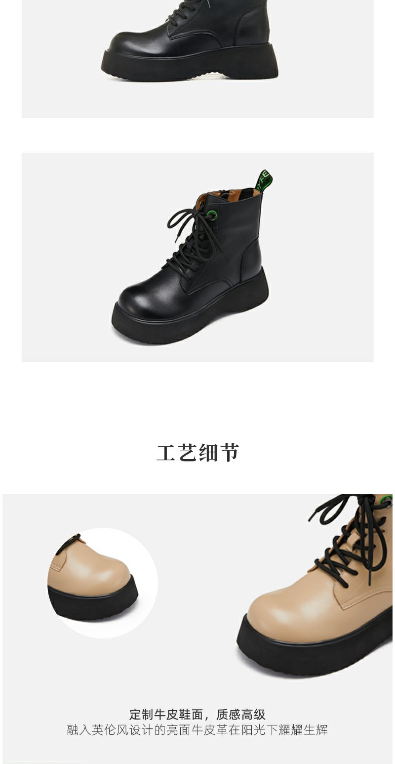 西村名物2022秋季新款马丁靴女真皮短靴时尚厚底松糕底靴子44051