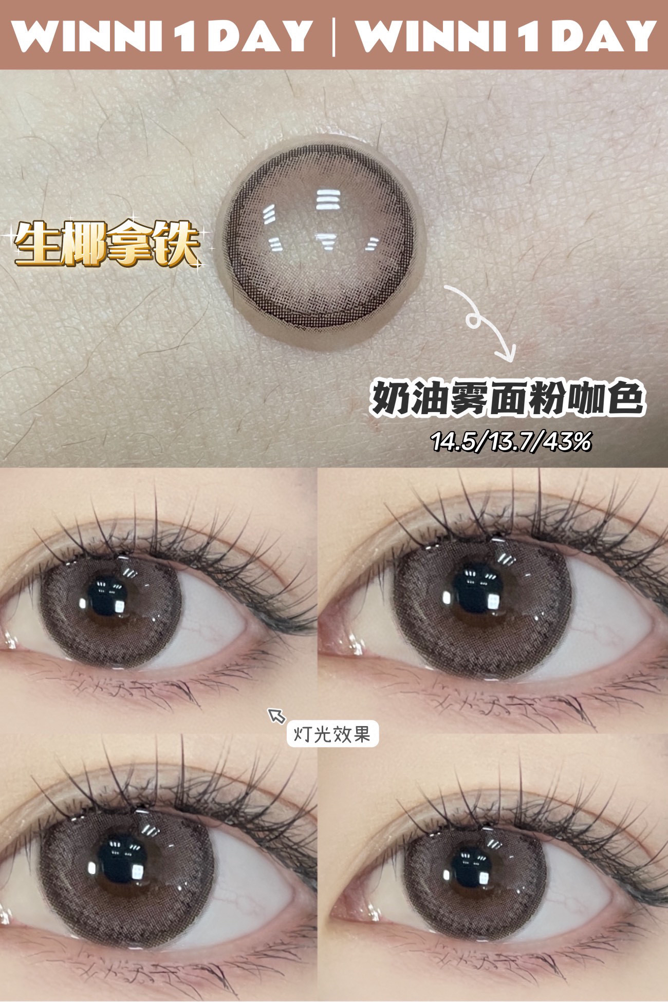日抛新 Winni&Milcaon 生椰拿铁 14.5 着色13.7 粉棕