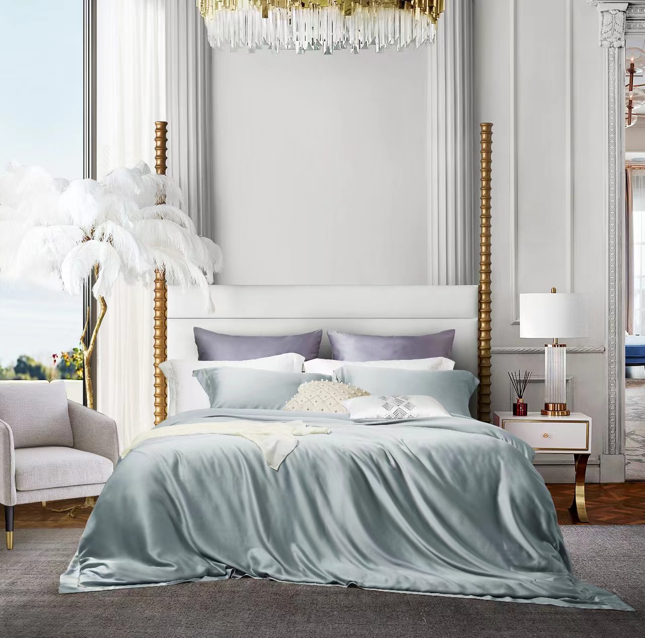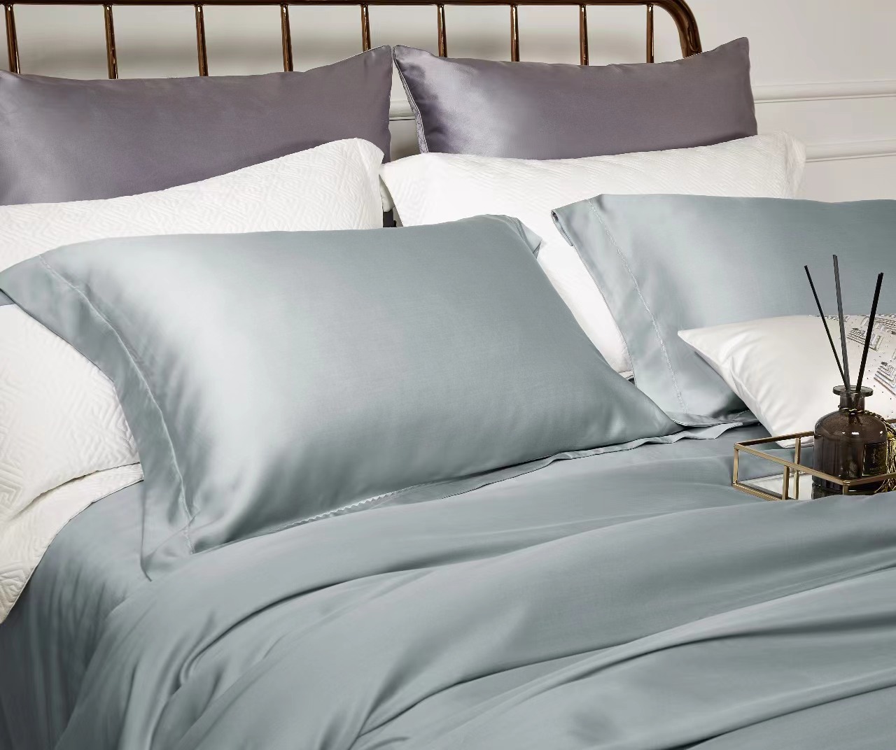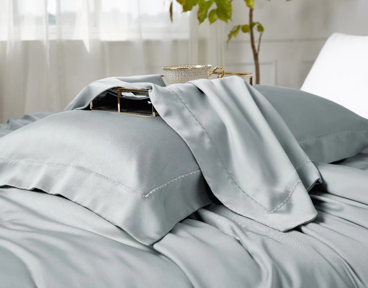 利路米百支纯色奥地利兰精天丝面料四件套 灰绿