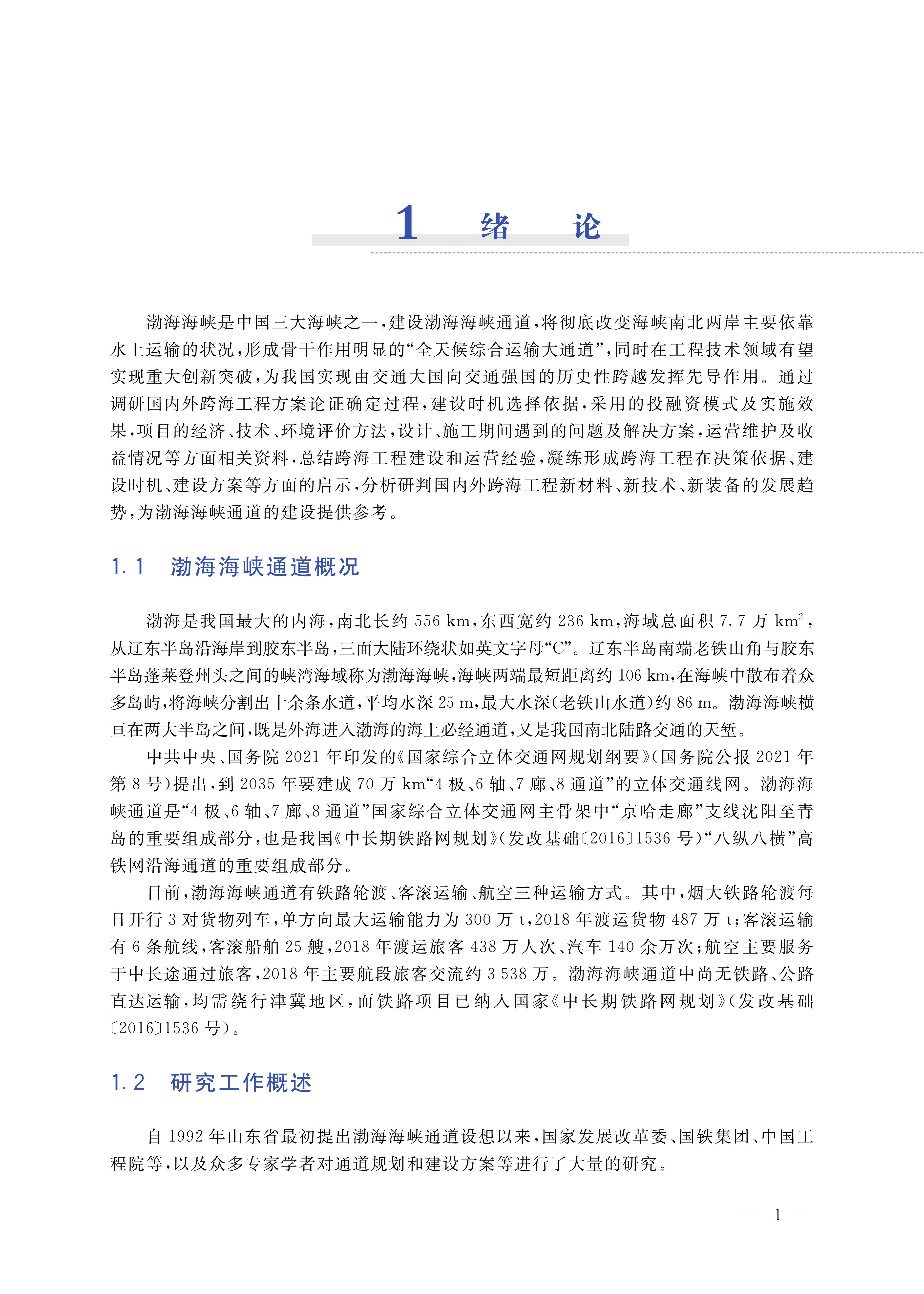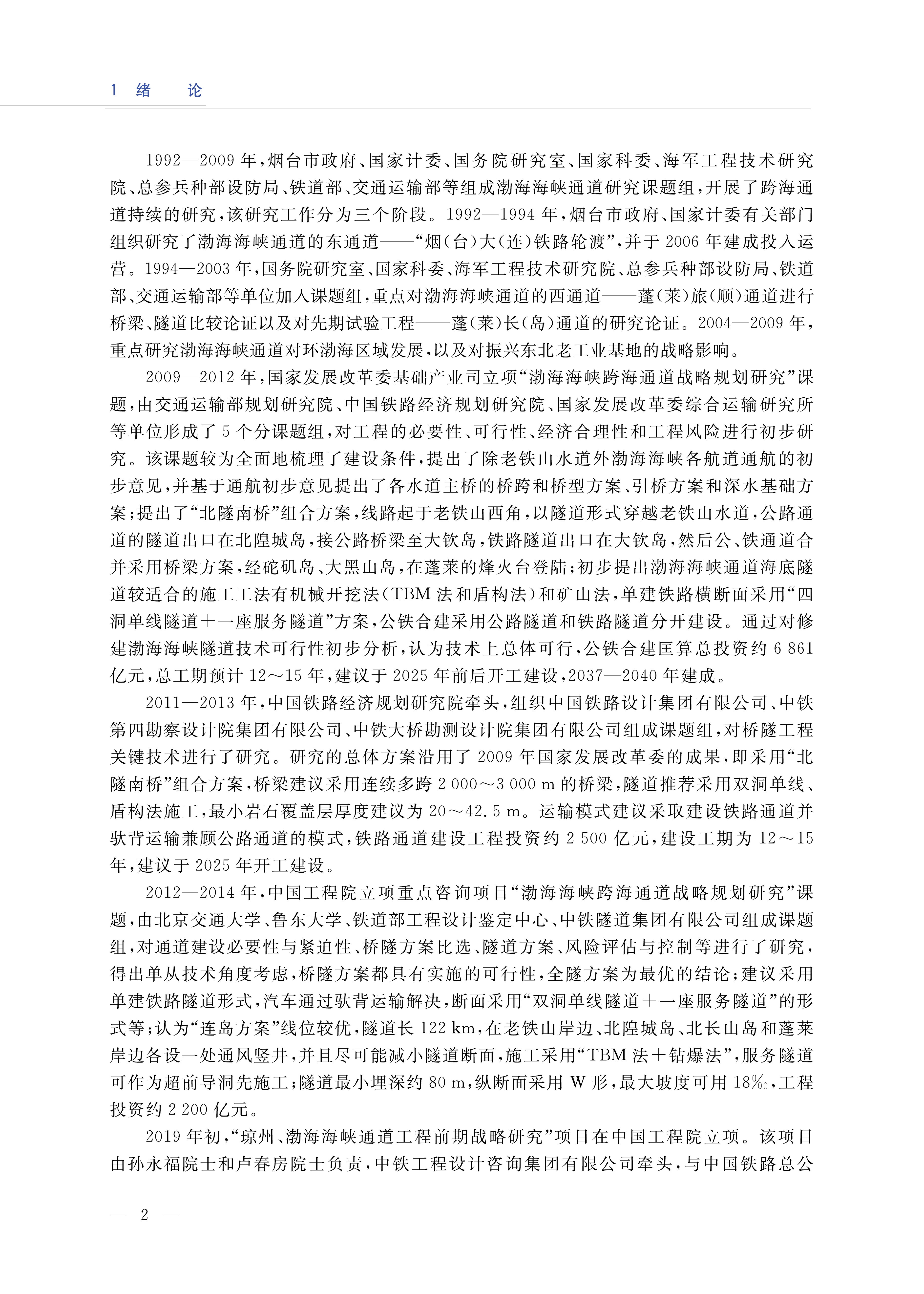 了“安全可靠、低碳环保、智能高效”的跨海工程建设理念,提出了更趋理性的渤海海峡跨海通道建设方案,