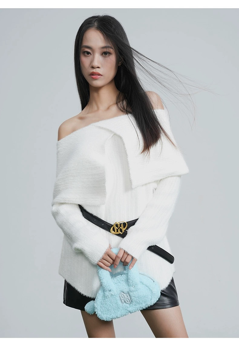 单边褶皱斜肩上衣