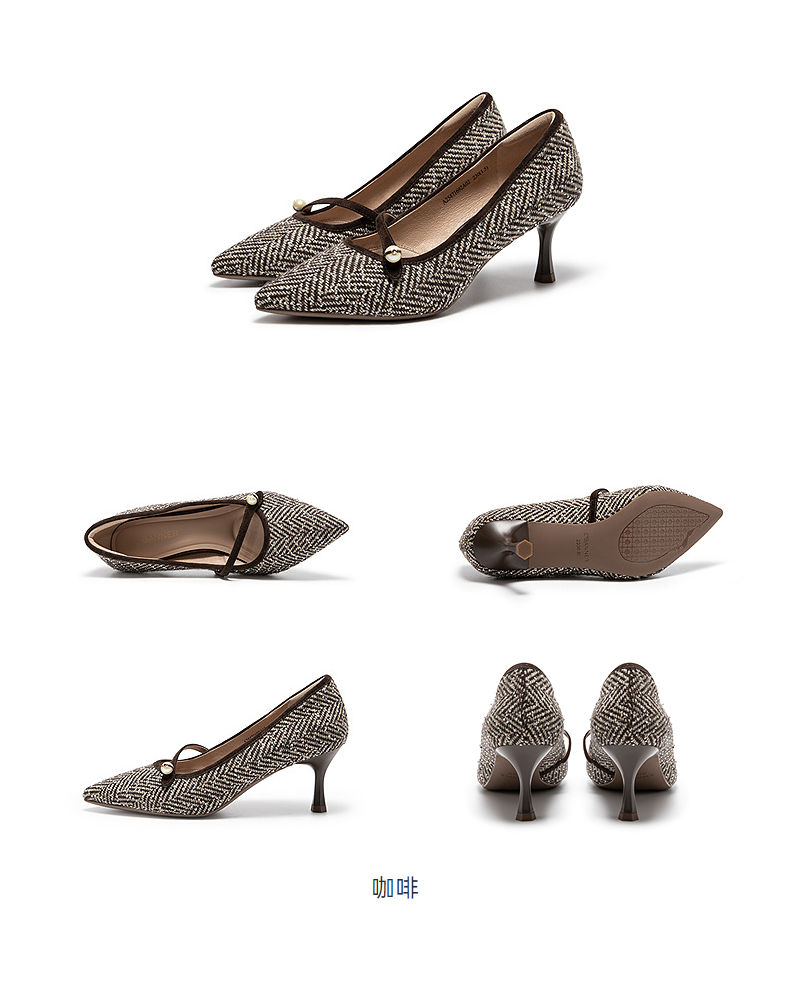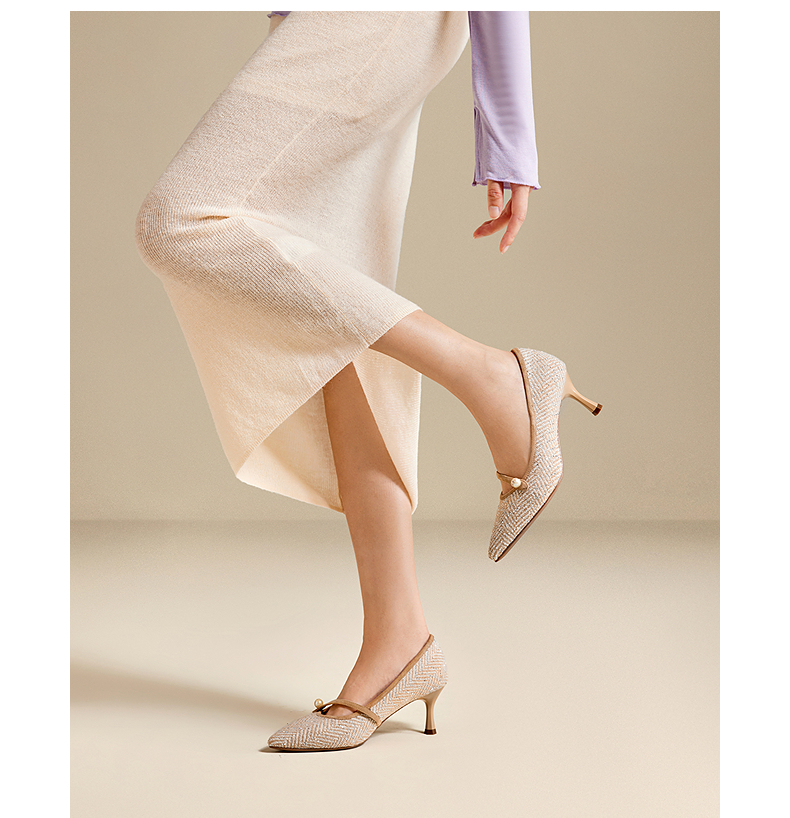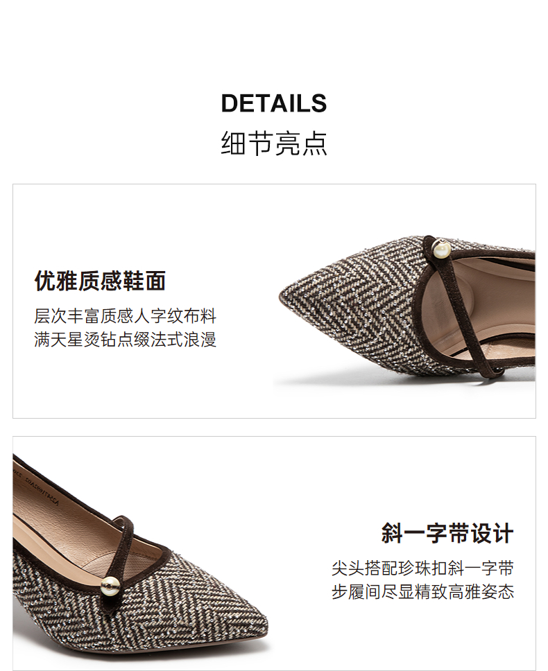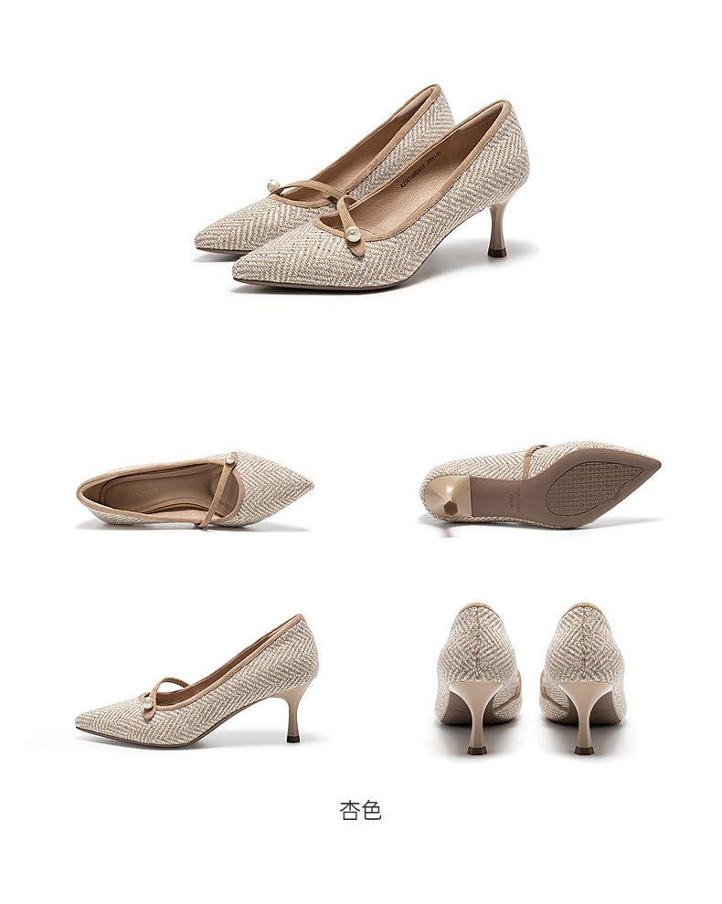 【静音系列】千百度羊皮垫细高跟鞋女通勤浅口单鞋A25471692