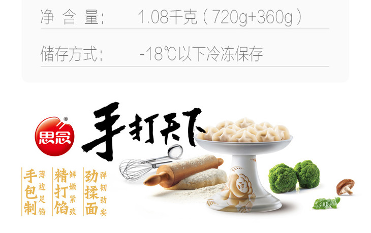 思念手打天下 招牌韭菜鸡蛋水饺1080g加量装