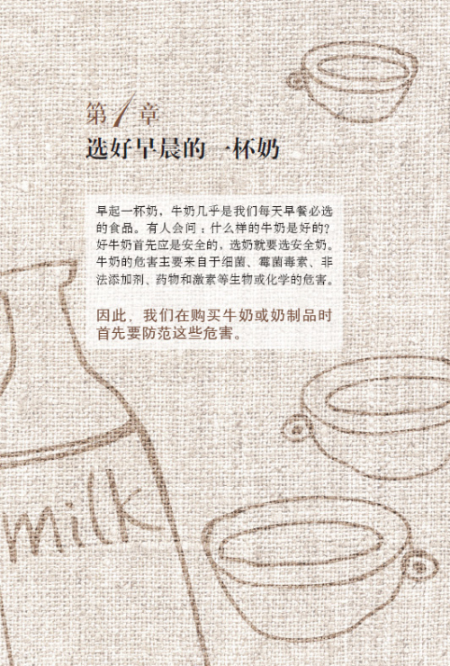 章 选好早晨的一杯奶 早起一杯奶,牛奶几乎是我们每天早餐必选的食品。有人会问:什么样的牛奶是好的?好牛奶首先应是安全的,选奶就要选安全奶。牛奶的危害主要来自于细菌、霉菌毒素、非法添加剂、药物和激素等生物或化学的危害。 因此,我们在购买牛奶或奶制品时首先要防范这些危害。 有抗奶 有抗奶中的“抗”是指各类抗生素,“有抗奶”指的是用含有青霉素、链霉素等抗生素的原料奶生产出来的牛奶制品及饮用鲜奶。 奶牛易患乳腺炎,为治疗乳腺炎往往向牛乳房部位直接注射抗生素,经过抗生素治疗的奶牛,在3~7天内分泌的牛奶会残存着少量抗生素。国际通行规定有病奶牛治疗期间及*后一次用药后72小时以内的牛奶不能出售,不能作为食用奶原料进行加工生产,也不得将这种含有抗生素的牛奶混入正常的牛奶中,*好在用药96小时后制作原料奶。而有些不规范的牛奶厂商不遵守这些规定,是造成牛奶中抗生素残留的重要原因。长期喝这种有抗奶,对抗生素过敏的人就会产生过敏反应,也会使非过敏人群体内富积抗生素,对抗生素类药产生抗药性,影响健康。