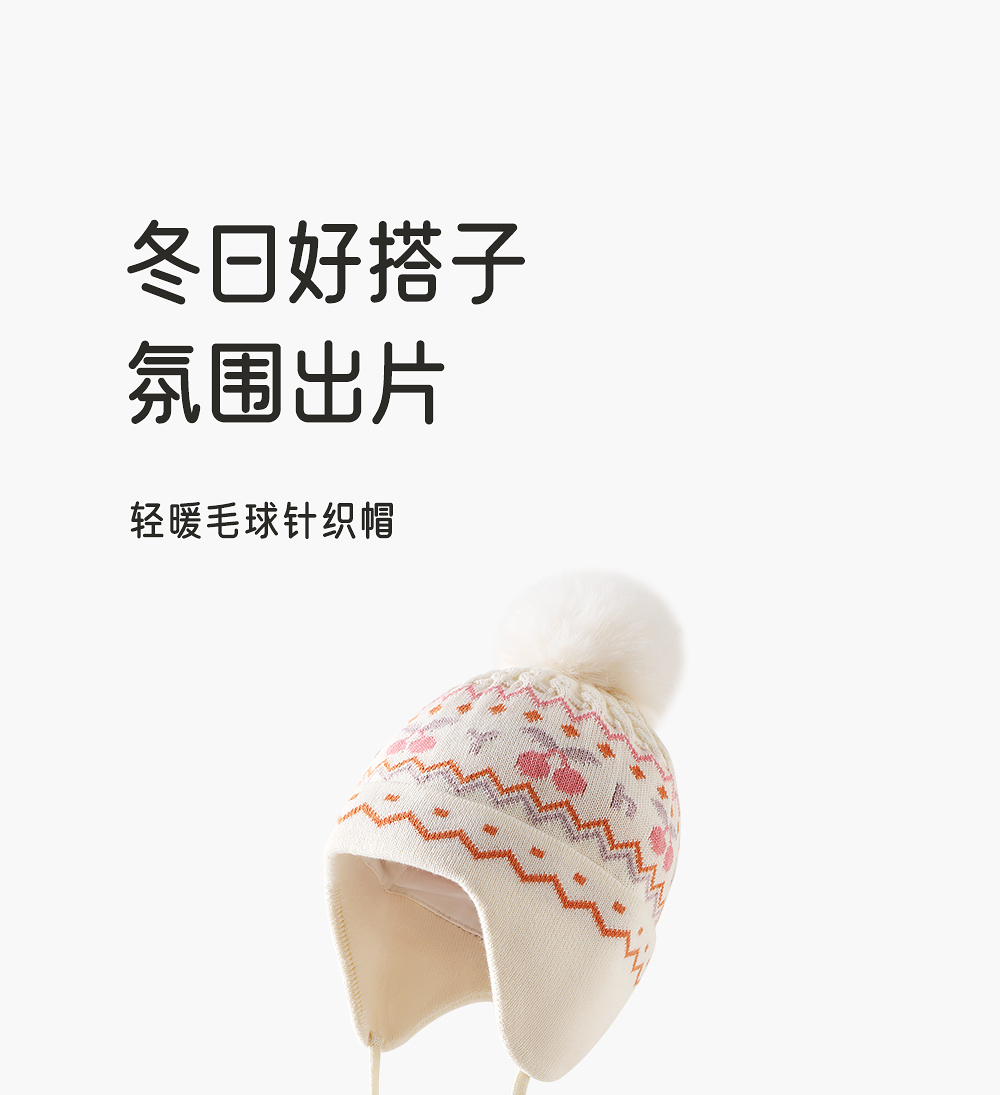 英氏儿童针织帽子护耳秋冬保暖防寒防风女童宝宝新款YRPHJ4R012A
