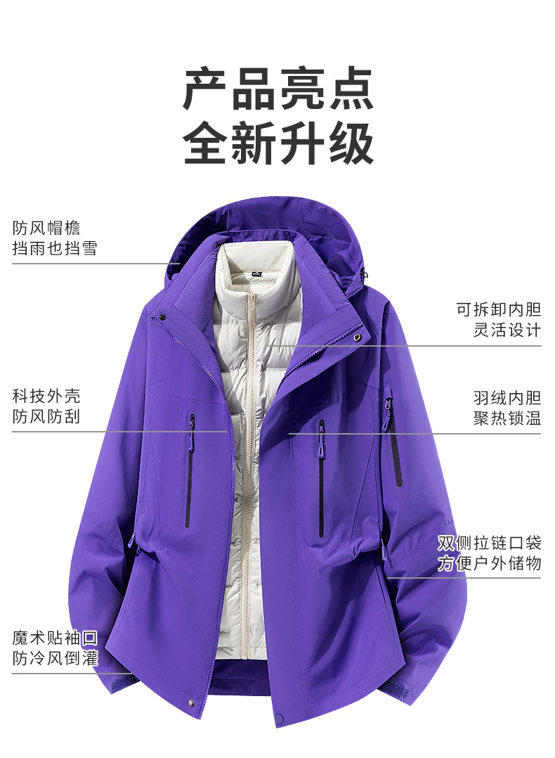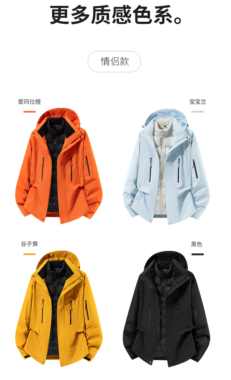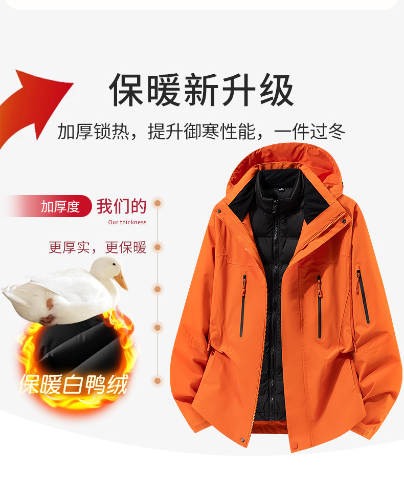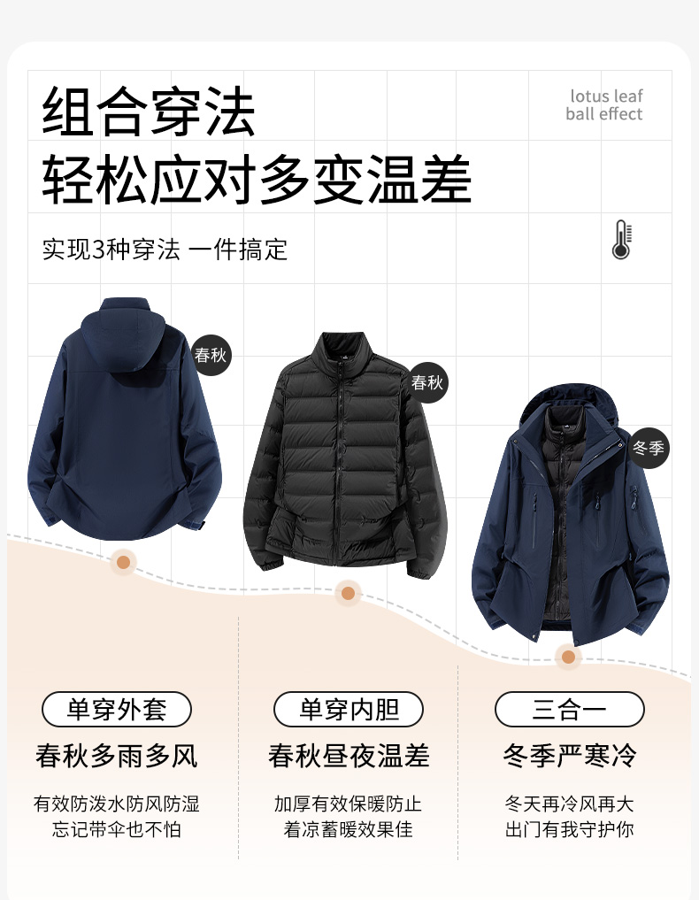 LUCKY DEER/幸运鹿冬季情侣款保暖防水透气潮流三合一热封羽绒冲锋衣
